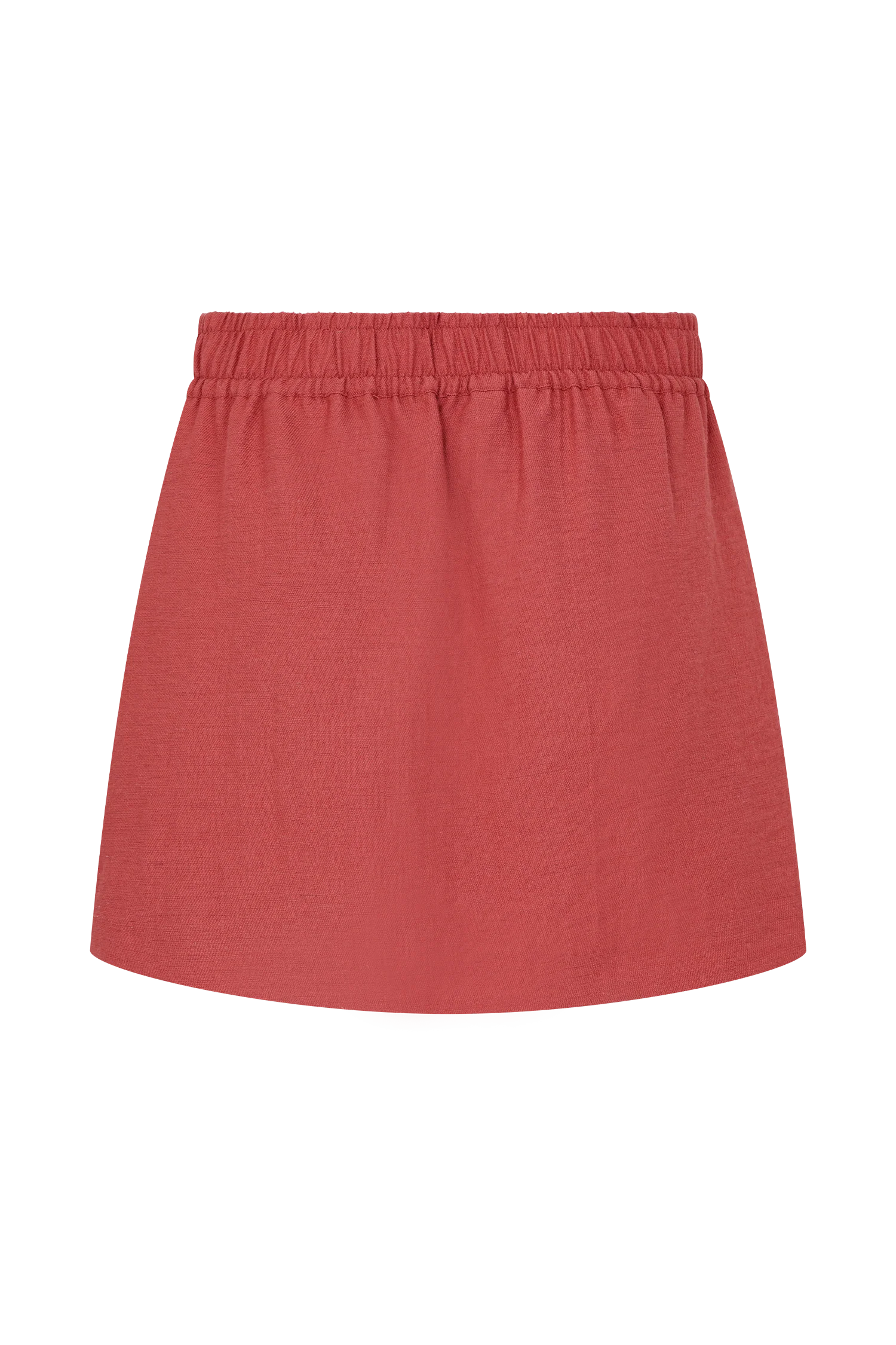 The KALLIE Linen Skort is your go-to piece for warm days when comfort and style go hand in hand. Designed with the look of a mini skirt and the ease of built-in shorts, this unlined style features an elasticated waist for a relaxed, pull-on fit. Lightweight and breathable in linen, it’s ideal for pairing with a breezy button-down for casual strolls, coastal brunches, or vacation-ready lounging.