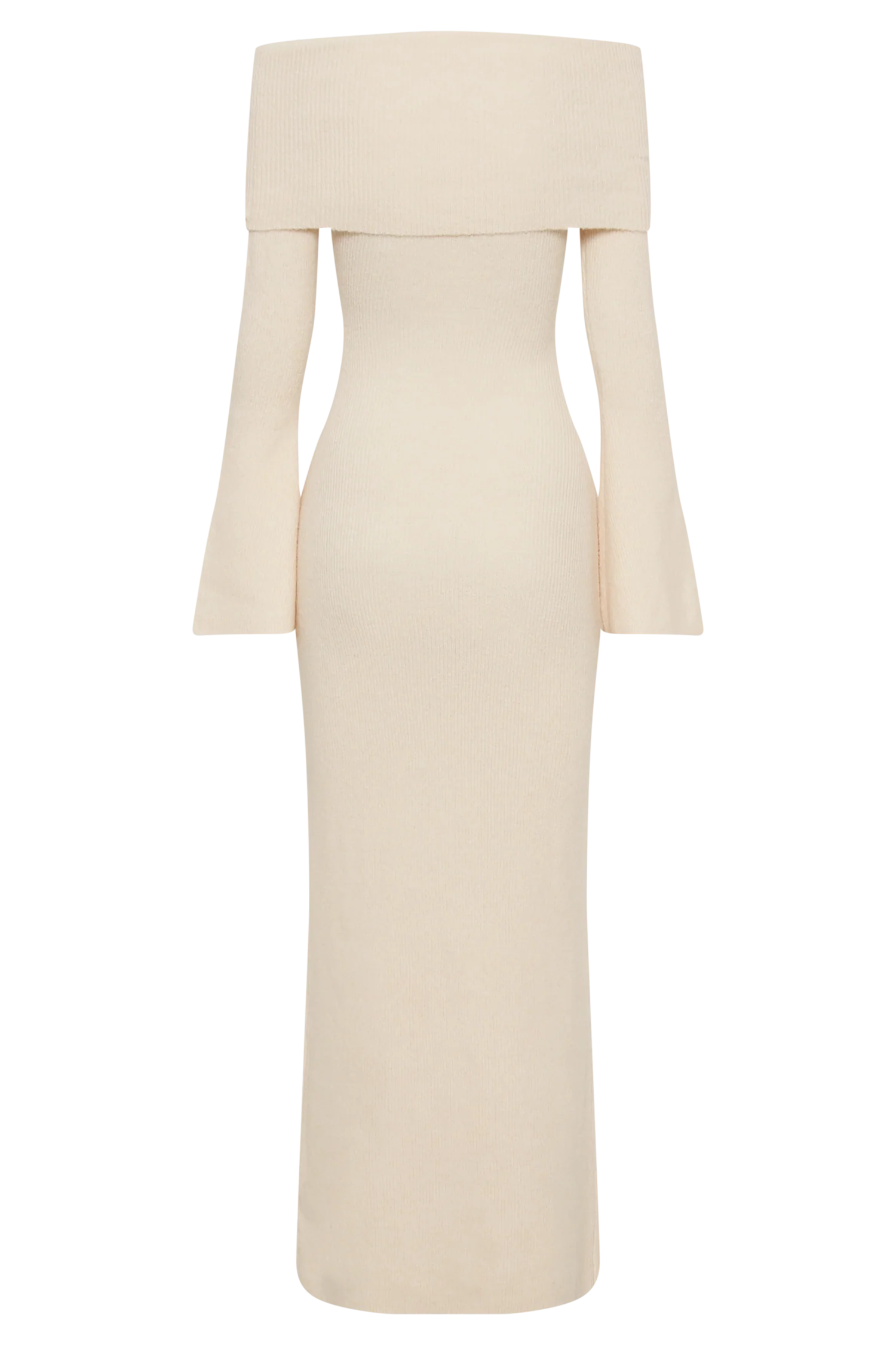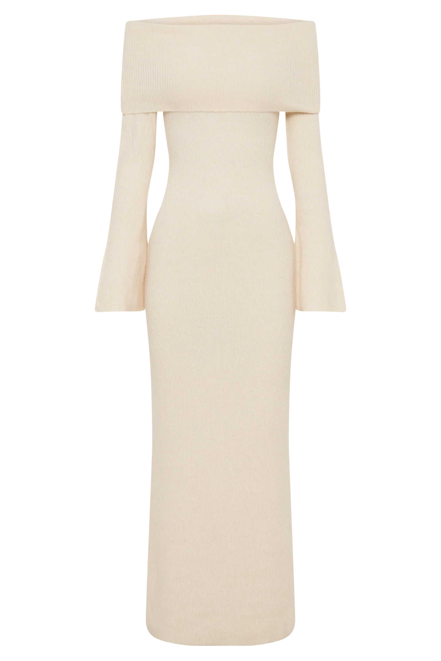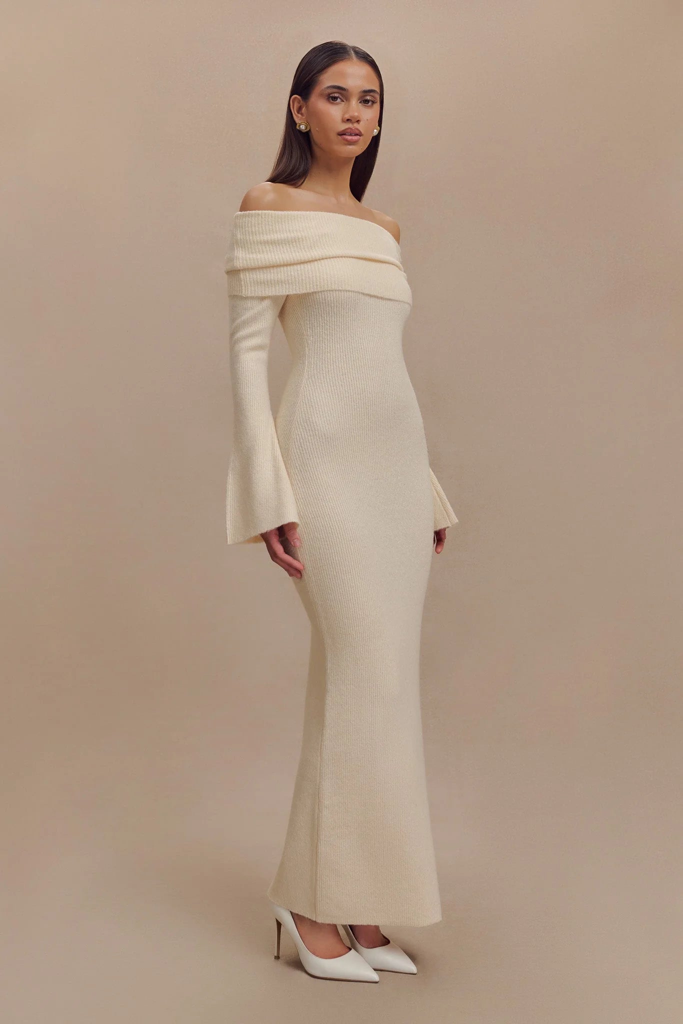 The KATHERINE Off Shoulder Knit Maxi Dress is a stunning example of elegant sophistication with a modern edge. Featuring an asymmetrical neckline and a ruched overlay, this dress offers a unique and stylish look. The long sleeves with flared hems add a touch of drama and movement, while the maxi length creates a graceful, flowing silhouette. Unlined and crafted from knit fabric, the Katherine Dress ensures both comfort and a chic, effortless style, making it perfect for formal occasions or evening events where making a memorable impression is key.