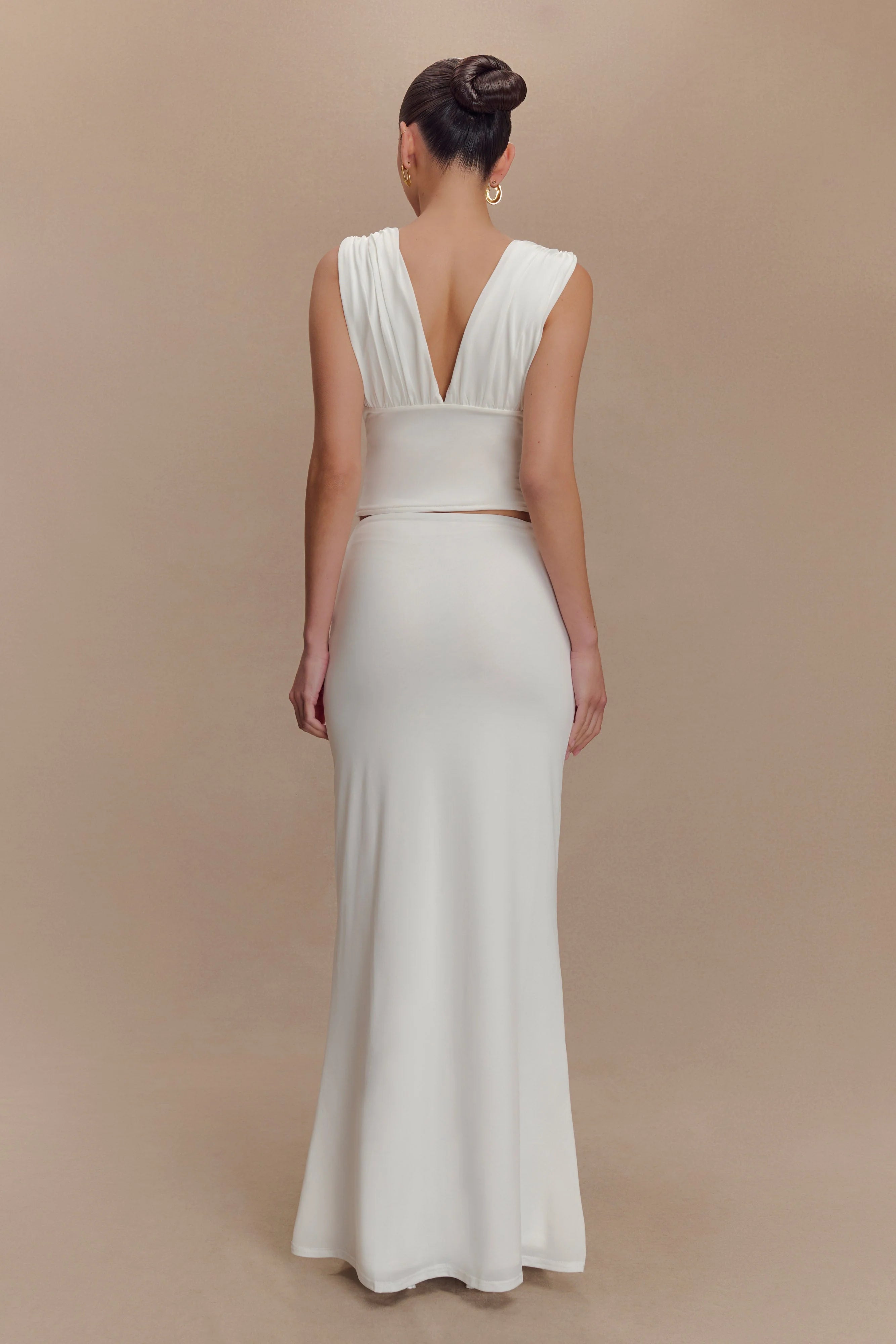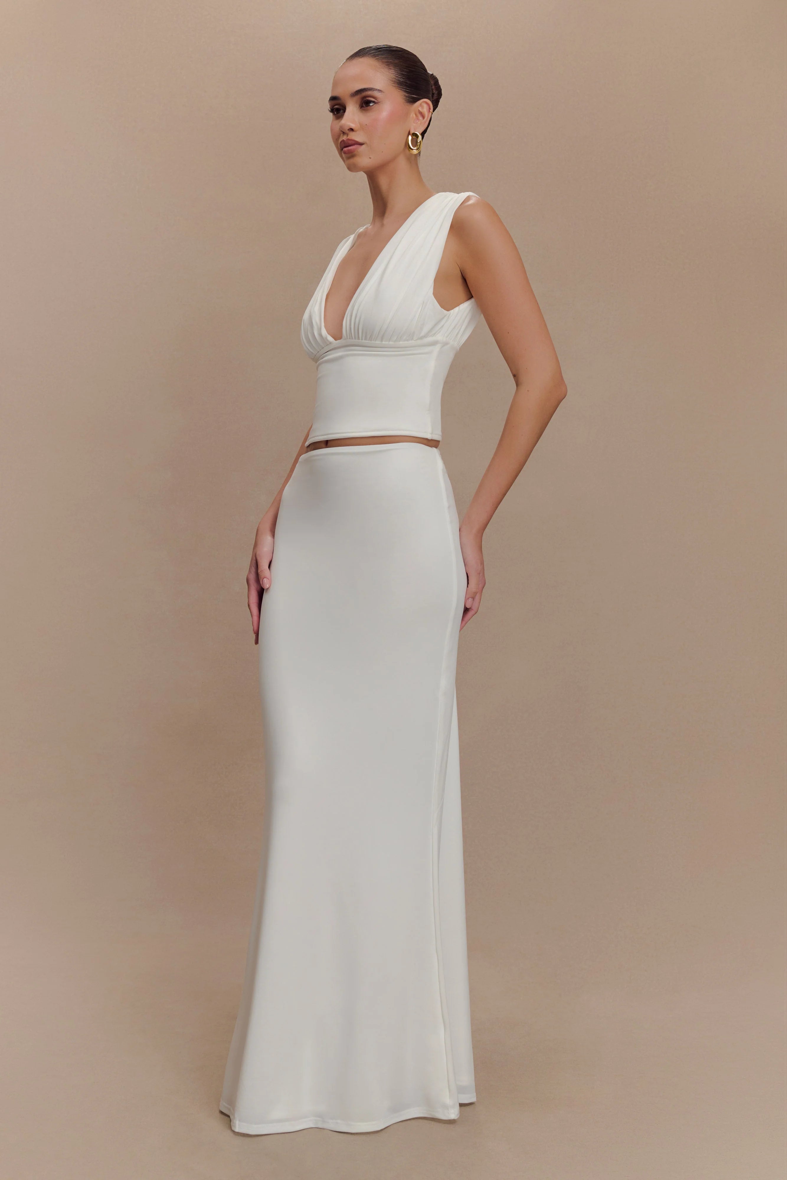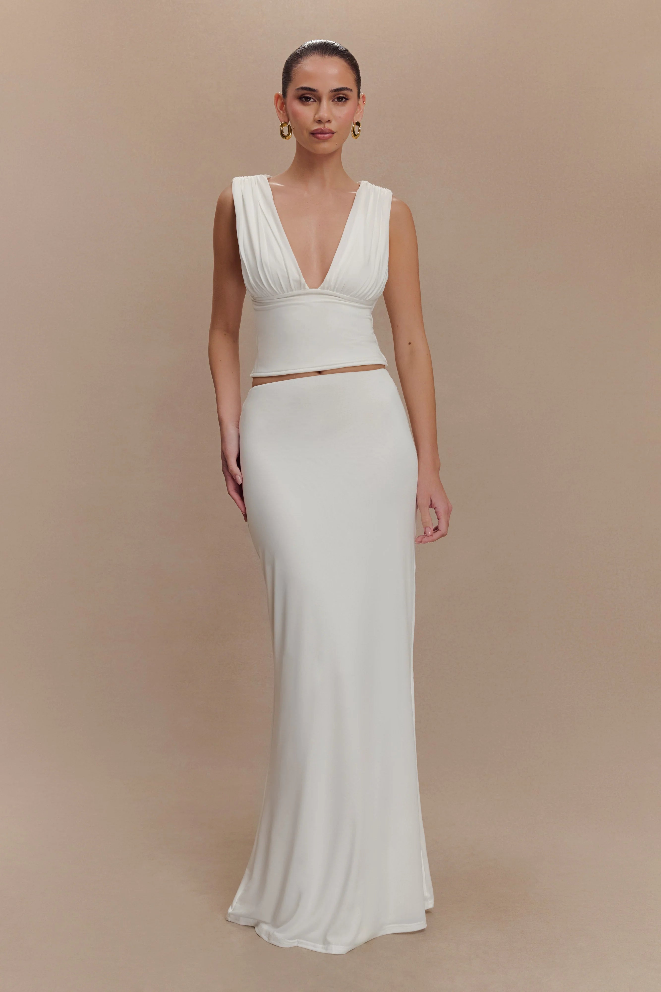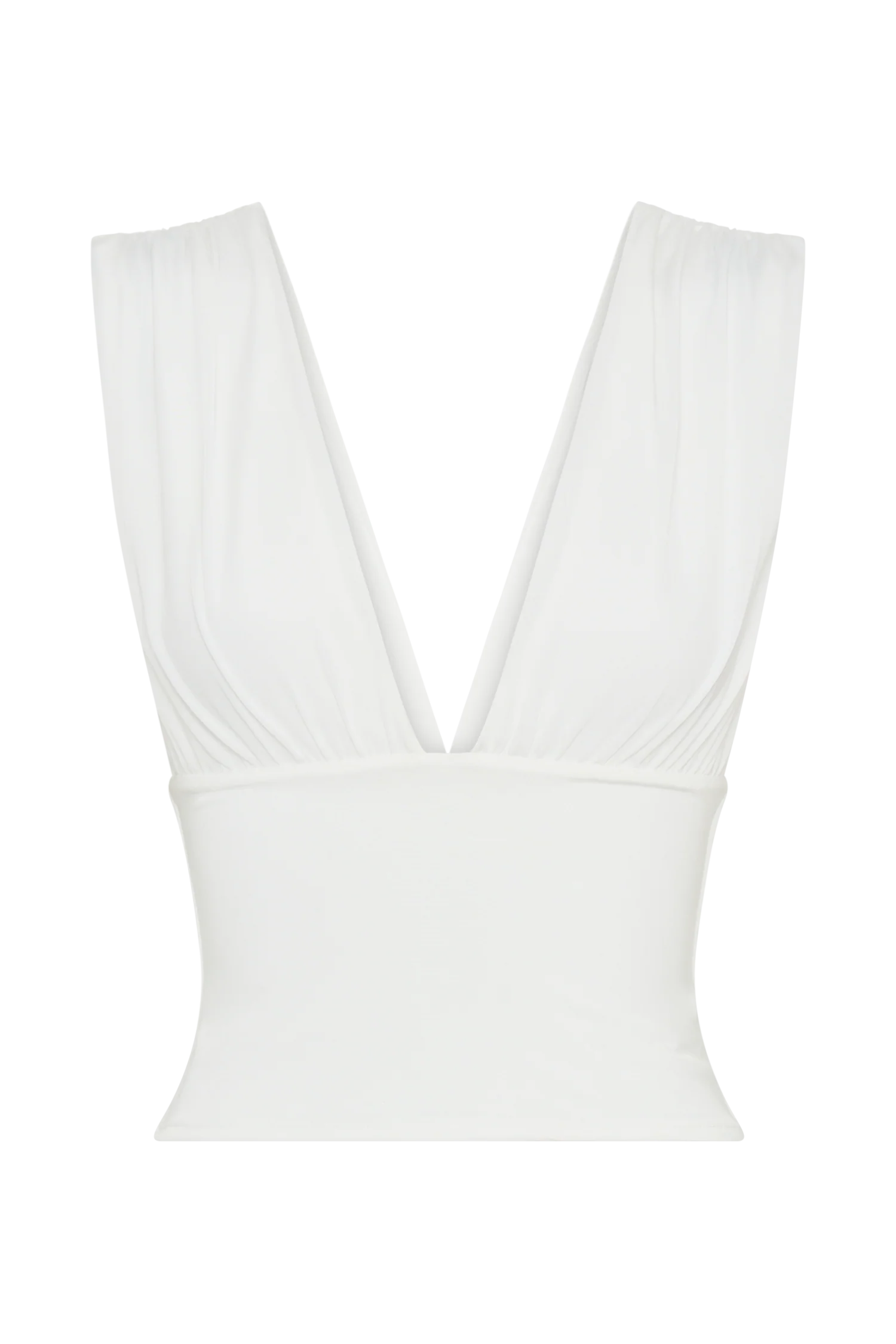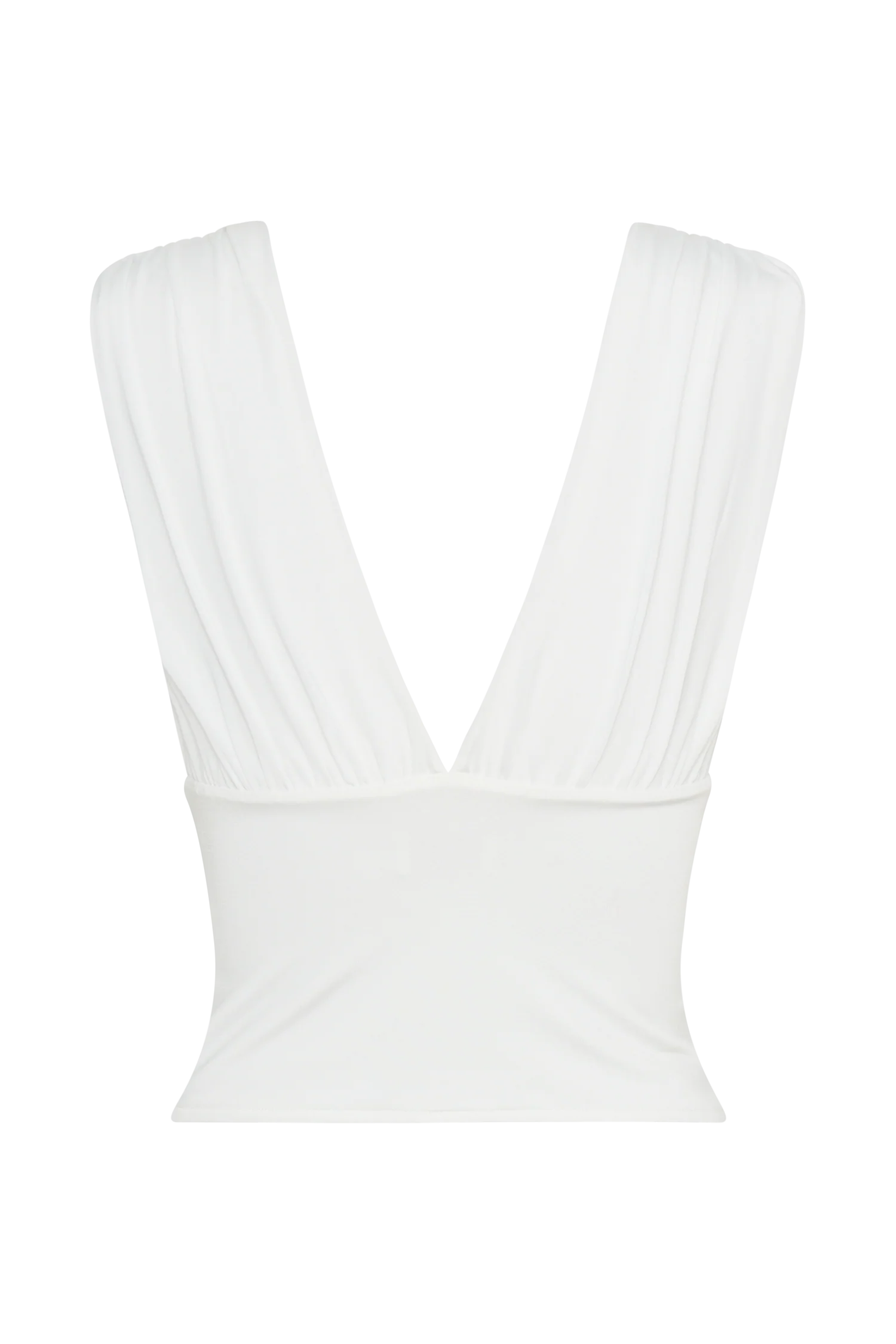The KERRIGAN Slinky Ruched Sleeveless Top offers a perfect blend of elegance and sensuality. With a deep V neckline, this top creates a striking silhouette that accentuates your décolletage. The gathered bust panels add texture and shape, while the fitted low waist panel provides a sleek, contoured fit. Lined for a smooth, comfortable finish, the Kerrigan top is versatile and can be dressed up or down. Pair it with high-waisted trousers or skirts for a chic, sophisticated look that’s perfect for any occasion.