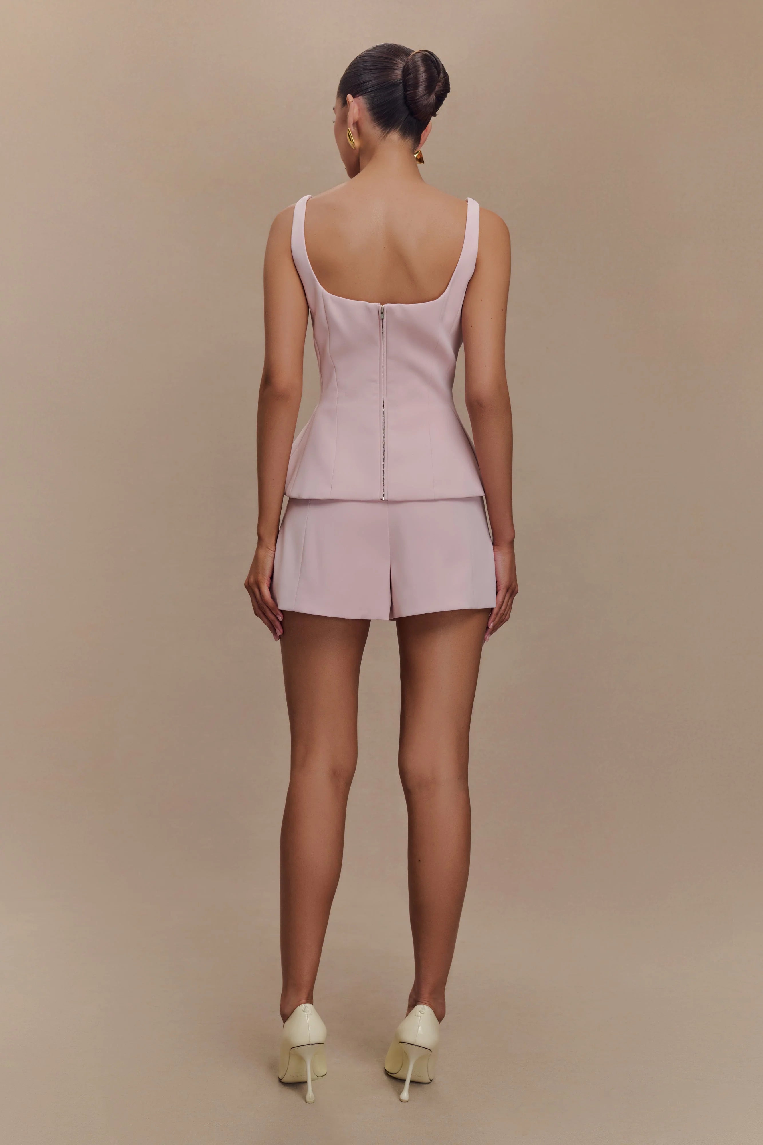 The KORRIE Suiting Peplum Top offers a chic blend of structure and elegance, designed to flatter with every detail. Featuring a classic round neckline and a fitted bodice, this top emphasises your shape while the structured peplum adds a refined, feminine touch. A centre-back zip closure ensures a seamless fit, and the full lining provides comfort and polish. Pair it with the for a sophisticated, coordinated look that transitions effortlessly from day to night.