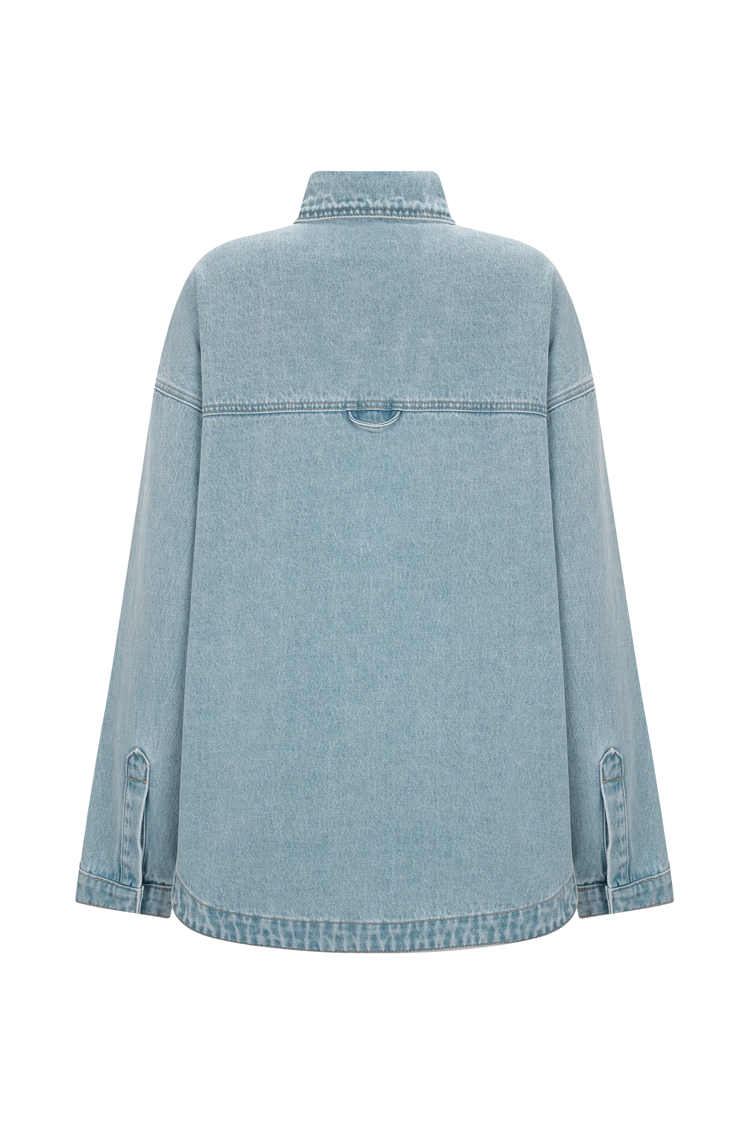 The LIODA Oversized Denim Shirt redefines a wardrobe classic with an effortlessly cool silhouette. Featuring a collared neckline, press stud front closure, and drop shoulders, it delivers a laid-back yet refined feel. Long sleeves and a back yoke add subtle structure, while its unlined finish keeps it lightweight for year-round wear. Perfect for layering or wearing solo, this shirt brings an easy, oversized fit to everyday styling.
