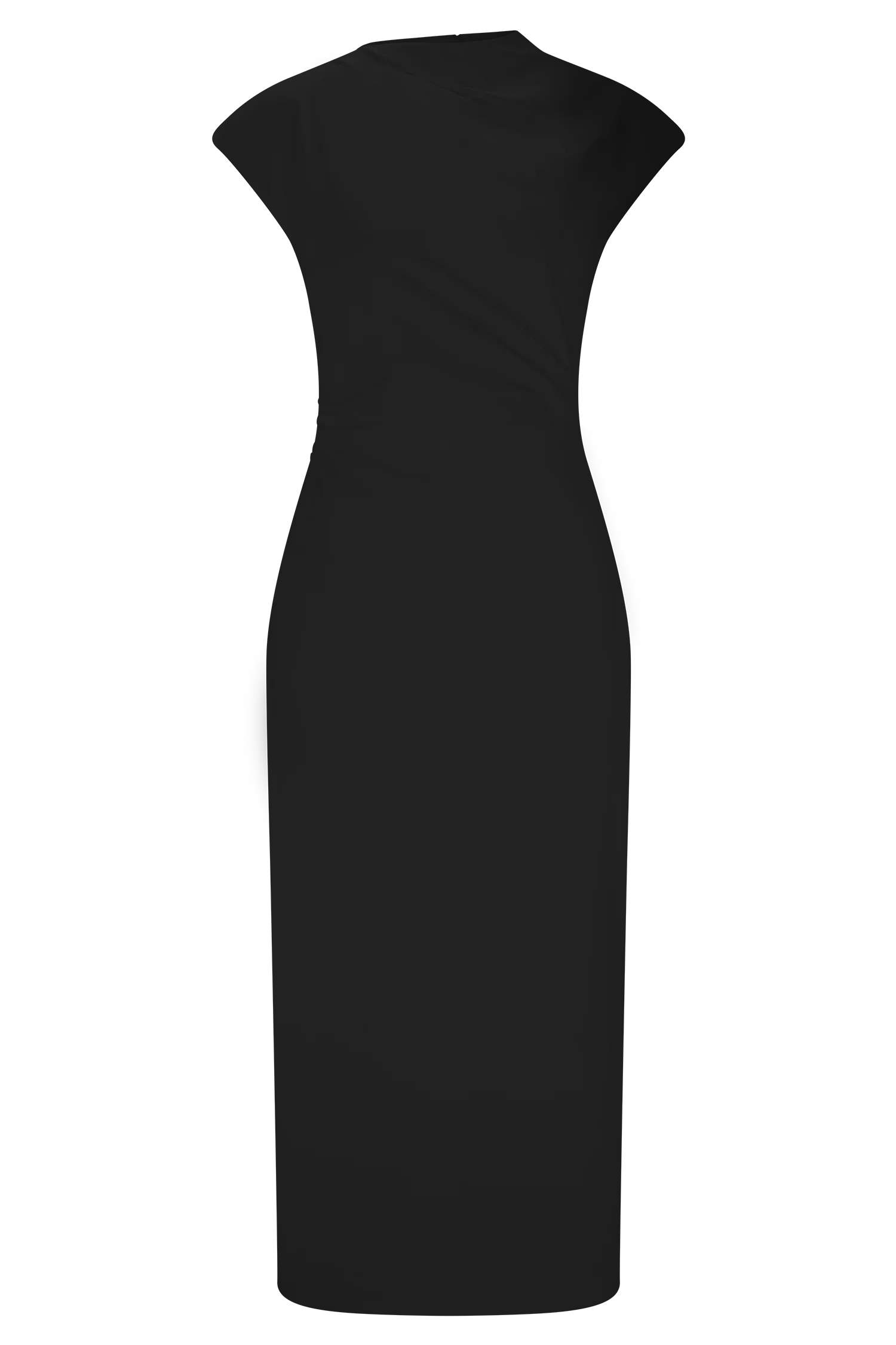 The LORENA Cotton Midi Dress is designed to flatter with its asymmetric high neckline and soft cap sleeves. Waist ruching adds subtle shaping through the bodice, while a centre back split allows for ease of movement in the clean midi-length silhouette. Fully lined for comfort and completed with an invisible centre back zip, this dress delivers understated sophistication—perfect for day-to-evening occasions.
