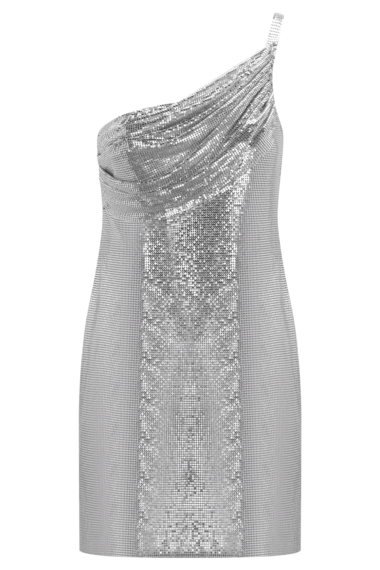 The LYLE One Shoulder Glow Mesh Mini Dress is designed to turn heads with its sleek silhouette and radiant finish. Crafted from glomesh fabrication, it catches the light with every movement, creating a fluid, luminous effect. The one-shoulder neckline and draped overlay detail add modern dimension, while a side hook-and-eye closure ensures a seamless fit. Cut to a mini length, this dress delivers after-dark glamour.