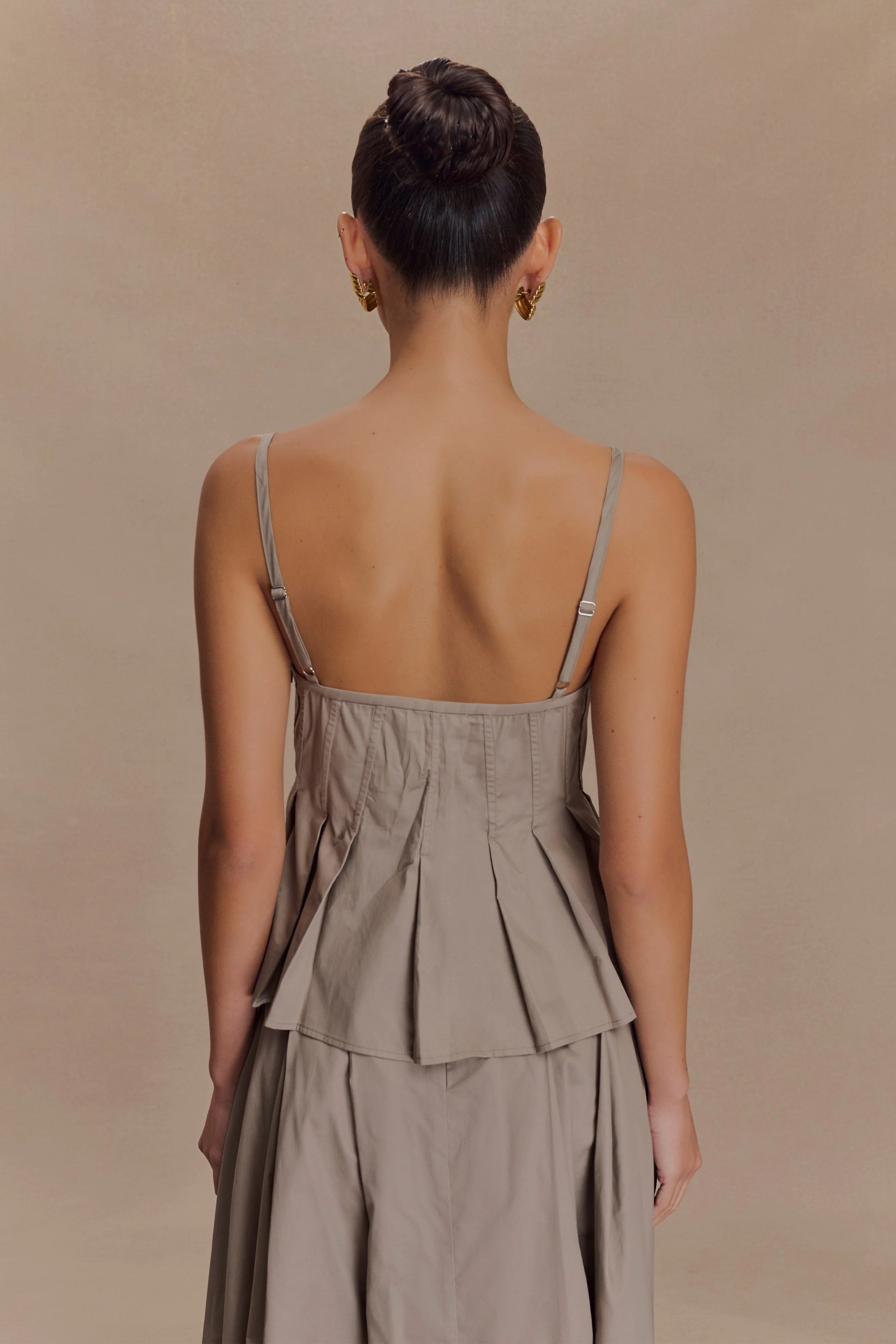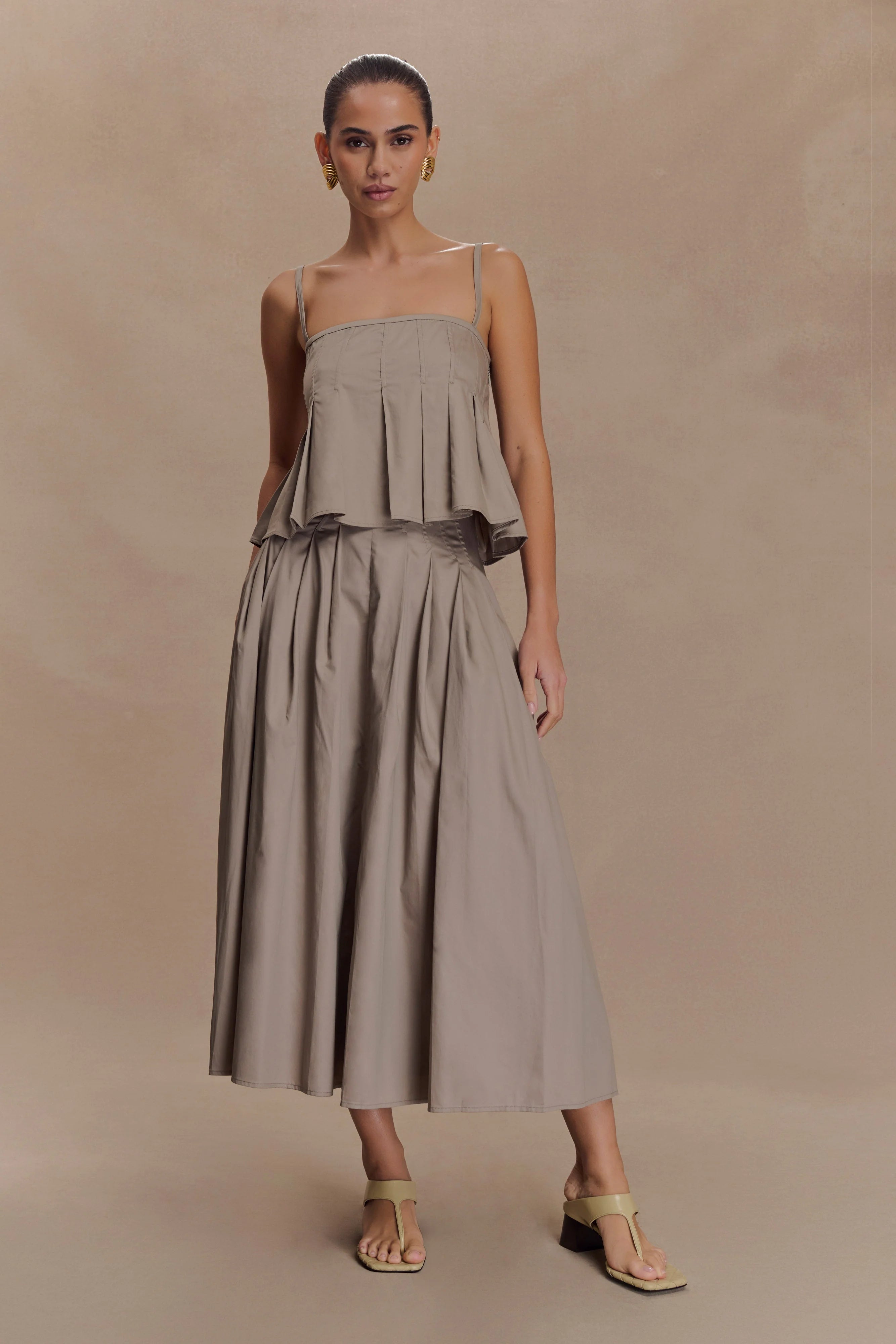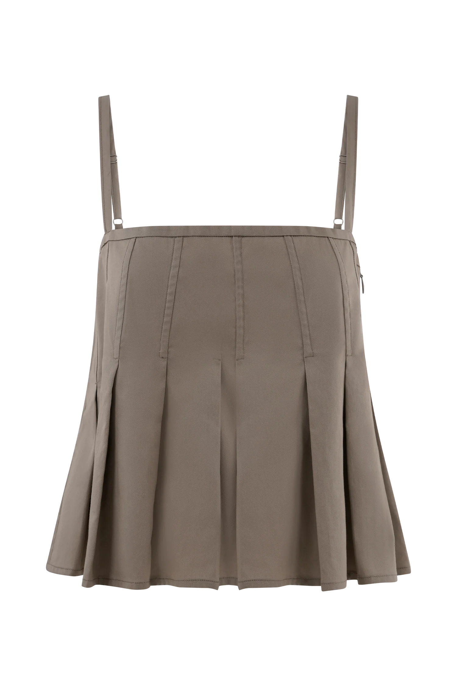 The MAE Cotton Top is a fresh, feminine piece made for sunlit days and effortless styling. Featuring a square neckline with adjustable spaghetti straps, this cropped silhouette is defined by its pleated bust and clean, structured lines. The invisible side zip ensures a sleek fit, while the unlined cotton keeps it breathable and easy to wear. Pair with the for a coordinated look that blends classic tailoring with modern simplicity.