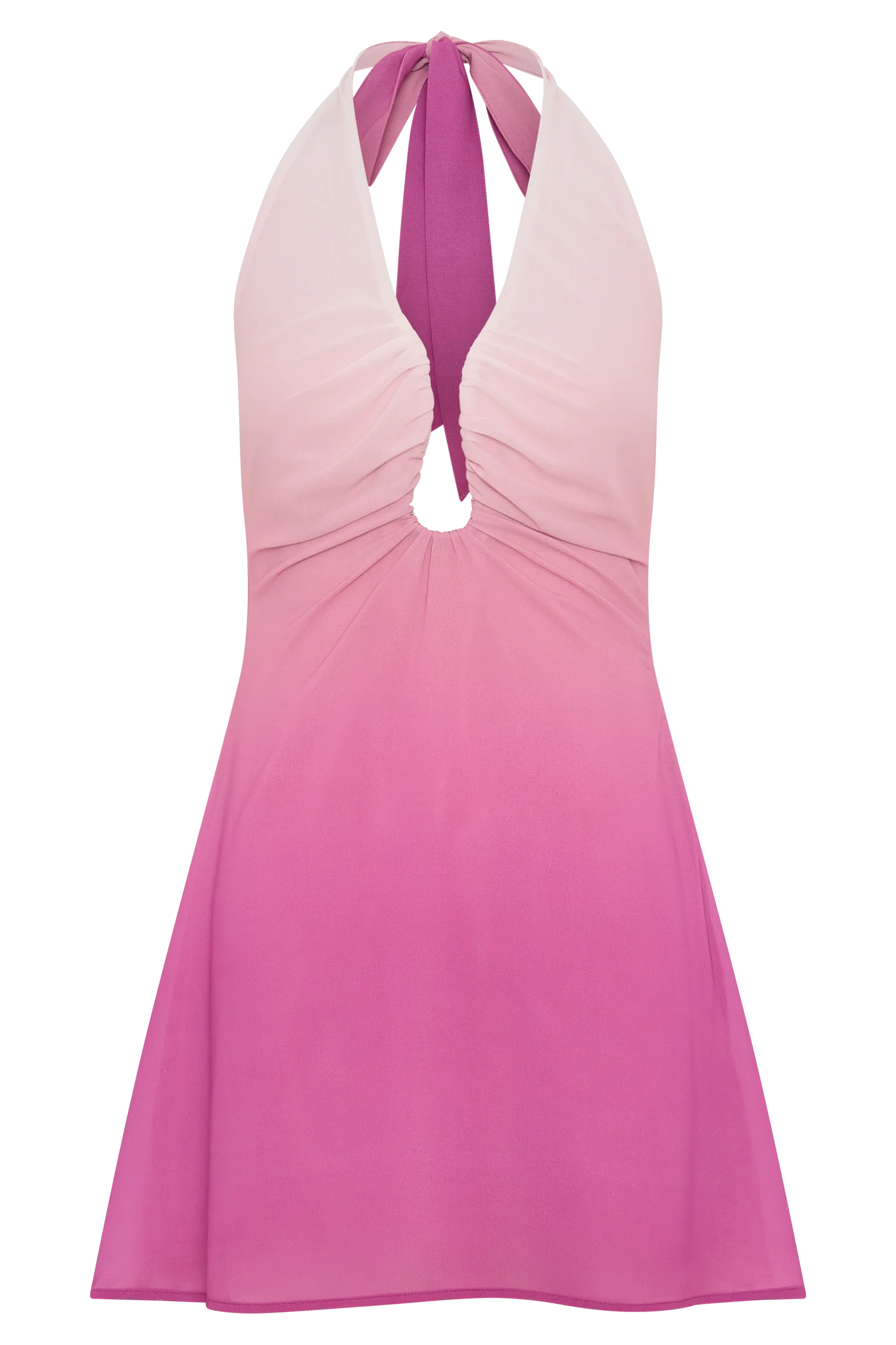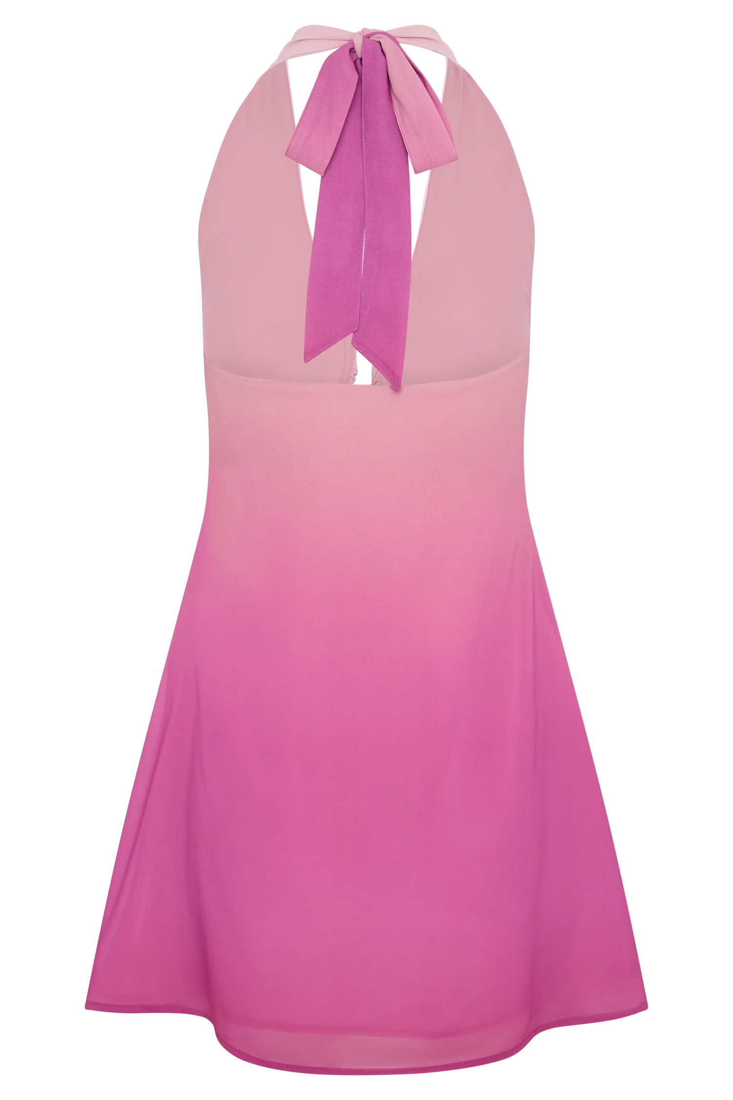 The MALAKHAI Chiffon Halter Mini Dress is your go-to for ethereal ease with a daring edge. Designed with a tie halter neck and a plunging neckline supported by internal wiring for a sculpted shape, this mini brings both softness and structure. The A-line silhouette flatters effortlessly, while the side zip and full lining ensure a smooth, comfortable fit. Perfect for warm evenings and statement moments, this dress is light, flirty, and unforgettable.