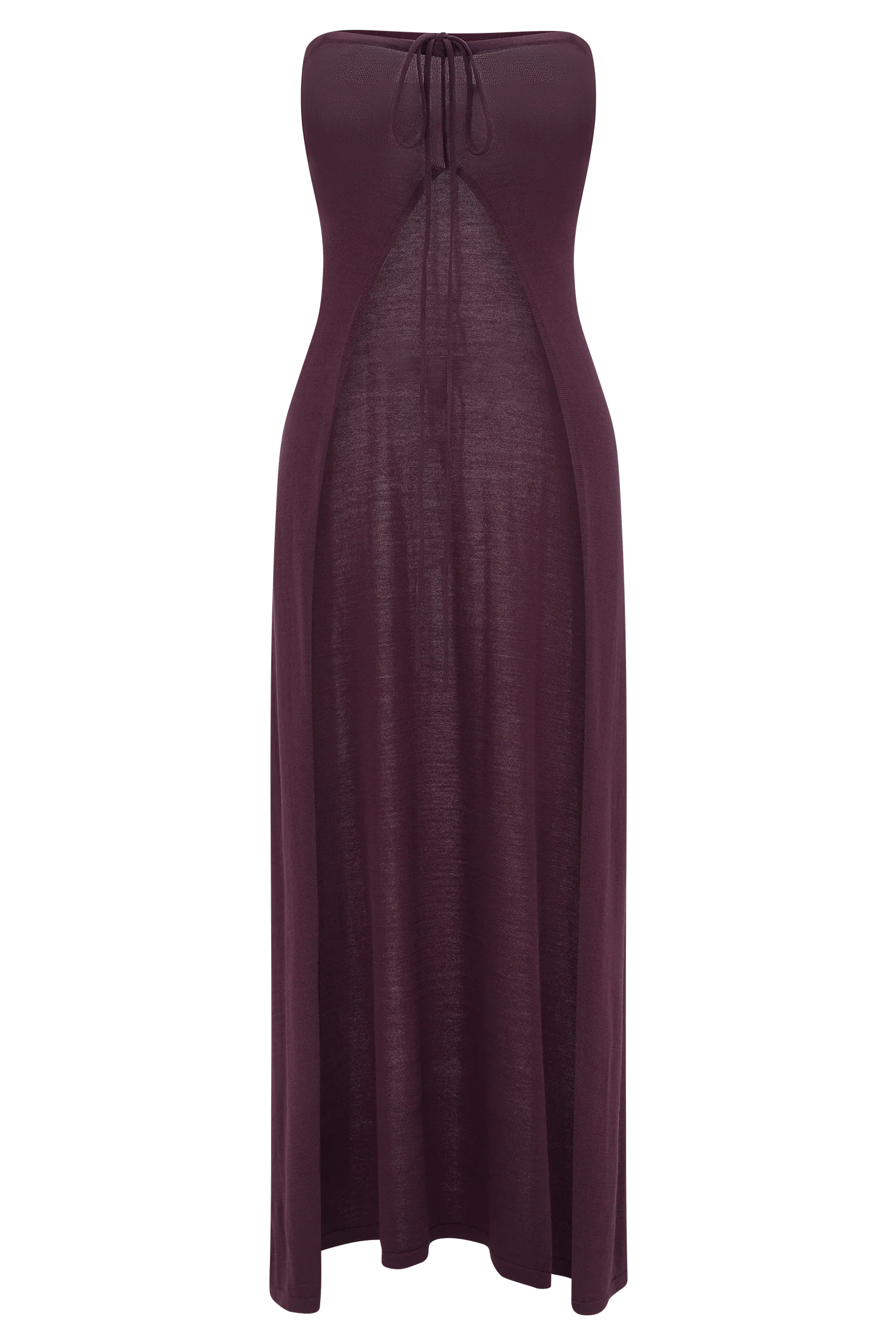 The MARIMAE Long Knit Top is a modern layering piece designed with sculptural detail. Featuring an adjustable halter neckline with gathered detailing at the centre front, it frames the shoulders with sleek simplicity. A front split adds movement through the longline silhouette, while the midi length creates elongation and versatility. Left unlined for a natural drape, this top offers an effortless balance of comfort and contemporary polish.