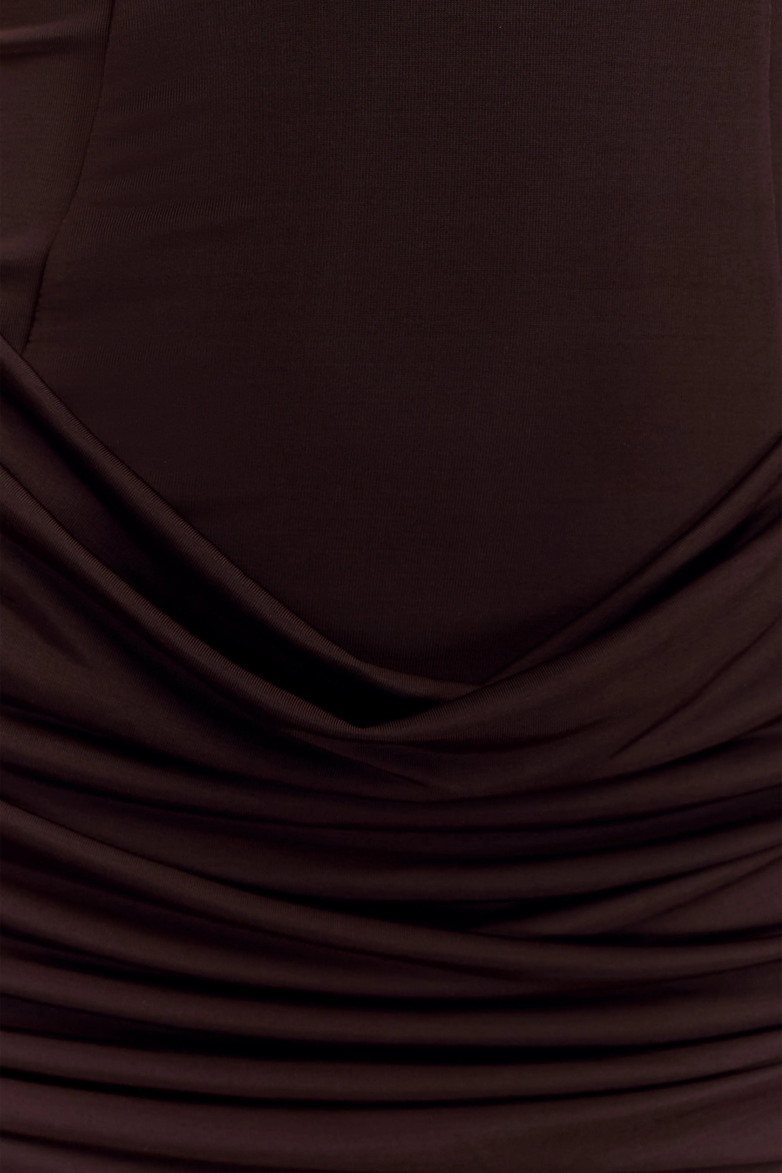 The MATTEA Slinky and Mesh Mini Dress With Scarf is designed to make a statement from every angle. Featuring a strapless corset style bodice with a flattering sweetheart neckline, this mini dress hugs the body in all the right places. A draped overlay skirt with soft pleats at the side seams adds movement, while the attached scarf flowing from the left underarm brings a touch of dramatic flair. Fully lined and finished with an invisible zip for a seamless fit, this dress is your go-to for elevated evenings and standout moments.