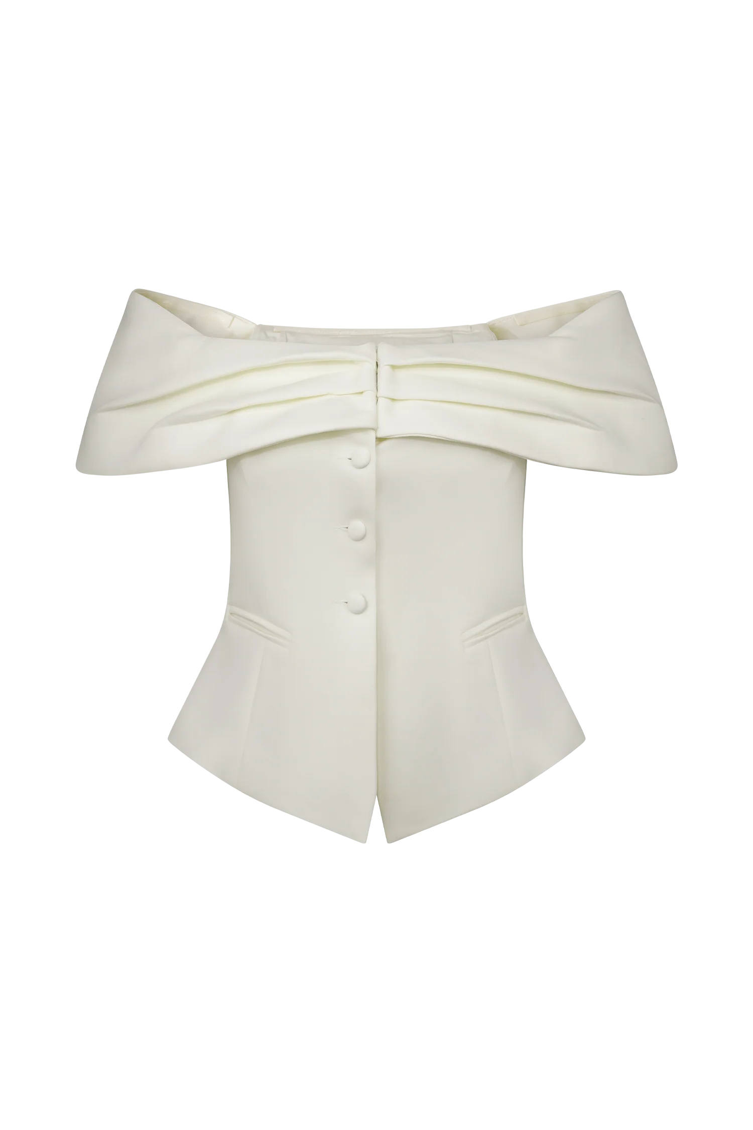Redefine tailored elegance with the MAXIME Suiting Vest, a modern twist on classic suiting. Featuring a chic bardot neckline, this vest highlights your décolletage with a touch of sophistication. The structured design ensures a flawless fit, while the button-front closure adds a refined finish. Fully lined for comfort and polish, the MAXIME Vest is perfect for creating sleek, standout looks. Pair it with the or a skirt for an ensemble that commands attention in any setting.