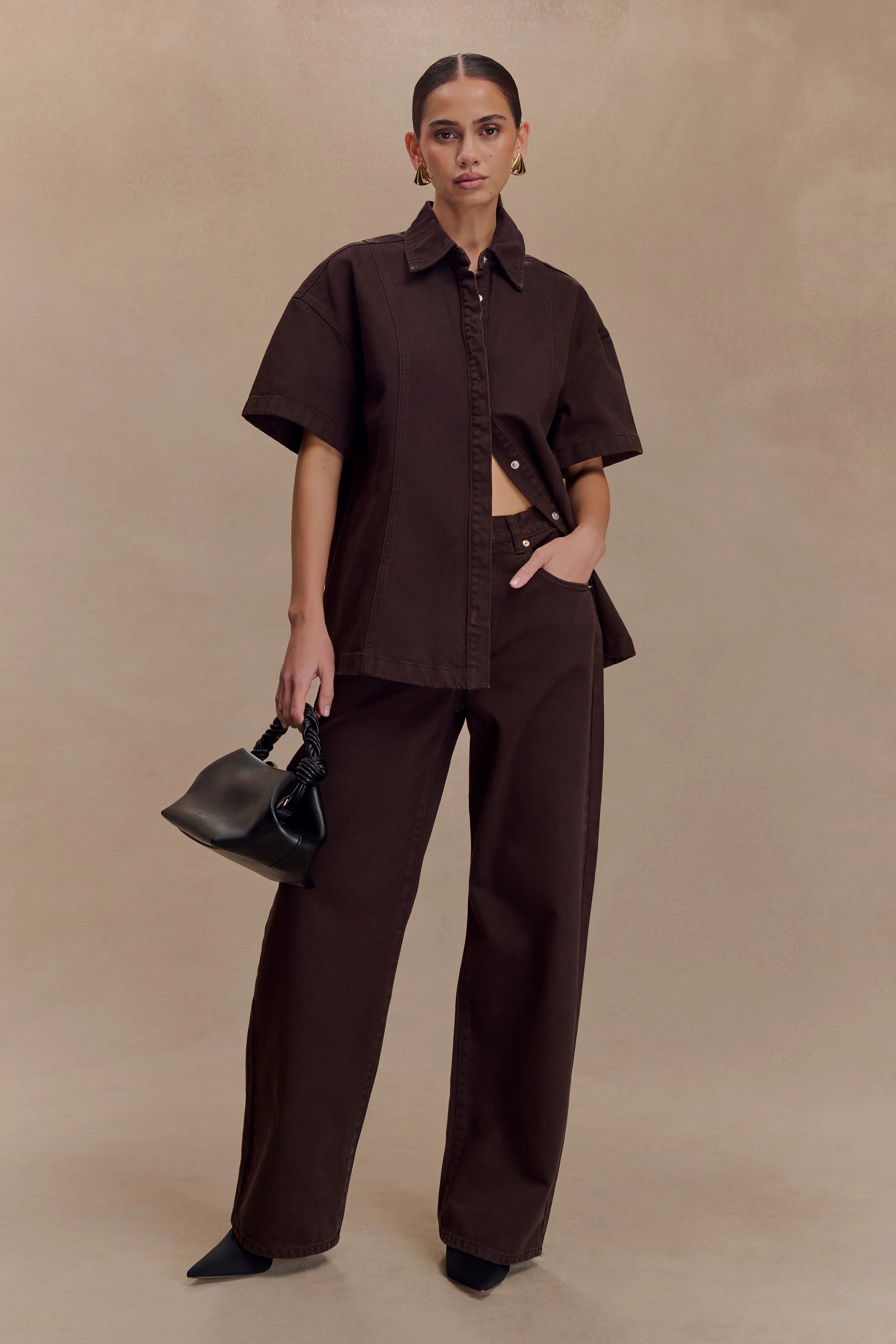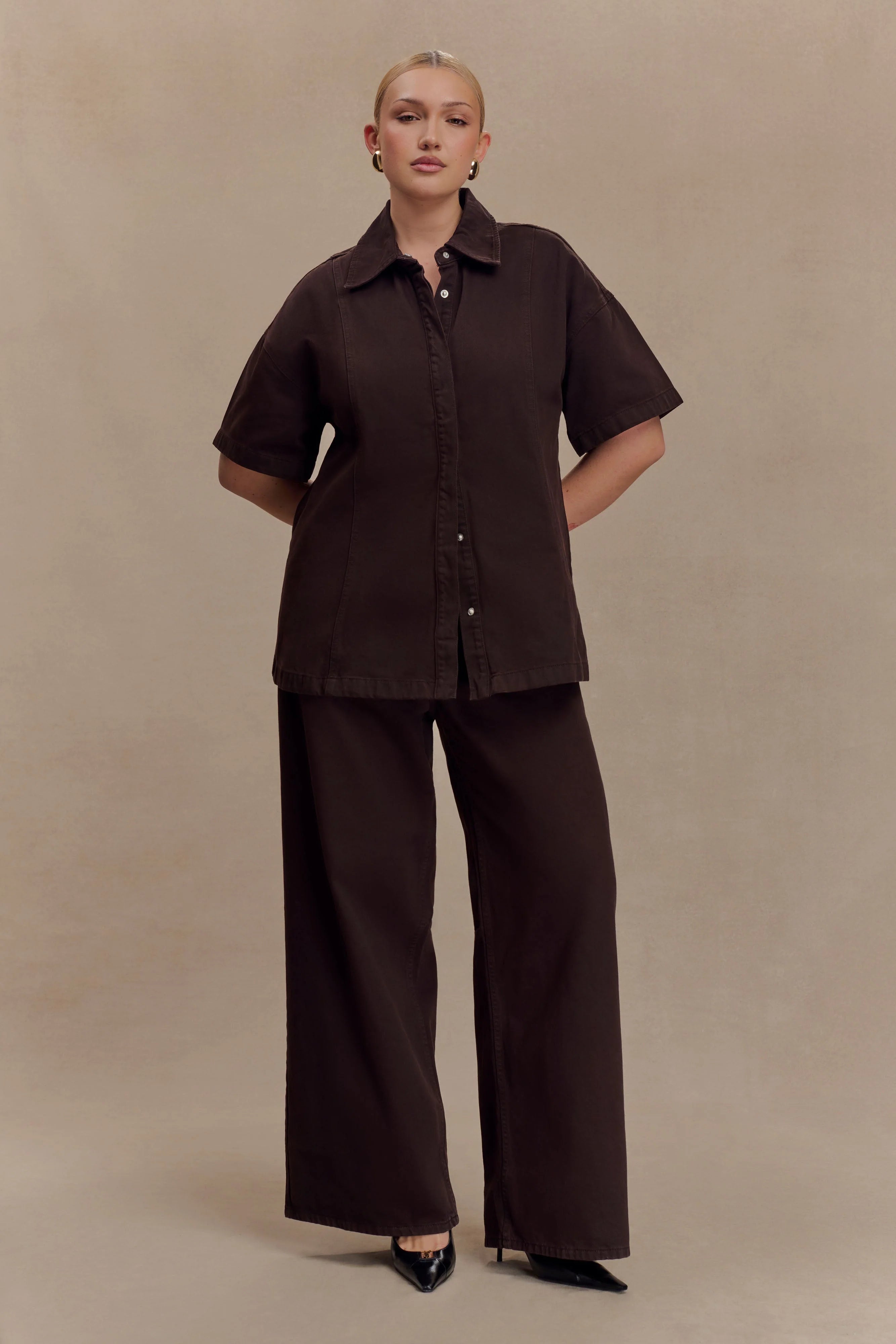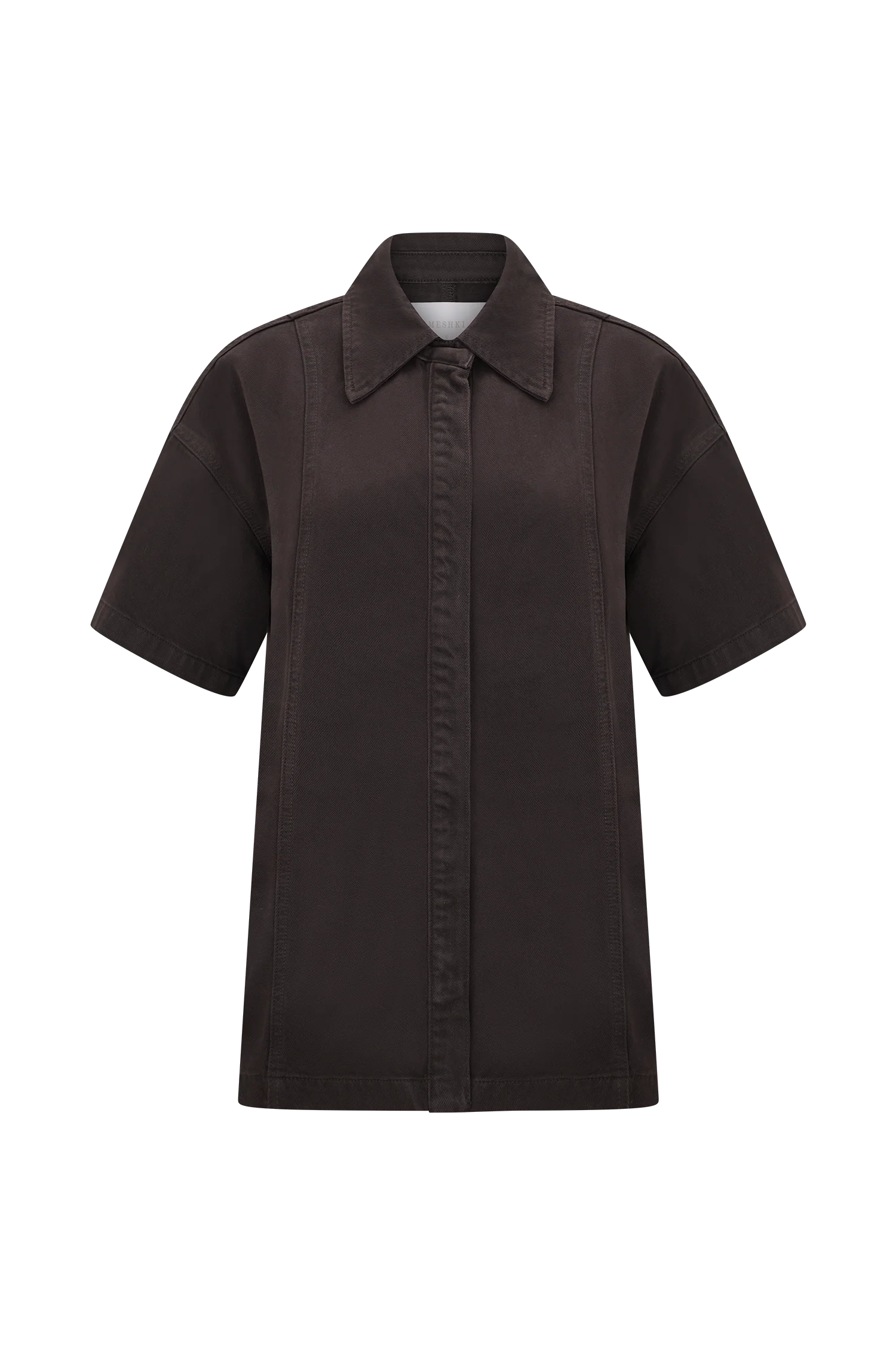The MAYA Oversized Denim Shirt combines effortless style with a modern, relaxed fit for a versatile wardrobe staple. Featuring a classic collared neckline and button front closure, this shirt offers timeless appeal with a laid-back twist. The oversized fit ensures comfort and versatility, while the short sleeves add a relaxed touch, making it ideal for everyday wear. Designed with front and back panelling details for a structured look, the longline silhouette adds length and effortless style.