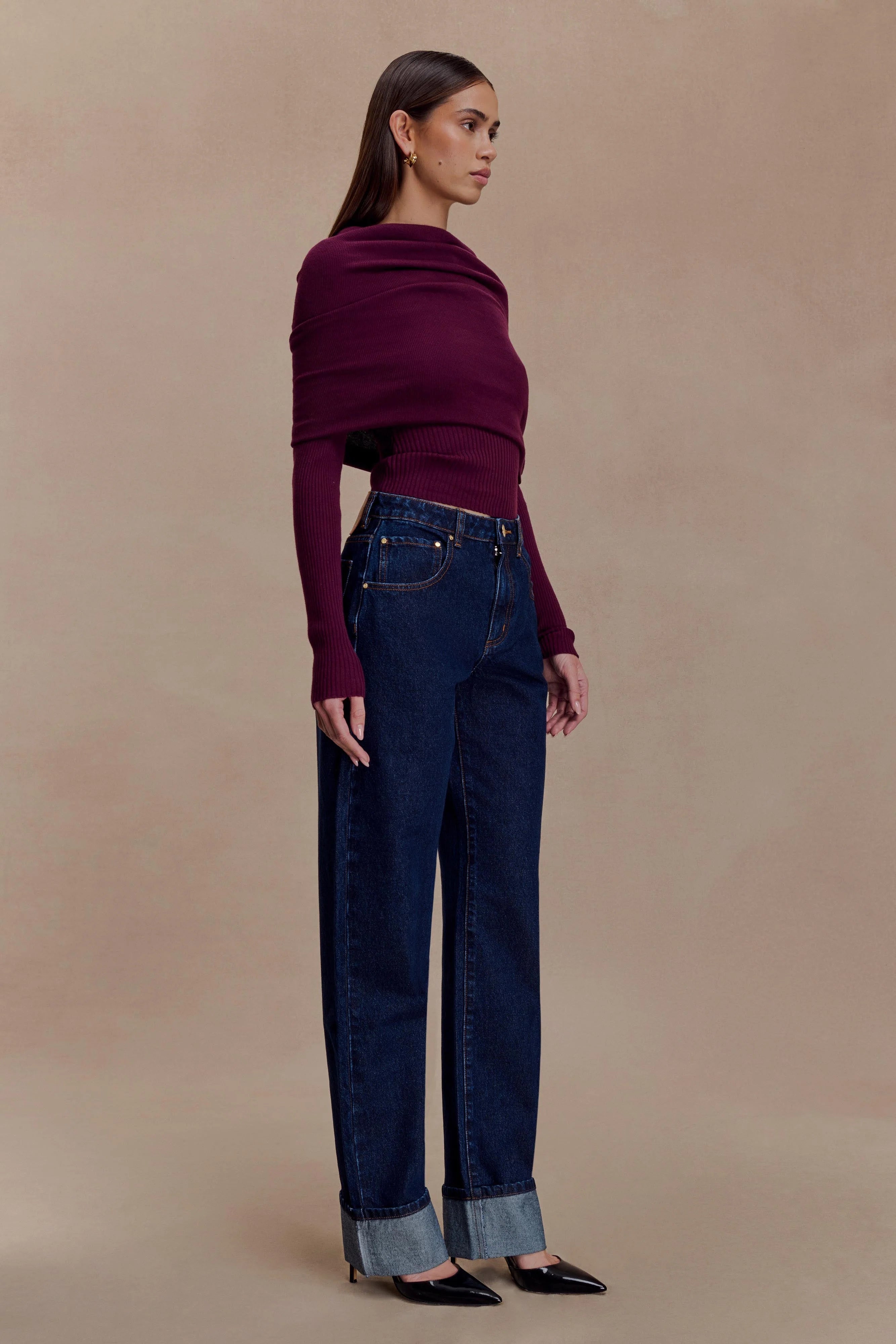 The MAZIE Asymmetrical Cashmere Blend Long Sleeve Knit Top is a directional take on everyday knitwear. Crafted in a ribbed knit for a fitted silhouette, it features a flat-knit asymmetrical overlay that gathers softly across the frame for sculptural dimension. The removable overlay offers styling versatility—wear it streamlined for a minimalist look or layered for added texture. Left unlined for a natural drape, this top brings a refined finish to modern wardrobe foundations.