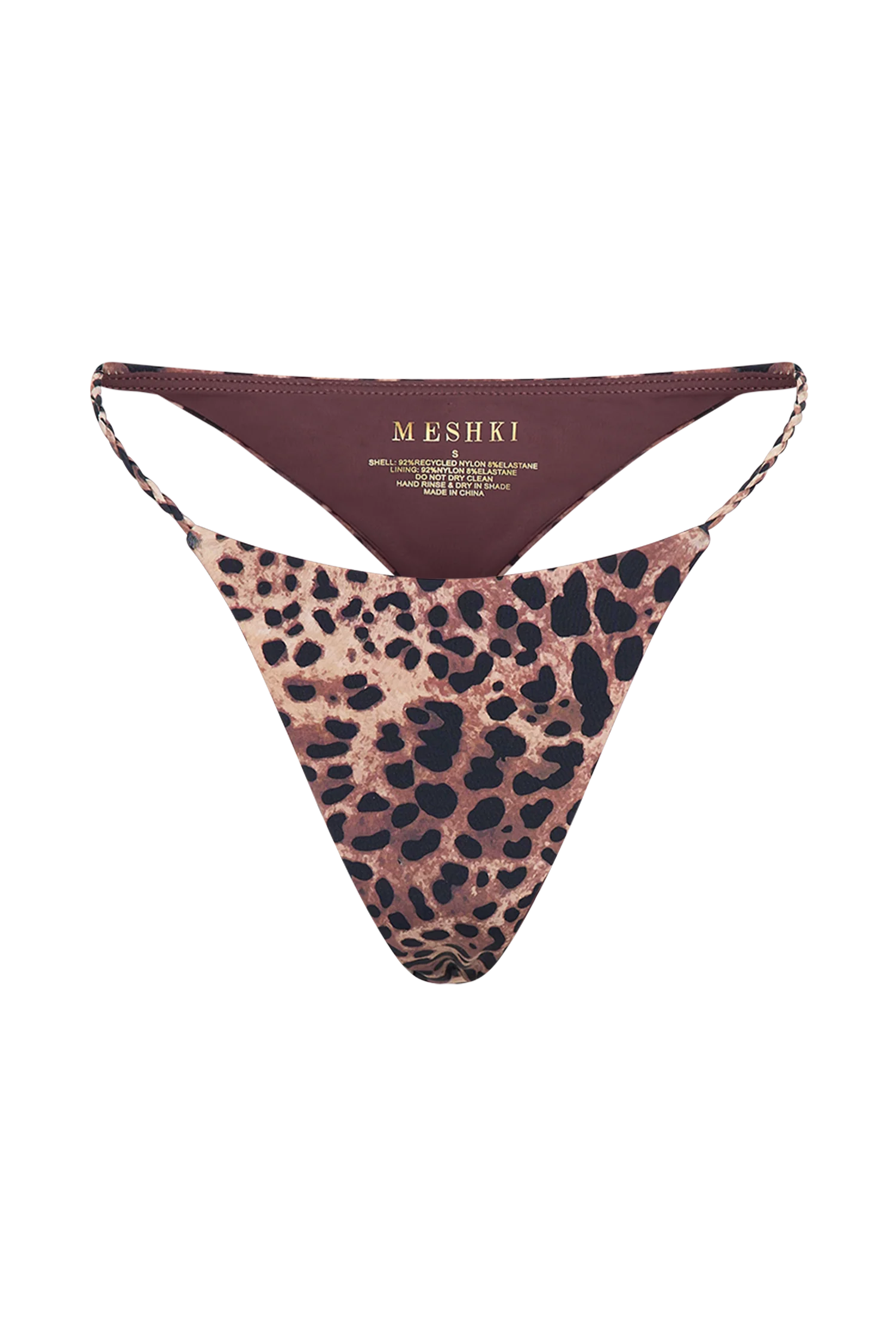 This is a cheeky bum cut bikini bottom with braided side straps, nylon-and-spandex lining, and a flattering, low-rise hem. Feel fresh and flirty in MELIKA’s teasing design; a modestly wide front with a visibly smaller (and cheekier) back creates the most alluring visuals. No need to worry about staying covered, either; the braided strings and the quality nylon-and-spandex fabric blend are made for long wear. Whether you’re wearing MELIKA for an afternoon swim or a whole-day beach-hopping event, she’ll keep you feeling sexy and secure. Pair with our for a matched look.