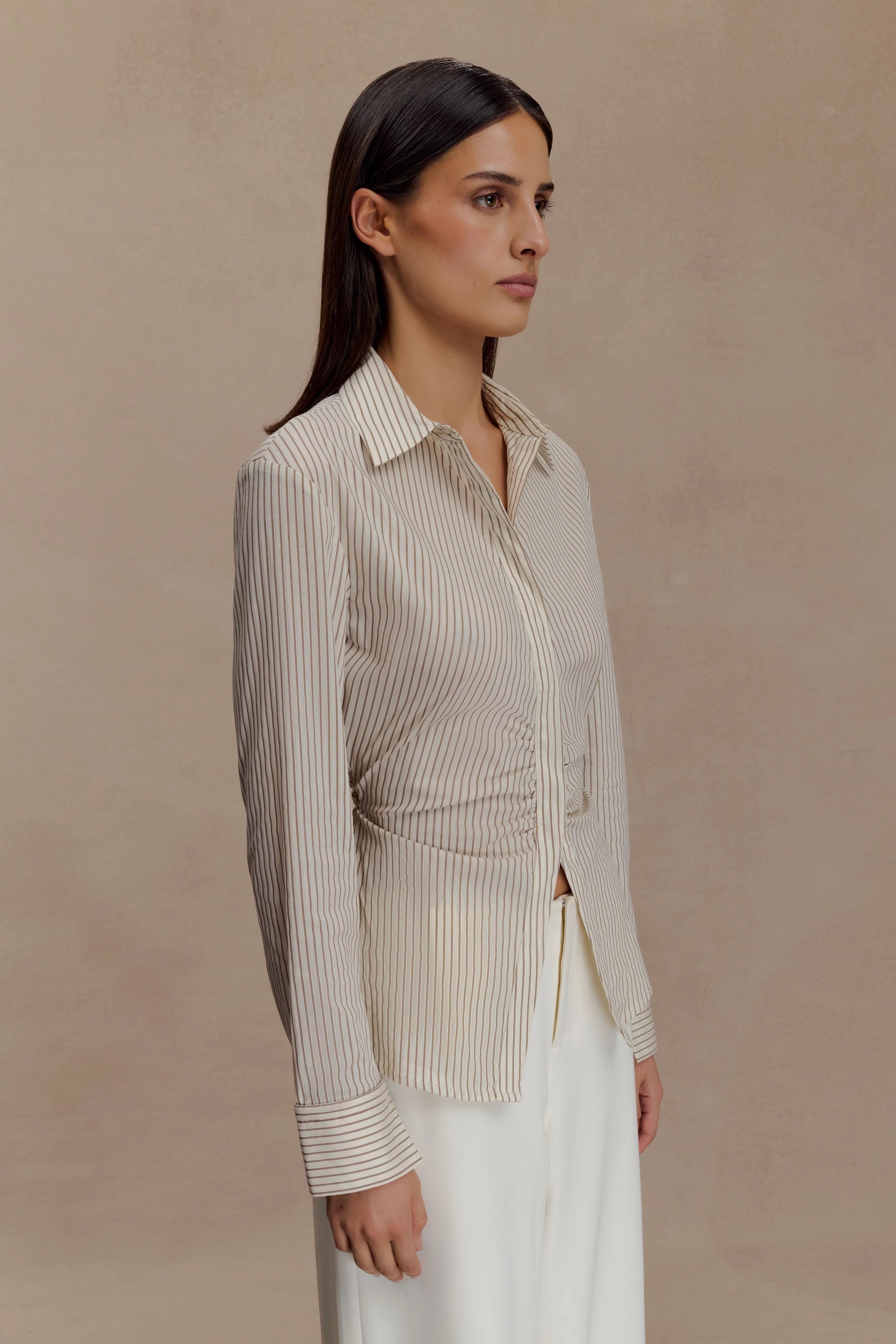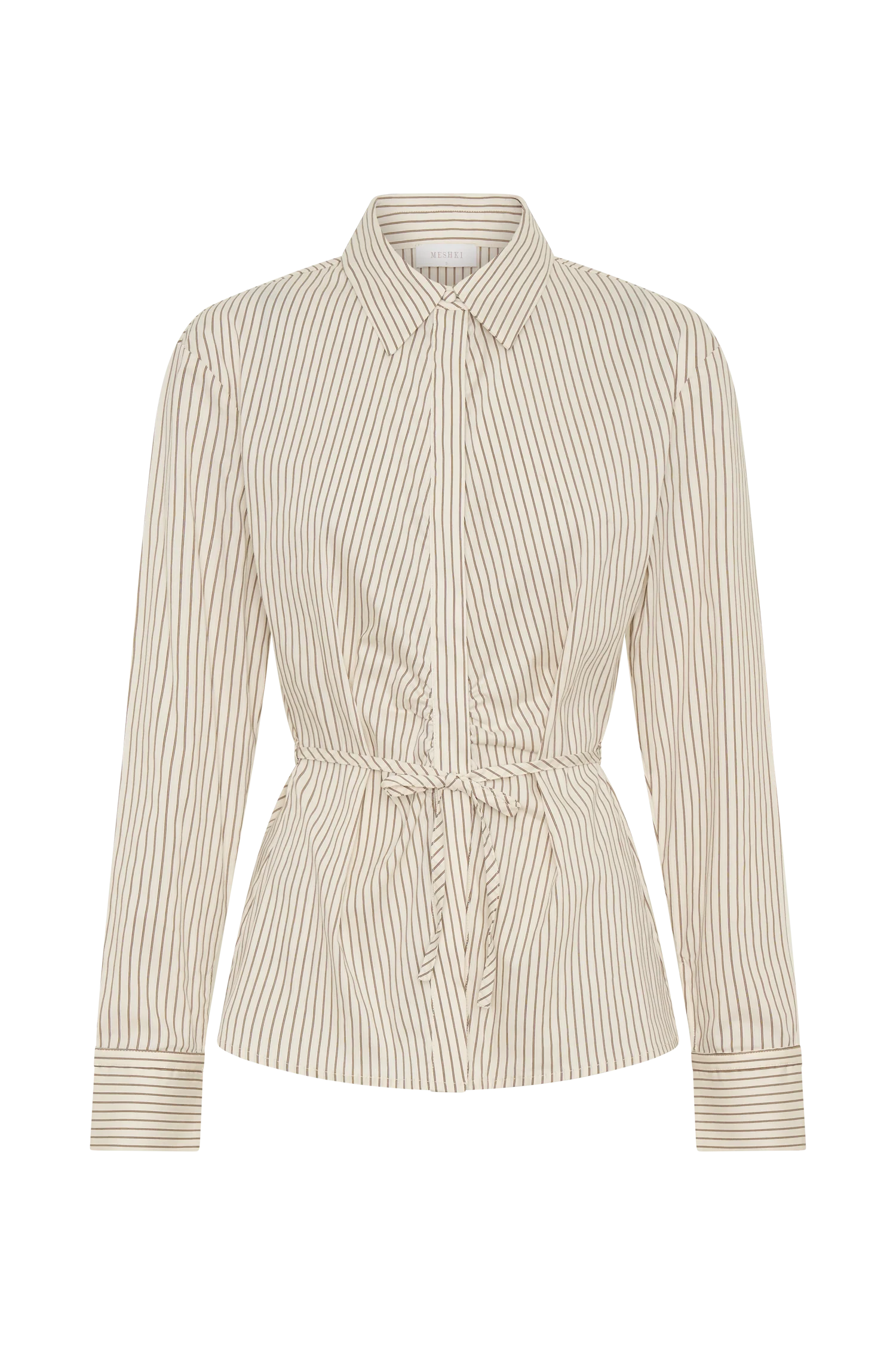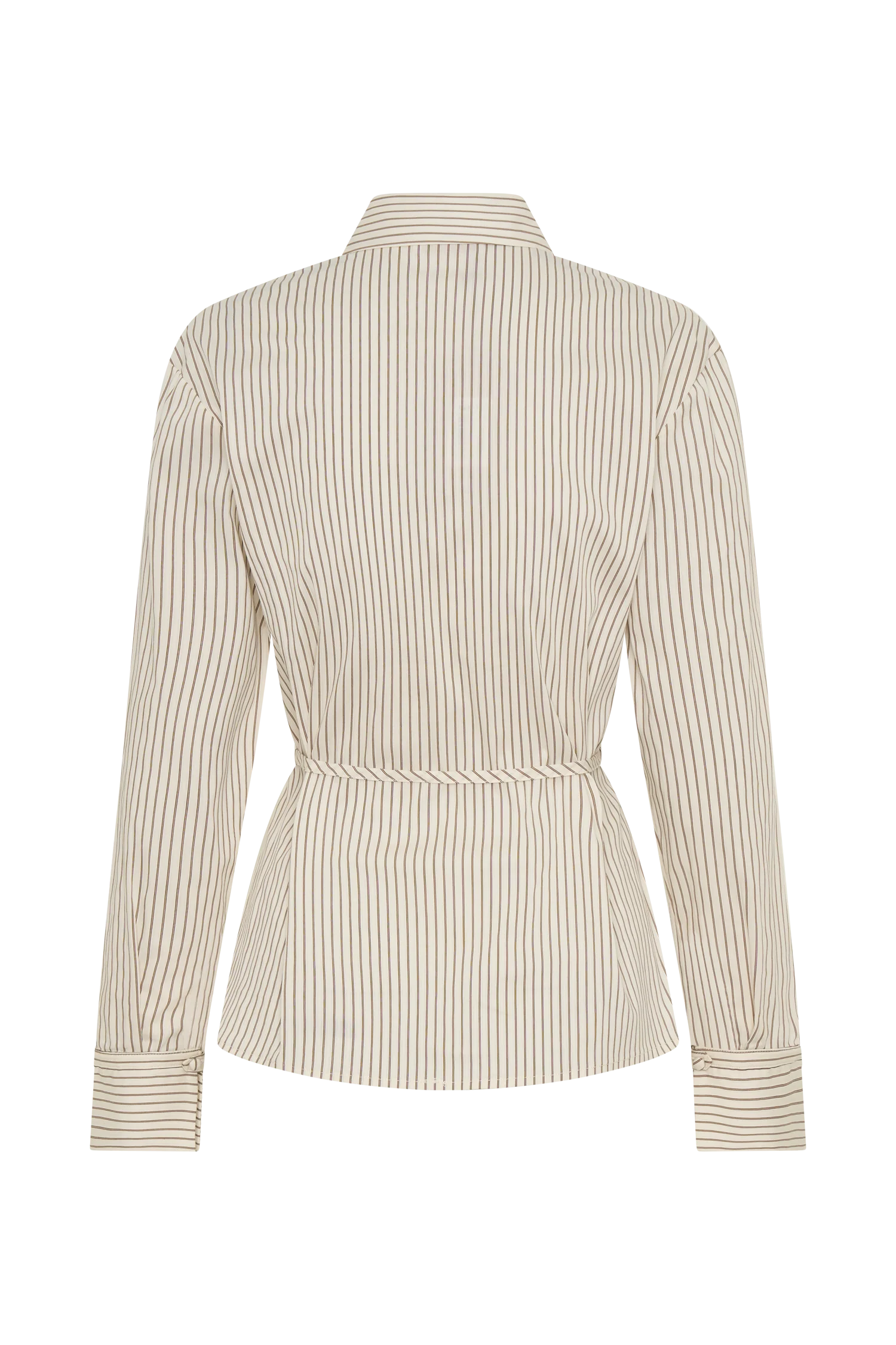 The MILLIE Tie Back Cotton Shirt takes a timeless staple and reimagines it with a feminine edge. Featuring a collared neckline, long sleeves, and a concealed button-front placket, it delivers sharp tailoring from the front. At the back, a waist tie threaded through side loops cinches the silhouette, creating a versatile fit that can be styled, structured or relaxed. Finished with buttoned sleeve cuffs and crafted from breathable cotton, this shirt is an effortless balance of polish and ease.