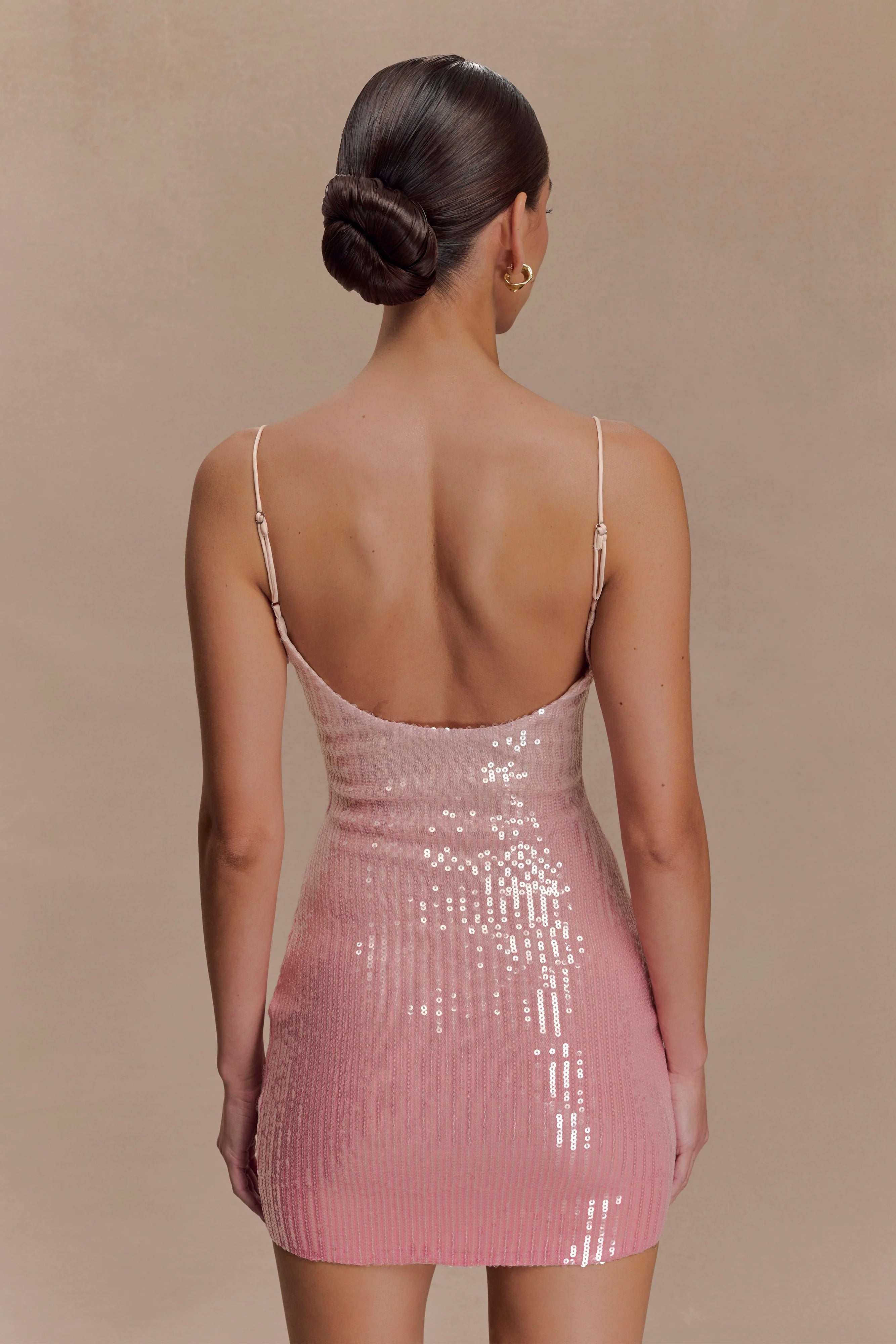 The MORA Sequin Mini Dress is a bold celebration of shimmer and shape. Featuring a radiant ombre sequin design and a flattering scoop neckline, this mini is made for the spotlight. The low back and adjustable straps offer an elevated touch of allure, while the stretch fabric and full lining ensure a comfortable, confident fit. With an invisible side zipper for a seamless finish, this dress is your go-to for evenings that call for glamour and glow.