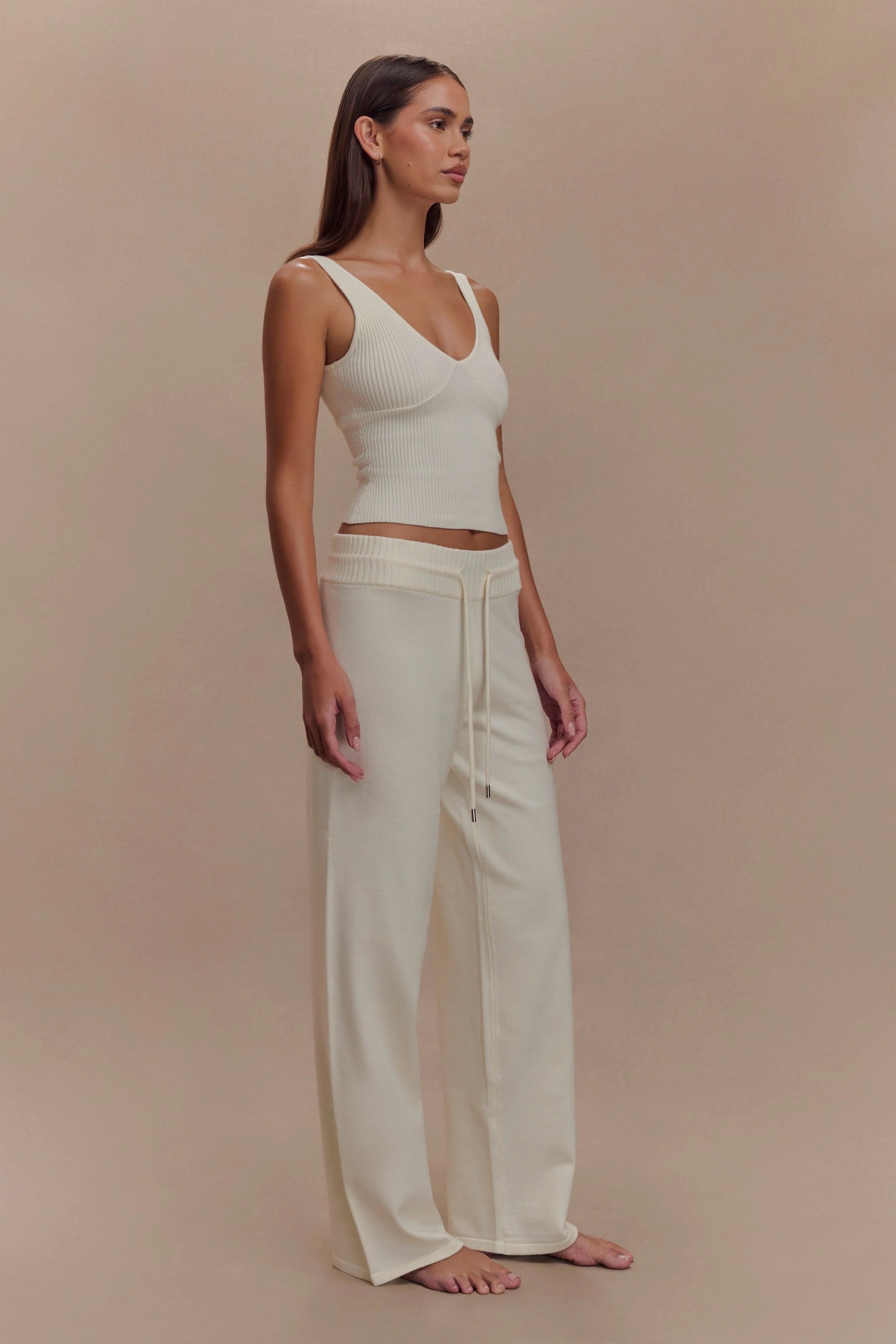 The NATALYA Knit Wide Leg Pants are the perfect combination of cozy comfort and chic style. Designed with a high-waisted fit and an adjustable drawstring elastic waist, these pants provide a flattering and customisable fit. The straight-leg silhouette offers a sleek, modern look, while the soft knitted fabric ensures all-day comfort and effortless wear. Ideal for lounging or casual outings, these pants pair seamlessly with the for a coordinated, elevated knitwear ensemble that exudes relaxed sophistication.