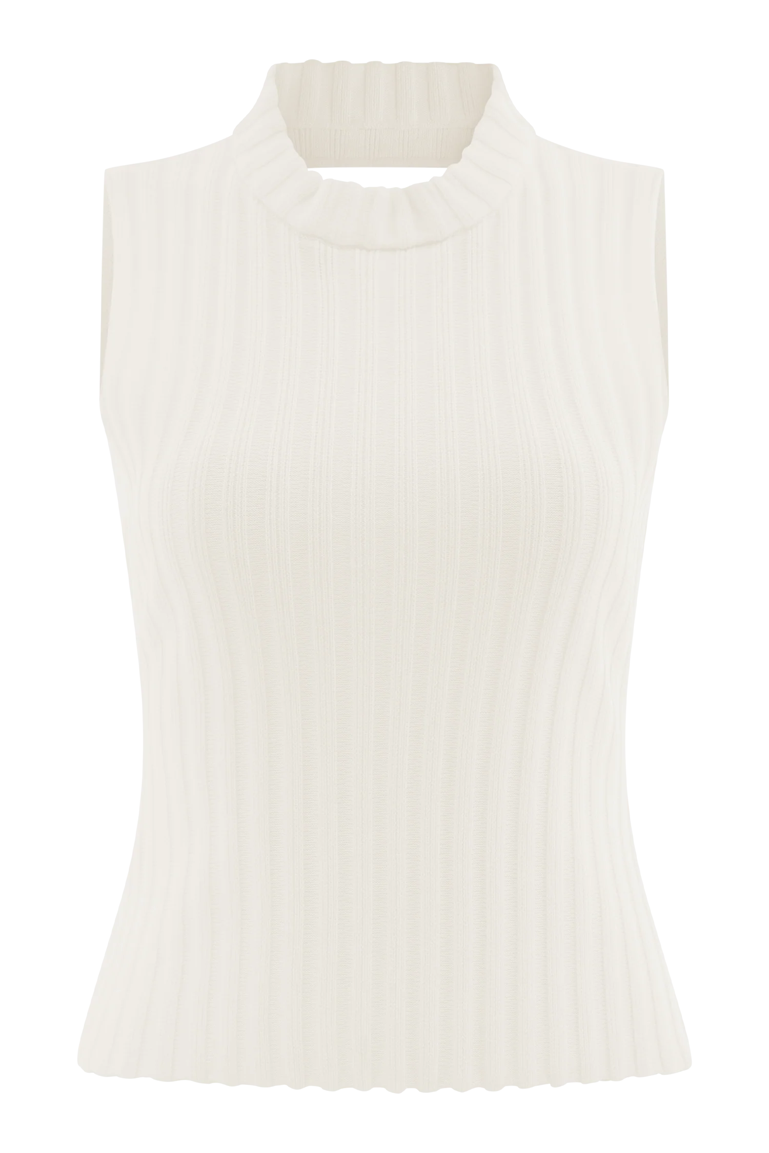 The OONA Turtle Neck Knit Top is a modern essential with an unexpected twist. Featuring a sleek turtle neckline and sleeveless silhouette, this ribbed knit top is balanced by a daring open back and elongated longline fit. Unlined for a lightweight, second-skin feel, it’s perfect for layering or wearing solo. Pair with the for a confident contrast of soft stretch and structured edge.