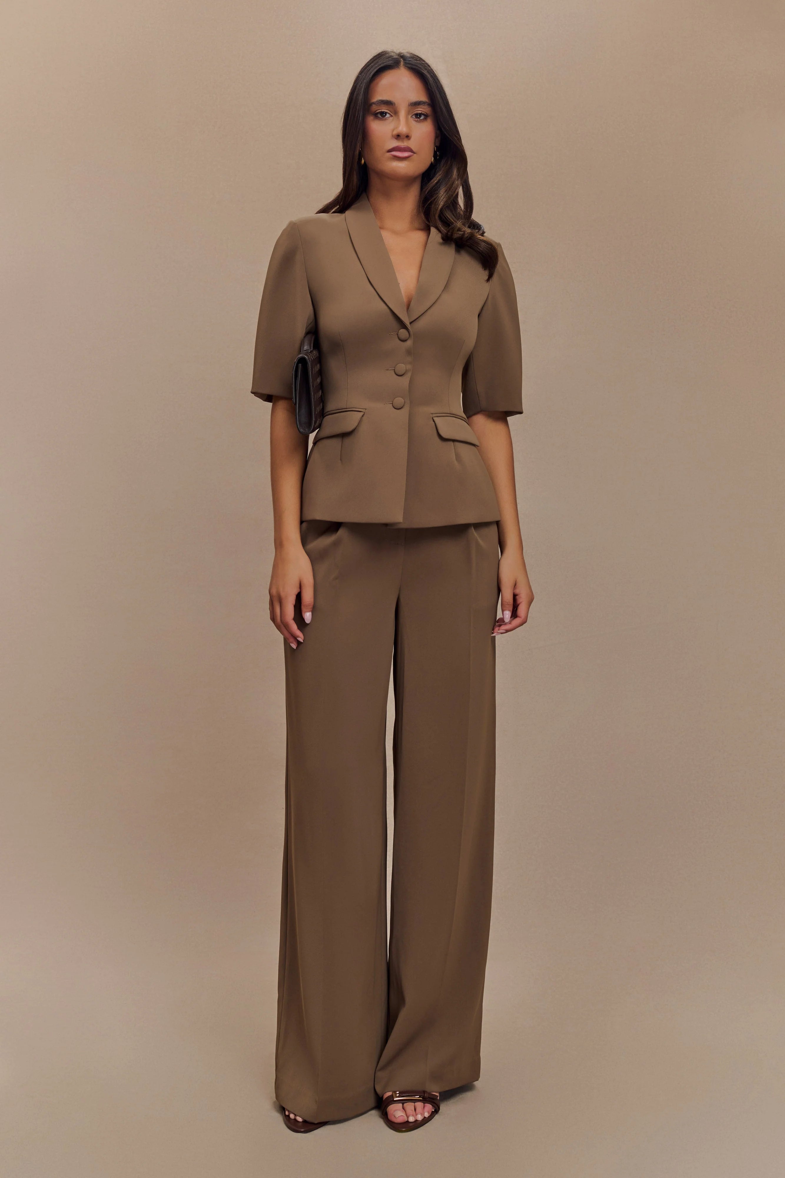 The OPAL Puff Sleeve Suiting Top is a blend of structured sophistication and feminine flair. With a collared neckline and center-front button closure, this top features front pockets and a cinched waist that creates a flattering silhouette. The blouson ¾ sleeves add a touch of drama, perfectly balancing the tailored fit. Fully lined for comfort, it pairs beautifully with the for a chic, coordinated look that’s ideal for any occasion where style is key.
