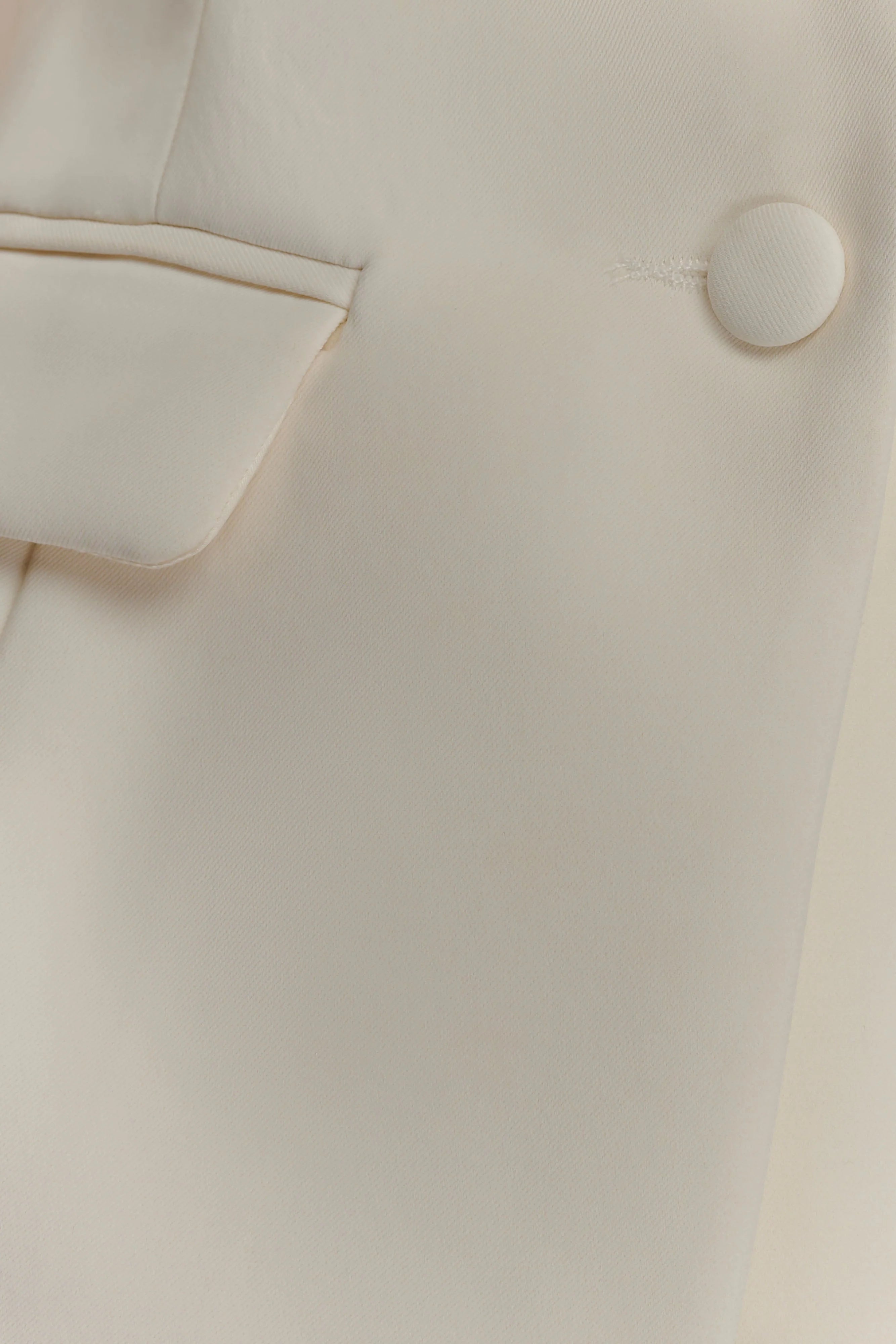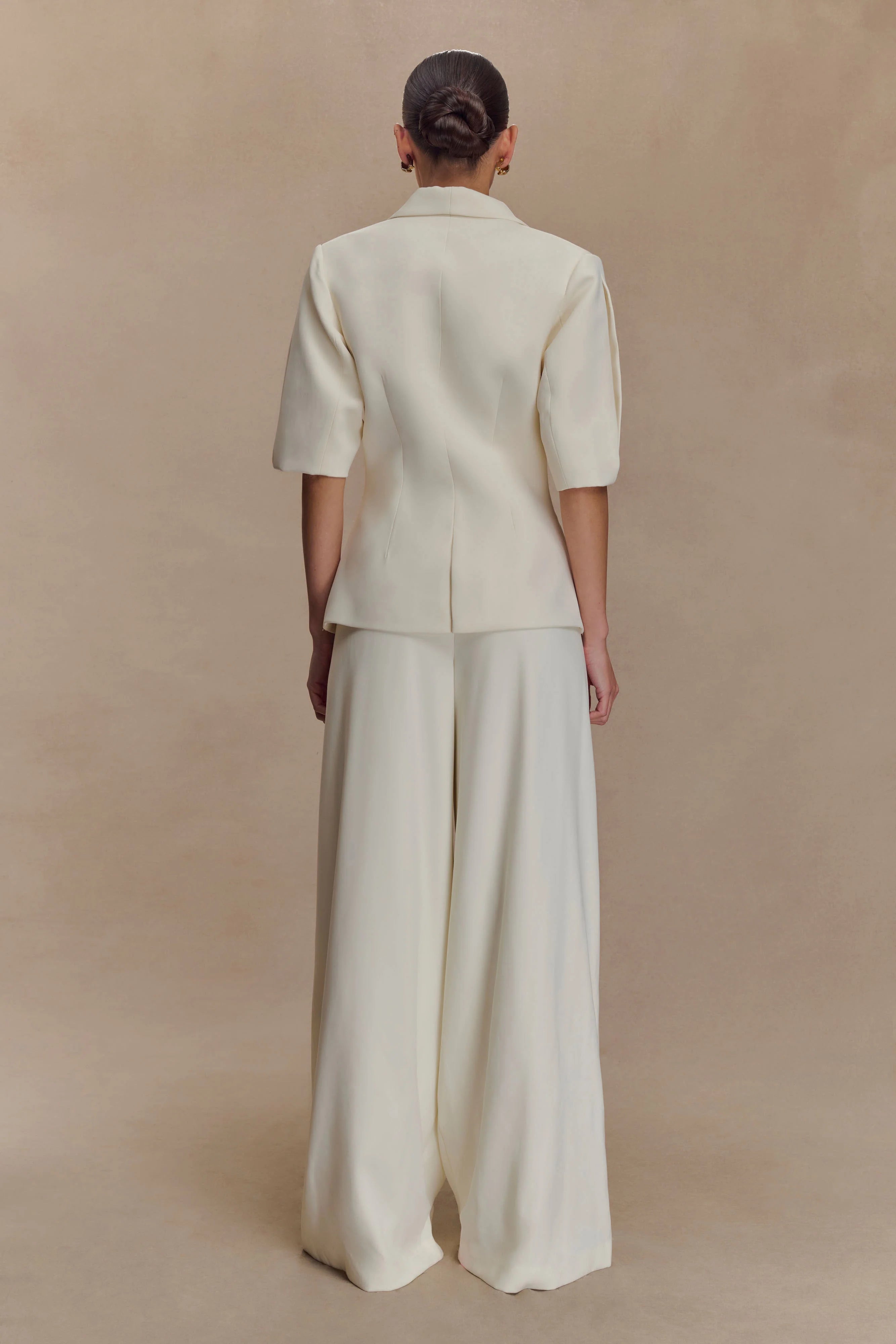 The OPAL Puff Sleeve Suiting Top is a blend of structured sophistication and feminine flair. With a collared neckline and centre-front button closure, this top features front pockets and a cinched waist that creates a flattering silhouette. The blouson ¾ sleeves add a touch of drama, perfectly balancing the tailored fit. Fully lined for comfort, it pairs beautifully with any tailored skirt or pants for a chic, coordinated look that’s ideal for any occasion where style is key.