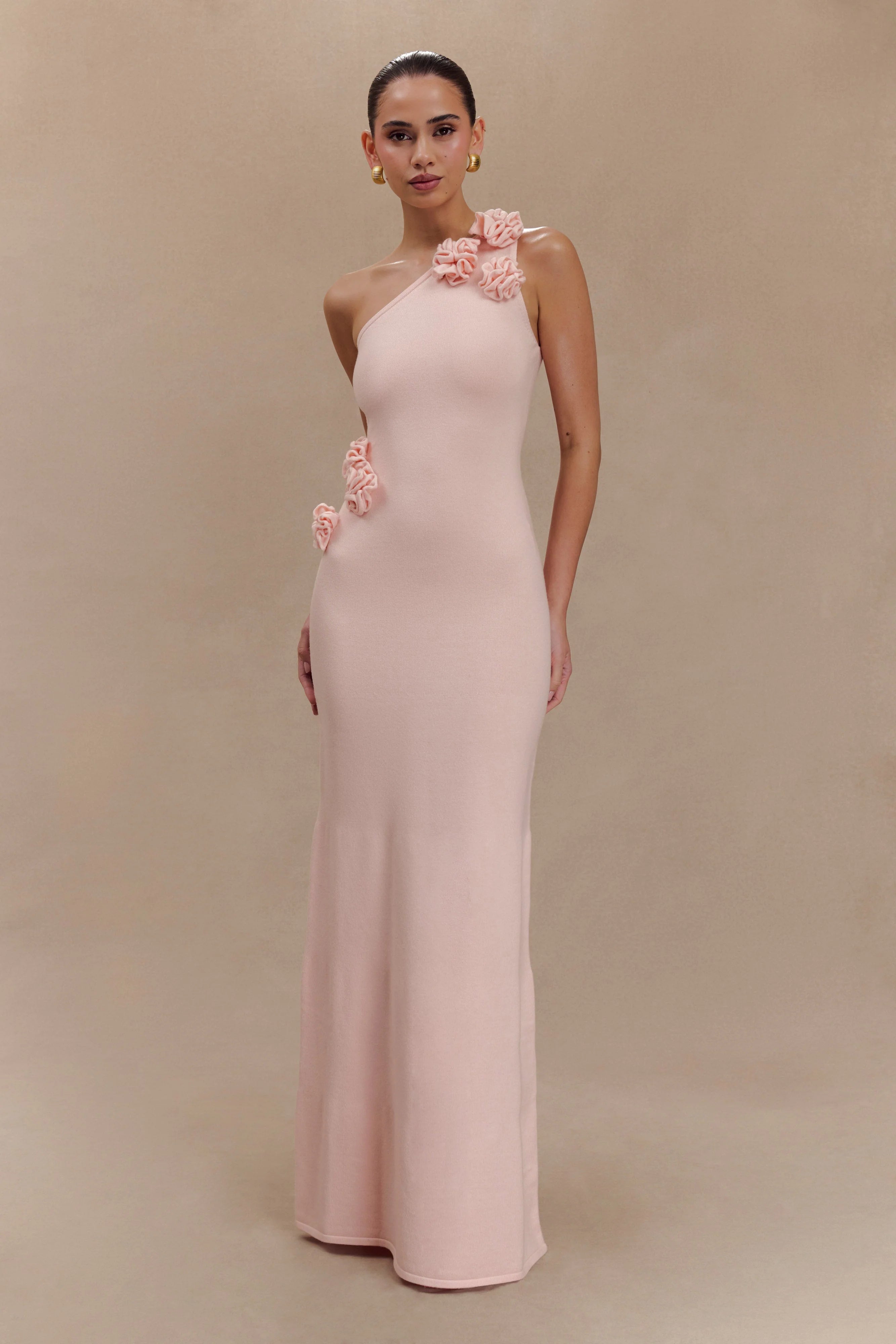 Make a statement in the PALOMA One Shoulder Knit Maxi Dress with Flowers, where elegance meets modern design. This stunning piece features an asymmetrical neckline that beautifully highlights the shoulder while offering a distinctive silhouette. Delicate flower details at the shoulder and hip add a feminine touch, ensuring you turn heads at any event. The flowing maxi length and flattering fishtail hem create graceful movement, enhancing your natural curves. Crafted from soft, unlined knit fabrication, this dress promises both comfort and style, making it an essential addition to your wardrobe.