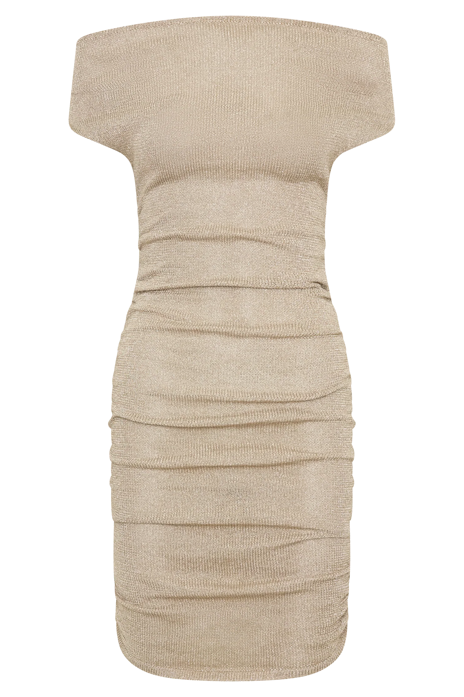 The PASHA Off Shoulder Knit Mini Dress is the perfect blend of sophistication and playful allure. Featuring an asymmetrical neckline and flattering off-shoulder design, this mini dress is crafted from a luxurious lurex knit fabrication that adds a touch of shimmer to your look. The ruched side seams sculpt and enhance your figure, while the mini length showcases your legs for a bold statement. Unlined for a sleek and breathable fit, this dress is ideal for evenings out, cocktail events, or any occasion where you want to stand out with effortless charm.