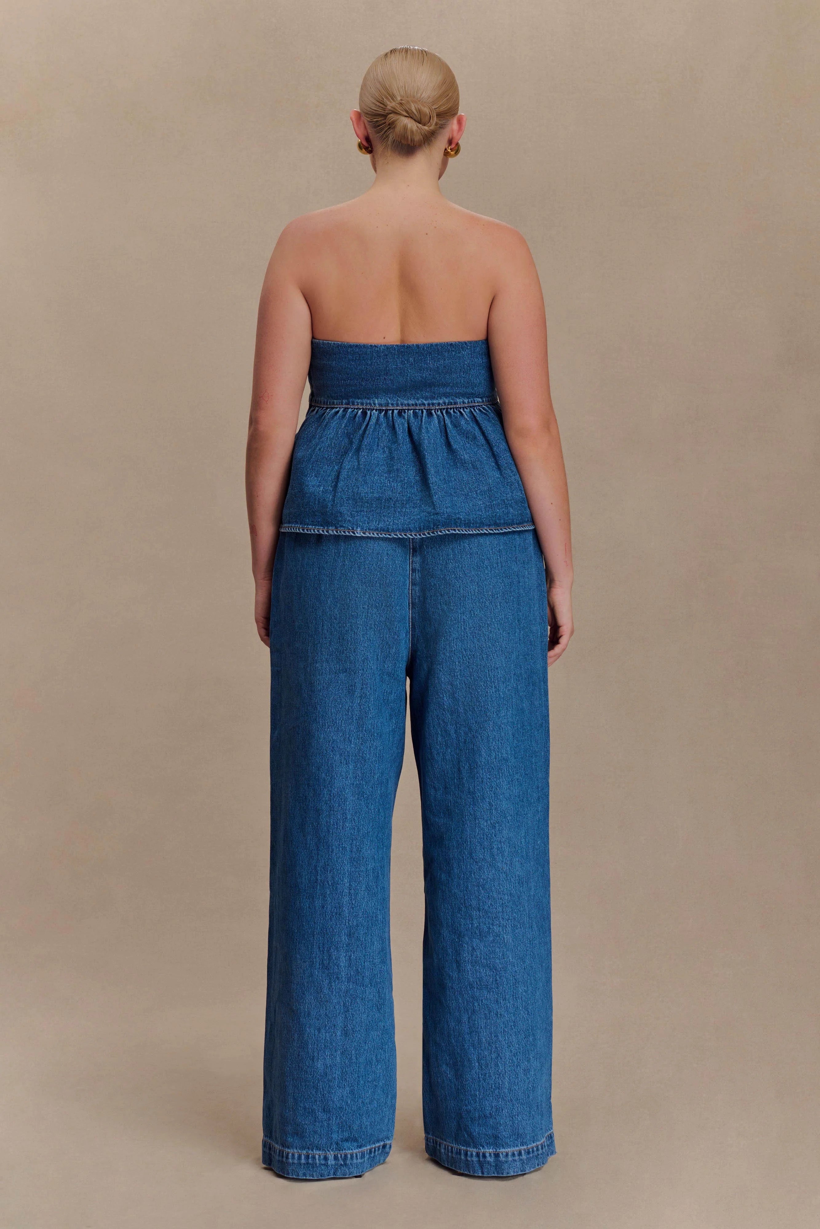 Make a statement with the PAULINE Strapless Denim Top, a modern twist on classic denim. Featuring a structured bust panel for a flattering fit and a gathered peplum detail that adds a touch of femininity, this top is both bold and stylish. The strapless design creates a sleek silhouette, while the centre-back zip ensures a seamless finish. Pair it effortlessly with the for a coordinated look that exudes confidence and contemporary charm, perfect for daytime outings or casual evenings.