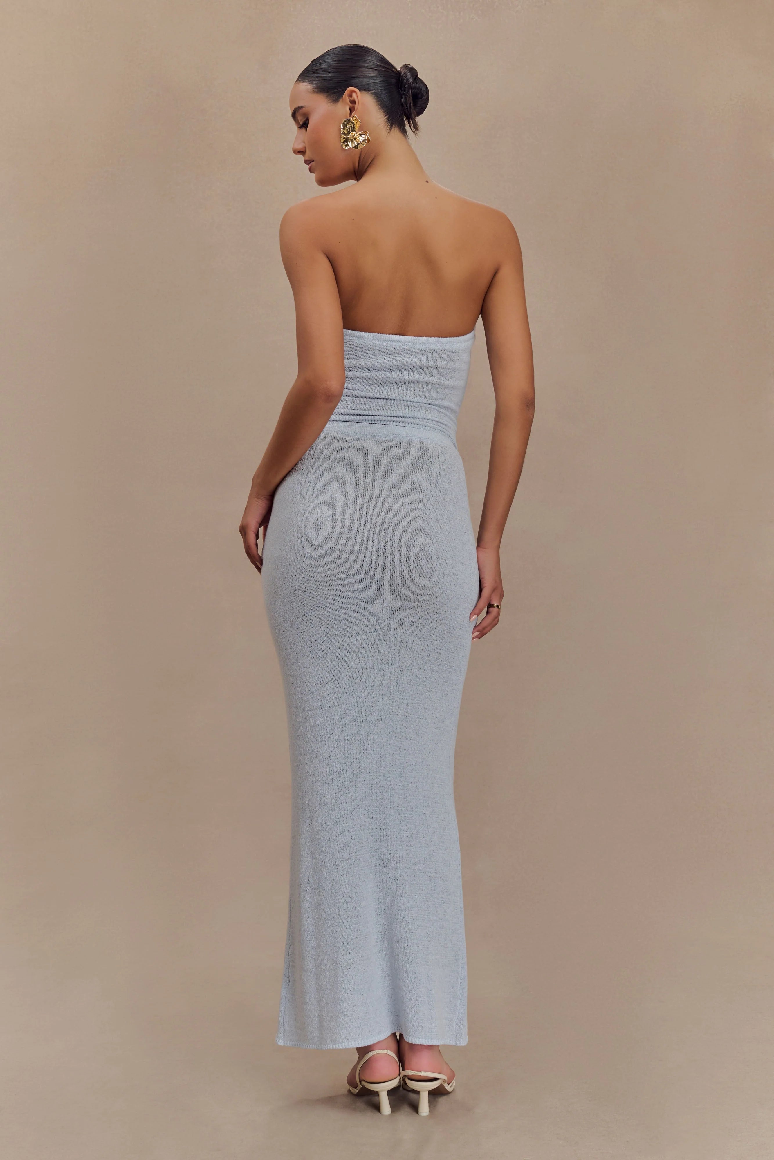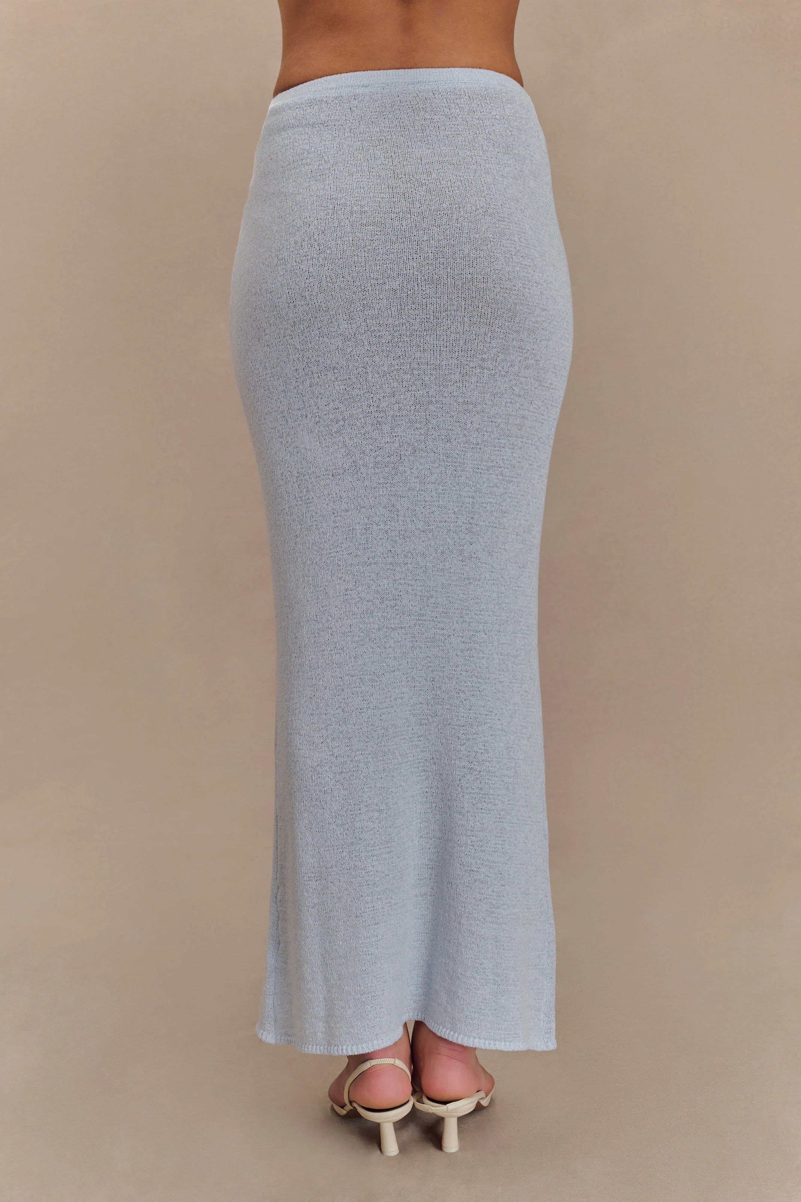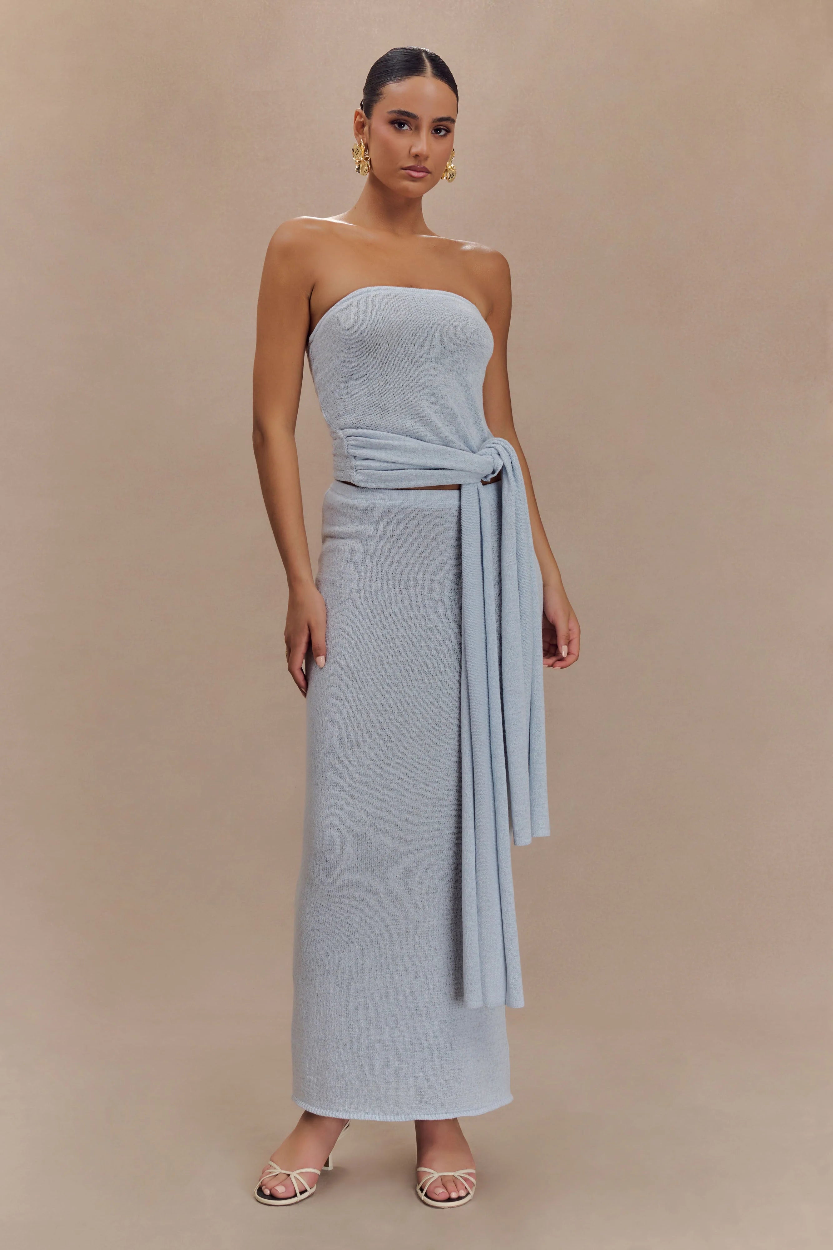 Elevate your style with the PHOEBE Strapless Tie Maxi Skirt, a perfect blend of elegance and comfort. This high-waisted skirt features an elastic waist for a secure fit, allowing you to move with ease. The fishtail hem shape adds a dramatic flair, creating a graceful silhouette that sways beautifully as you walk. Crafted from sheer knit fabrication, it offers a delicate, ethereal look that beautifully showcases your footwear. The mesh lining ensures added comfort and coverage, making it ideal for any occasion. Pair it effortlessly with the for a chic, polished look.