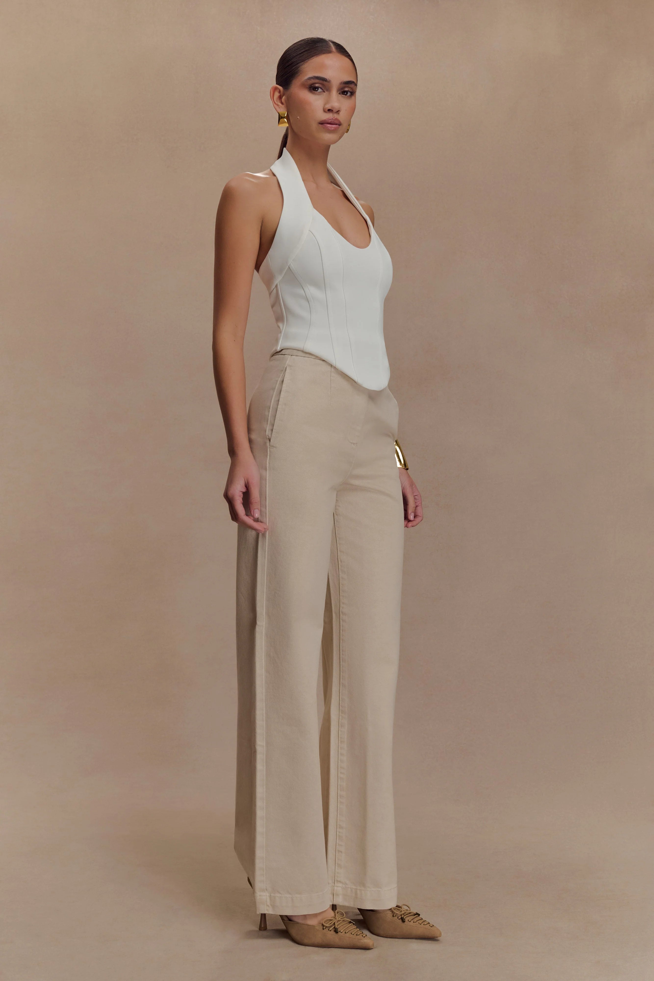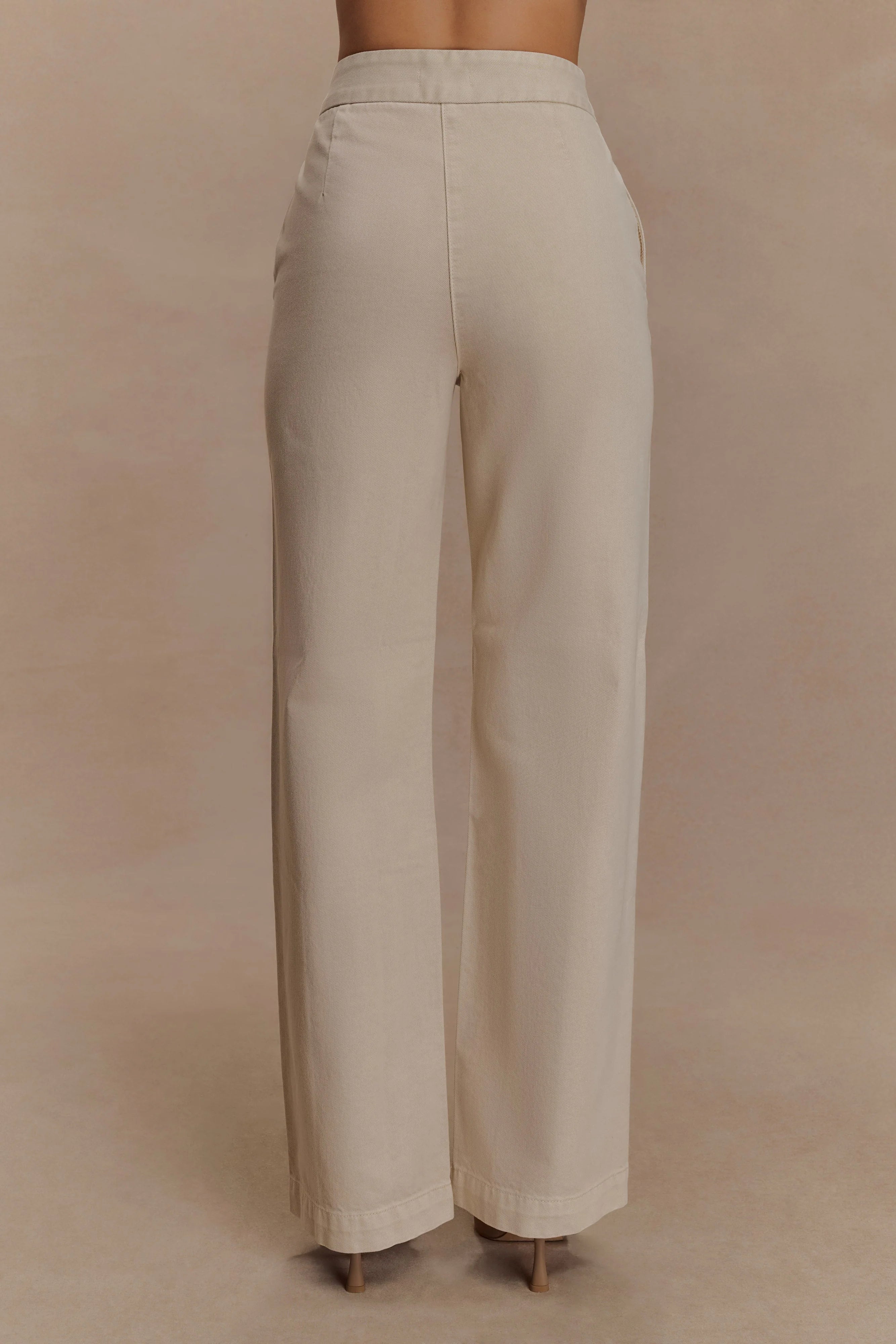 Redefine your denim collection with the RAYNE Wide Leg Denim Jeans, a sleek combination of comfort and sophistication. These high-waisted jeans feature a timeless wide-leg silhouette that elongates the legs and exudes effortless style. Designed with a classic button front closure and subtle stitching details, they offer a clean and polished look.