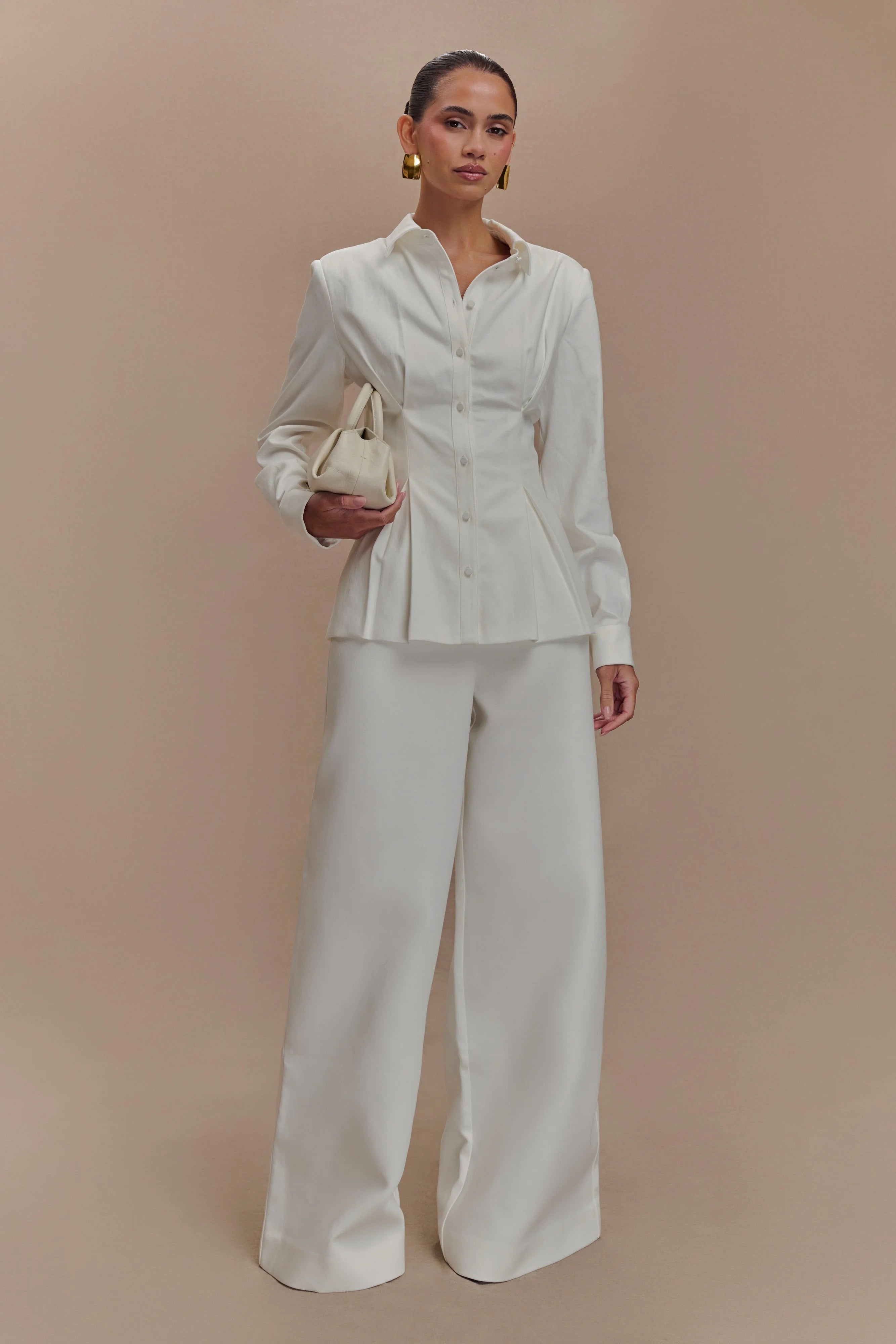 The RHIA Oversized Shirt offers a perfect blend of structure and relaxed elegance. Featuring a classic collared neckline and a button front closure, this shirt brings timeless style with a modern twist. The cinched waist creates a flattering silhouette, balancing the oversized fit for a refined yet comfortable look. Designed with long sleeves and cuffed wrists, it’s ideal for layering or wearing on its own. Pair it with the for a sleek and polished ensemble that transitions effortlessly from casual days to elevated evenings.