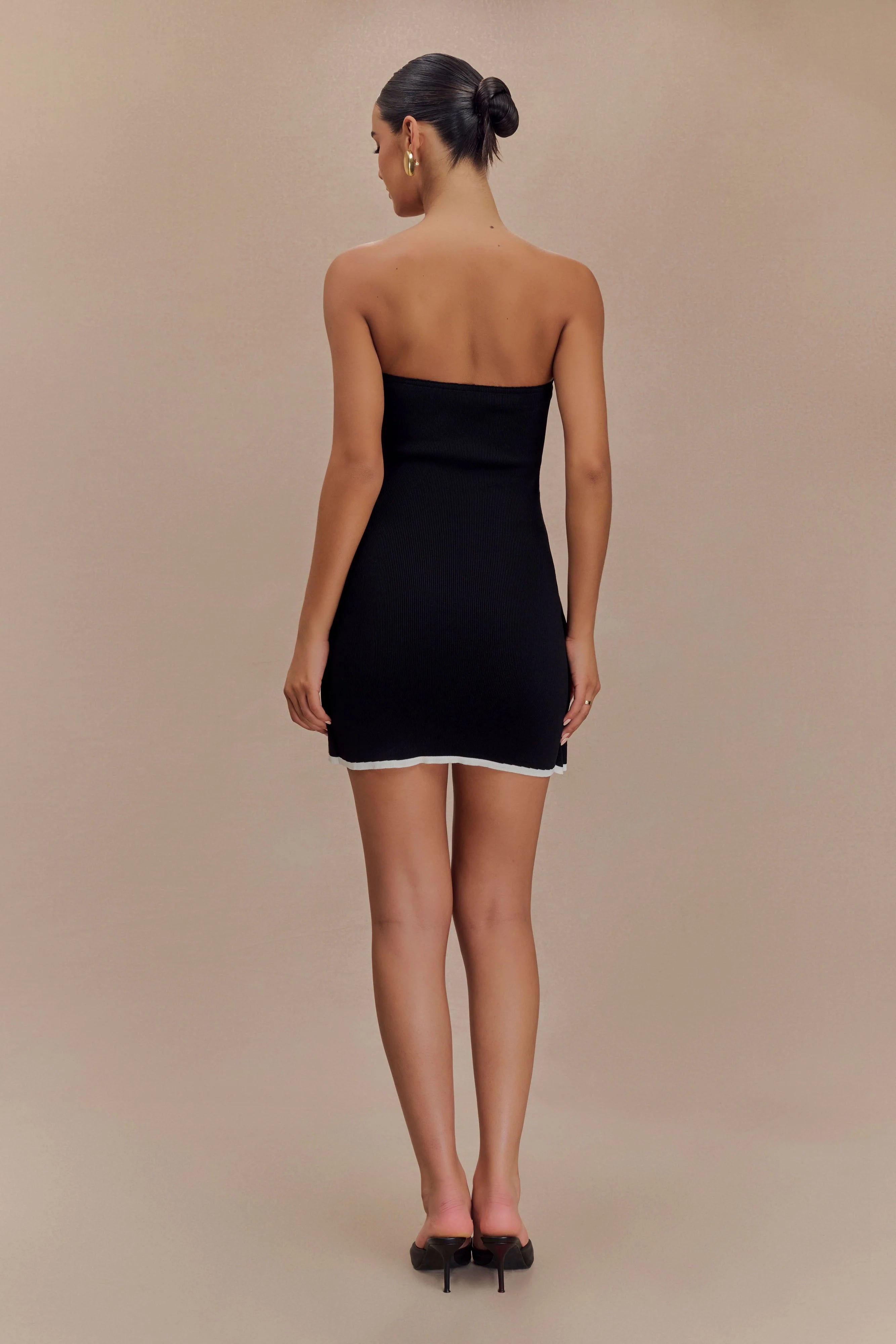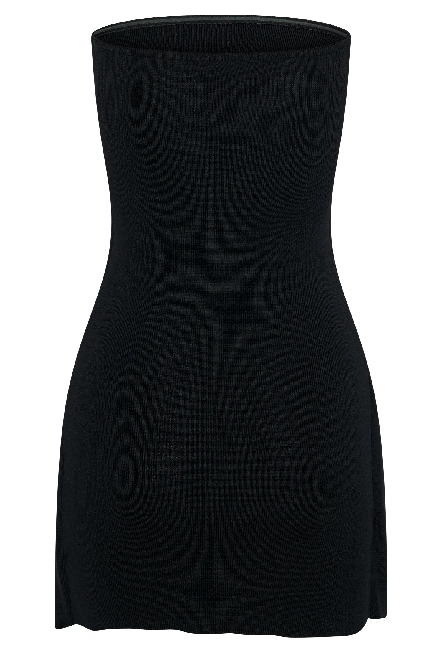 The RIAN Strapless Knit Mini Dress is a bold and stylish choice that captures a youthful and energetic vibe, perfect for evenings out or casual summer days. This strapless design showcases a clean and simple neckline that emphasises the shoulders and collarbone, making it a flirty and fashionable statement piece. The dress features contrast lined edges that add a sharp, modern touch to its overall appearance. An asymmetrical overlay provides a unique textural element and visual interest, while the functional hip tie allows for a customisable fit, adding both style and practicality. Crafted in a mini length, this unlined dress is ideal for those who love to showcase their legs and enjoy the freedom of a lightweight, breezy garment. The Rian Dress blends comfort with contemporary fashion, making it a must-have for any trend-setting wardrobe.
