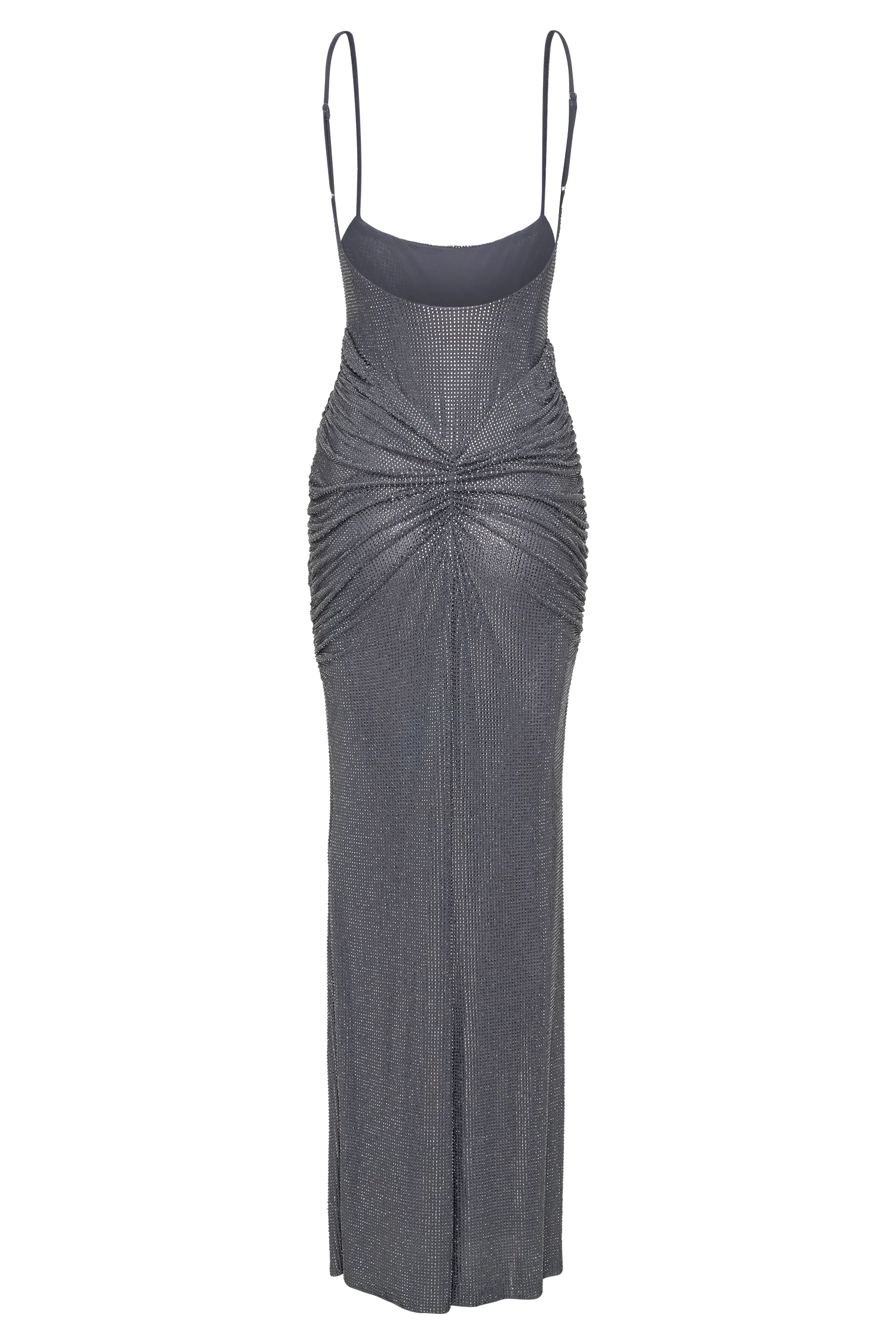 Make an unforgettable entrance with the ROISIN Diamante Satin Maxi Dress, a stunning blend of glamour and elegance. Featuring a sleek straight neckline and a daring low-cut back, this dress exudes sophistication from every angle. Adjustable straps ensure a perfect fit, while the gathered detailing at the front and back hips accentuates your silhouette with a touch of refined drama. Crafted from stretch satin for a flawless and comfortable fit, the dress cascades into a floor-length design adorned with shimmering diamantes for a show-stopping finish.