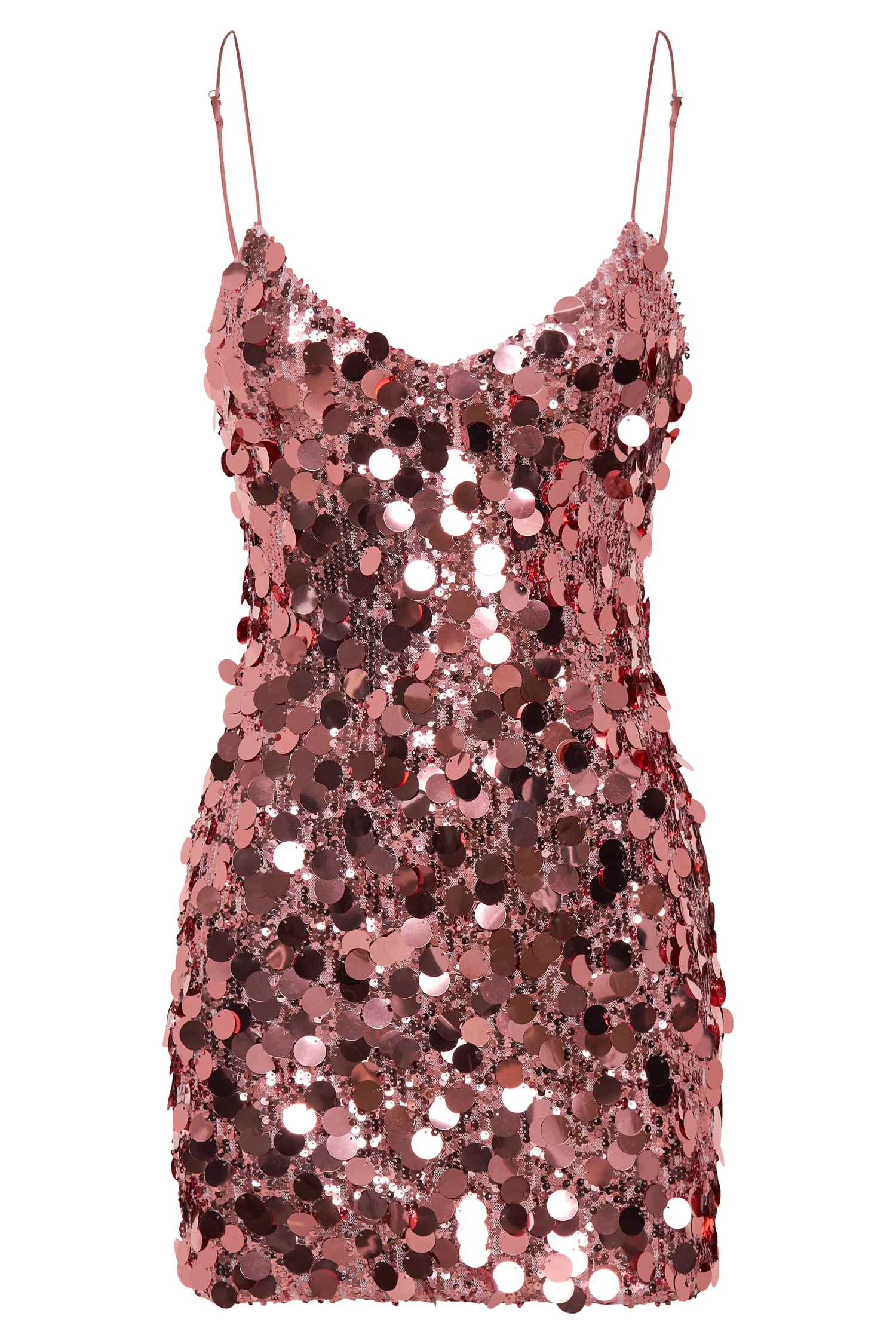 The ROMILY Sequin Mini Dress in Black is a metallic beauty that is sure to turn heads and an instant favourite for night-out. With thin straps and a side invisible zipper, this dress is sure to fit comfortably through the glorious days and nights of your party adventures.
