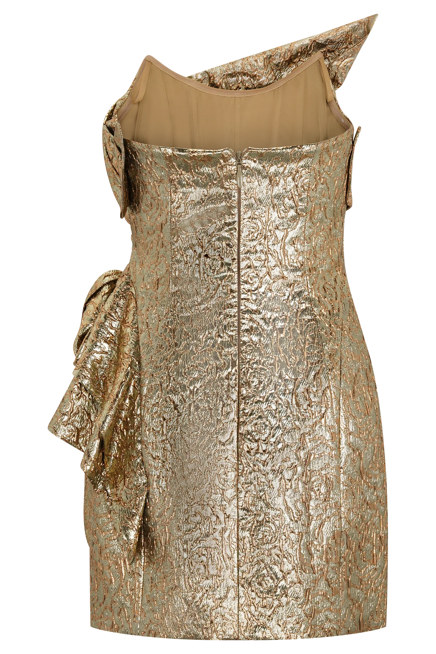 The SADIE Structured Mini Dress is a statement silhouette that balances structure with fluidity. Designed with an asymmetrical strapless neckline, it highlights the décolletage with architectural precision. Draped and twisted detailing across the bust and waistline enhances the feminine form, while the textured fabrication adds depth and dimension. Fully lined for comfort and finished with an invisible centre back zipper, this dress falls to a mini length — the perfect balance of modern edge and timeless sophistication.