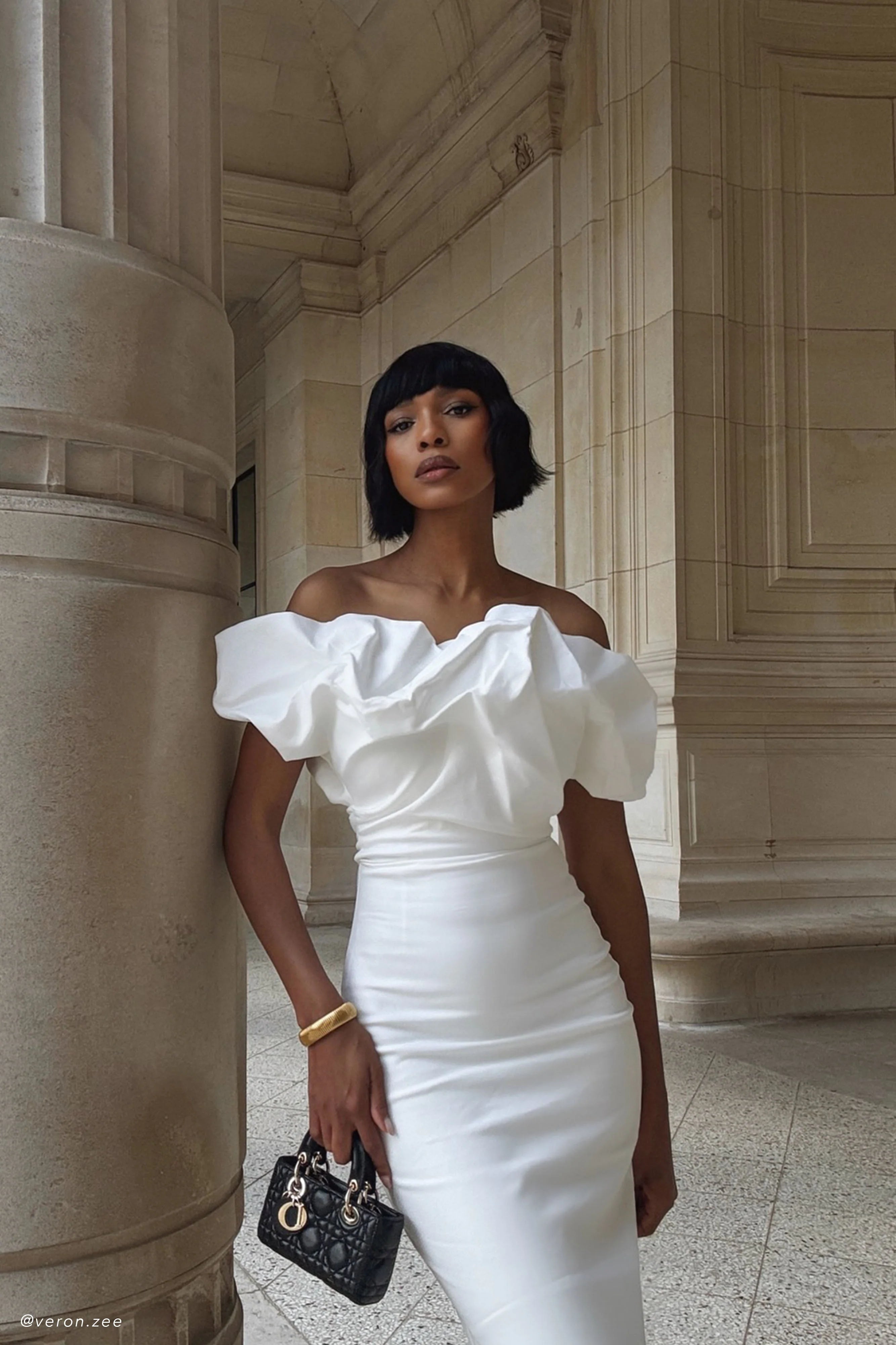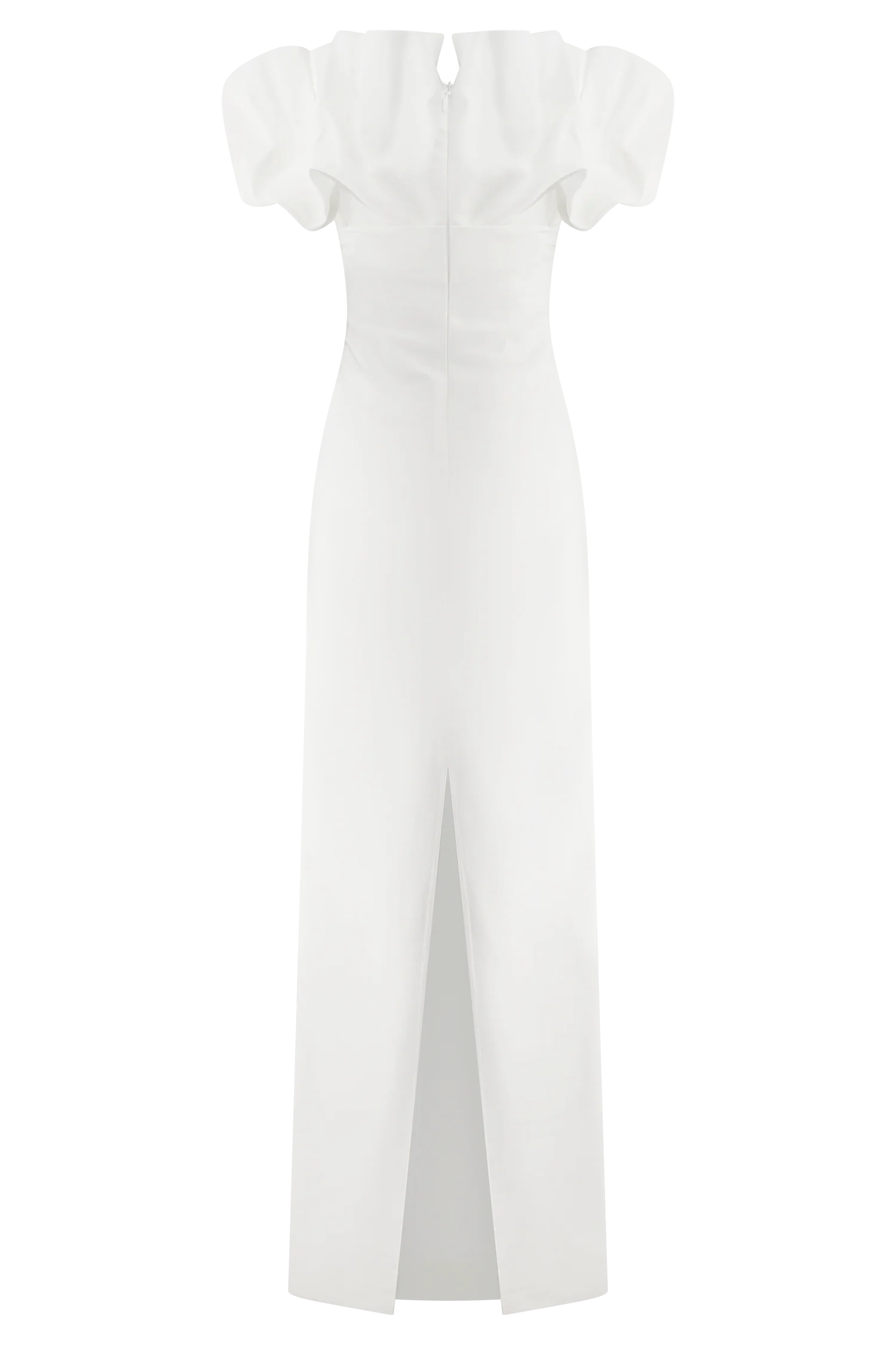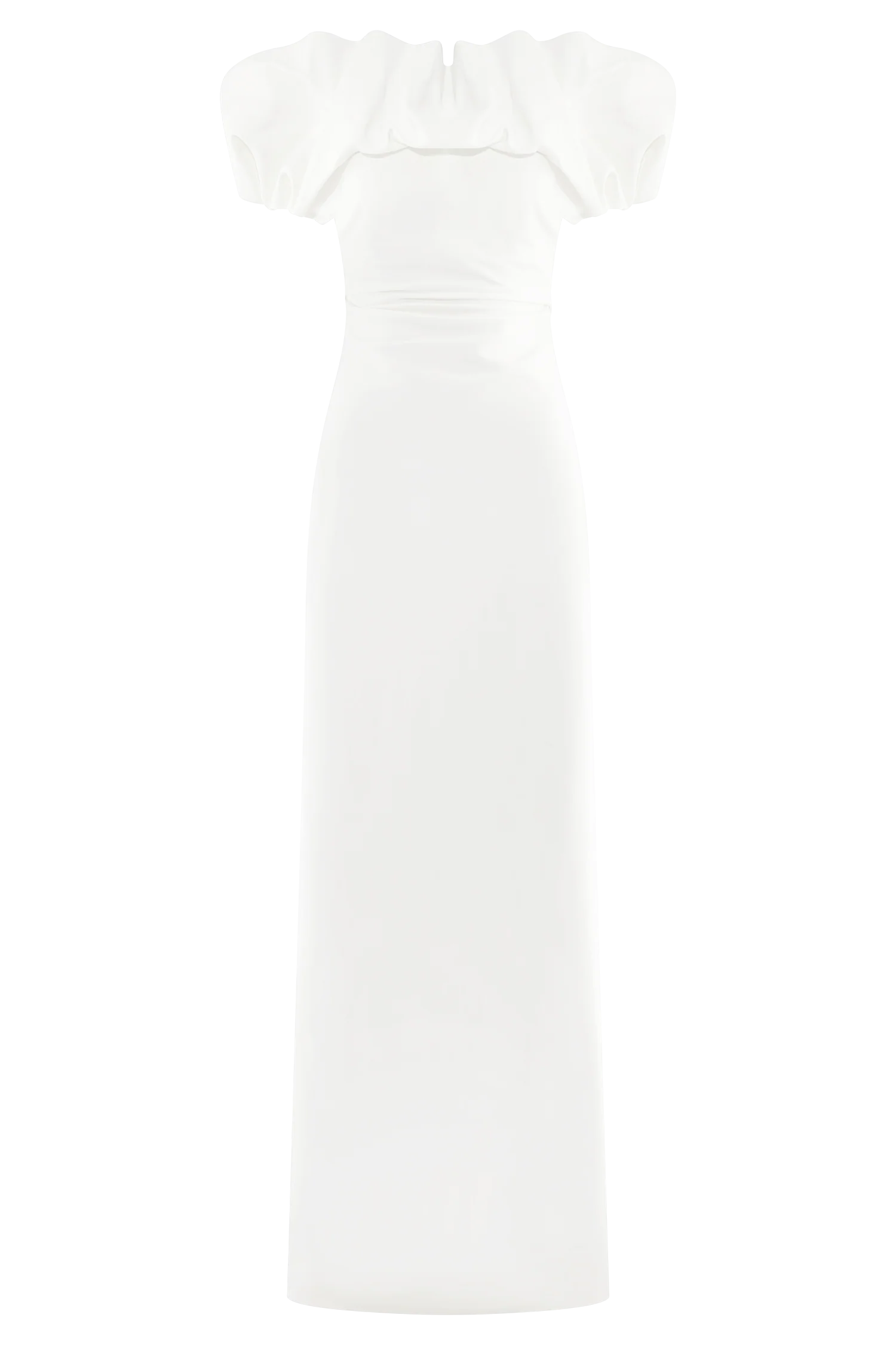 The SARIYA Sculptural Maxi Dress is where modern design meets timeless sophistication. Featuring an off-shoulder neckline and sculpted gather detailing, this dress flatters with a structured bodice and sleek silhouette. A centre back split adds movement, while the invisible zip ensures a seamless fit. Designed for elevated evenings and standout occasions, this dress is a statement in refined drama.