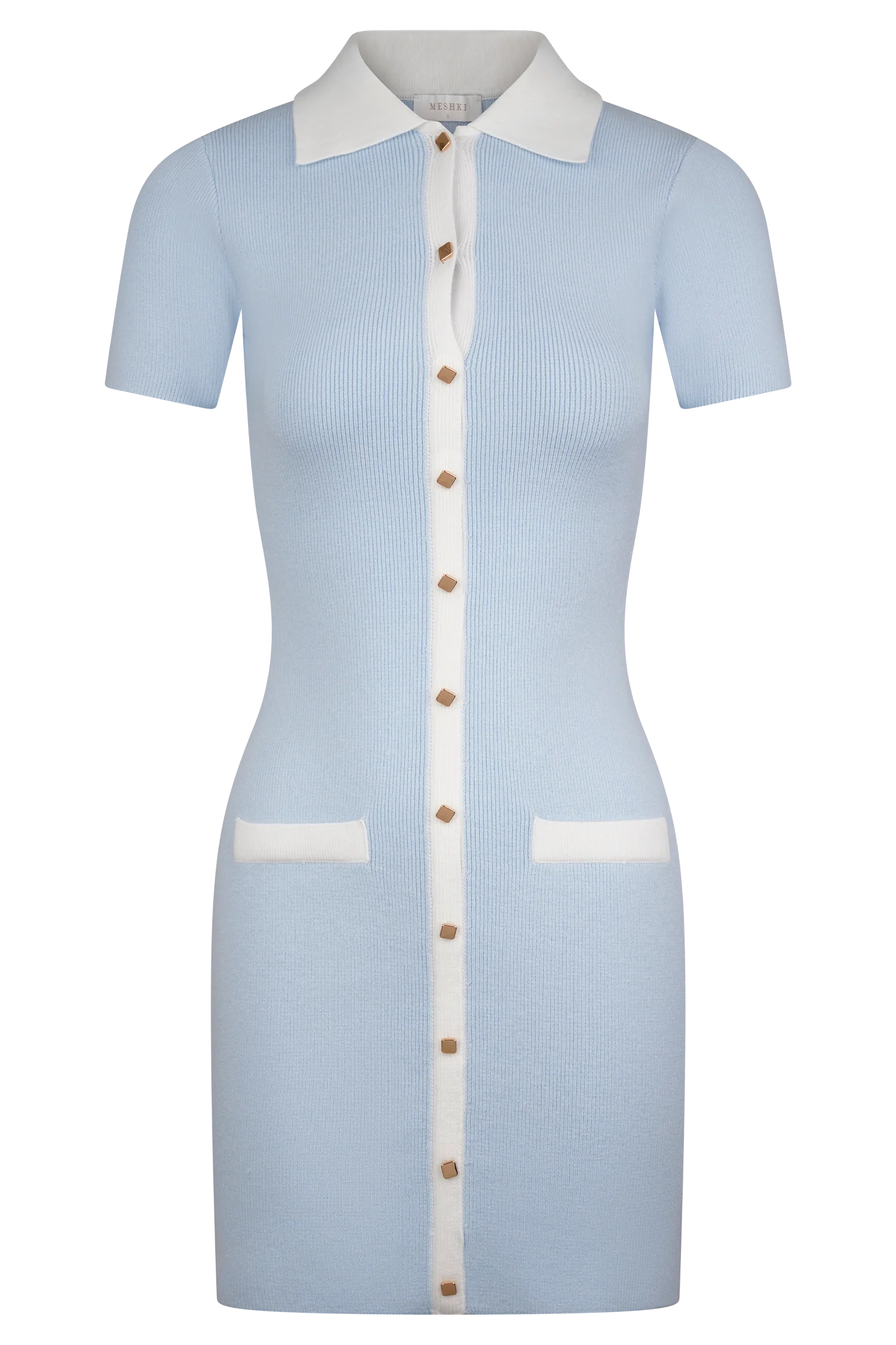 Elevate your style with the SEEMA Contrast Mini Dress, a perfect blend of sophistication and modern charm. Featuring a classic collared neckline and short sleeves, this mini-length design is both polished and playful. The contrast center-front placket, collar, and pockets add striking definition, while gold non-functional buttons lend a touch of elegance. Crafted from a soft knit fabric, the Seema dress is as comfortable as it is stylish, making it a versatile choice for brunches, meetings, or evening outings.