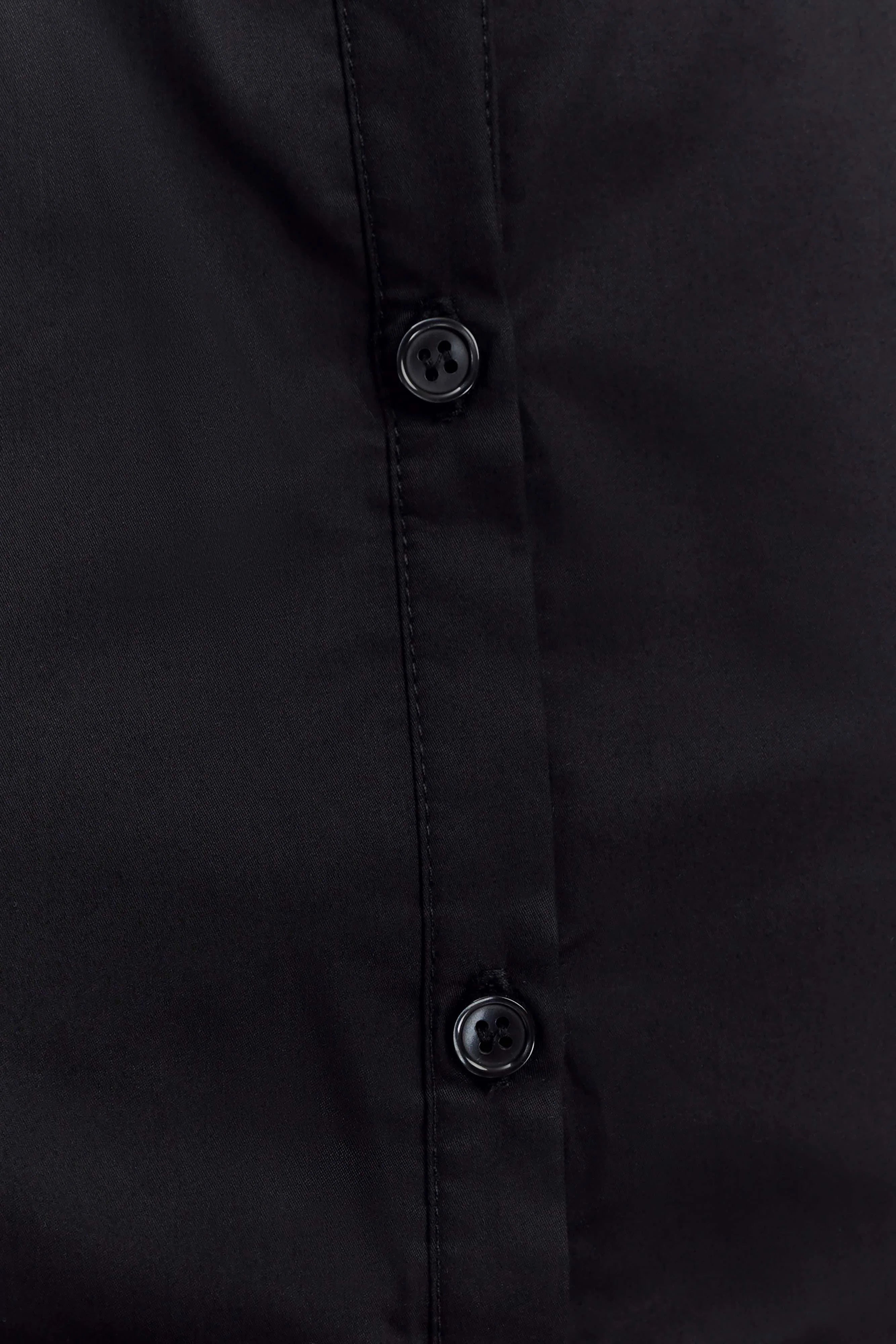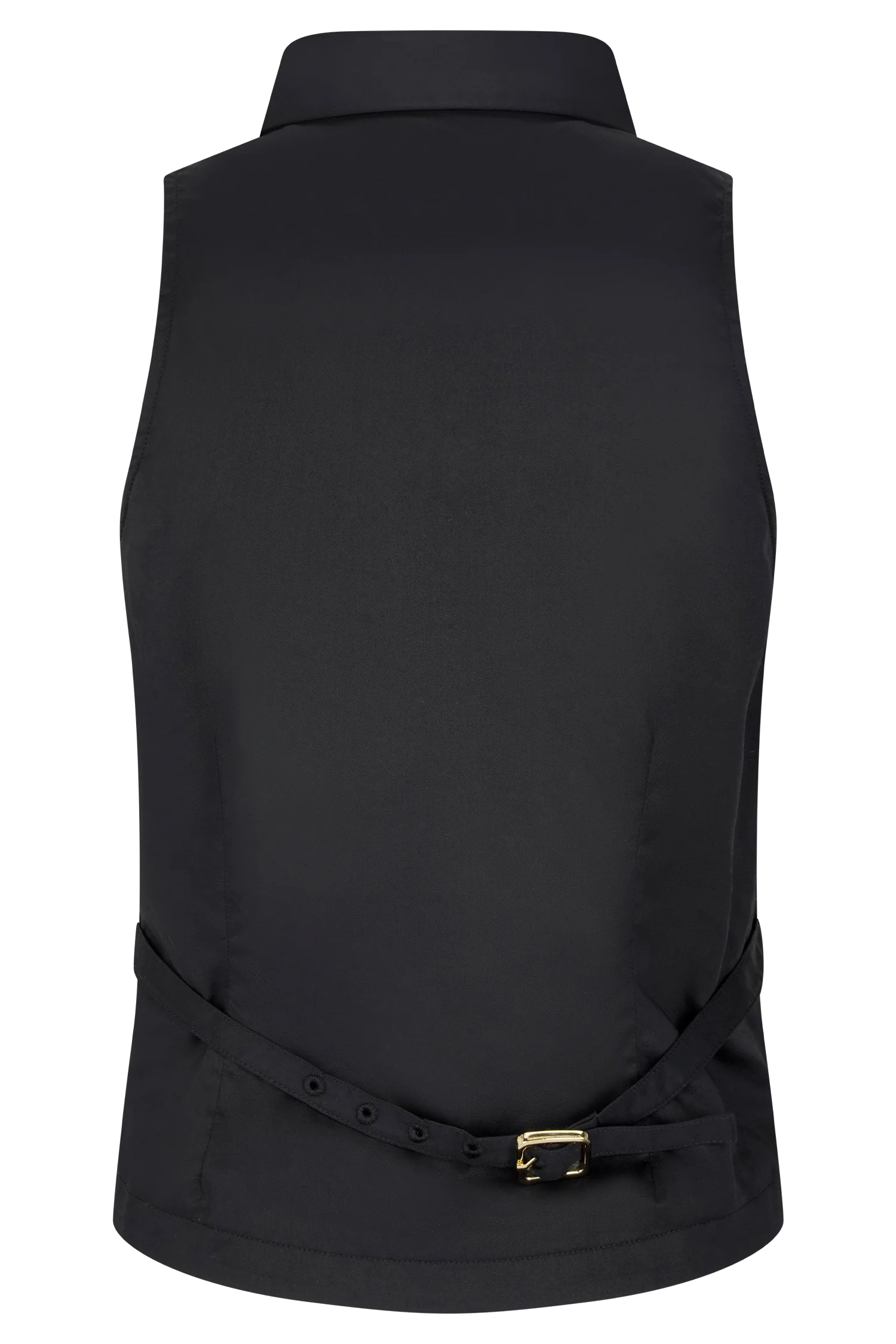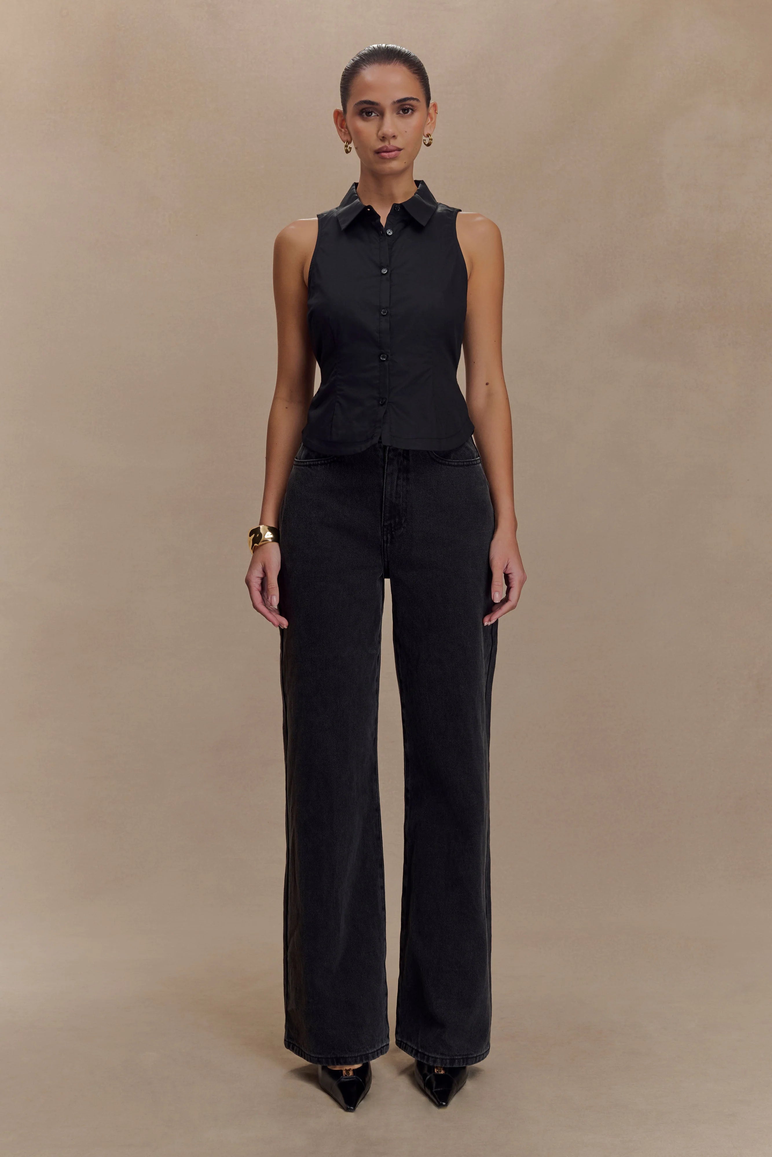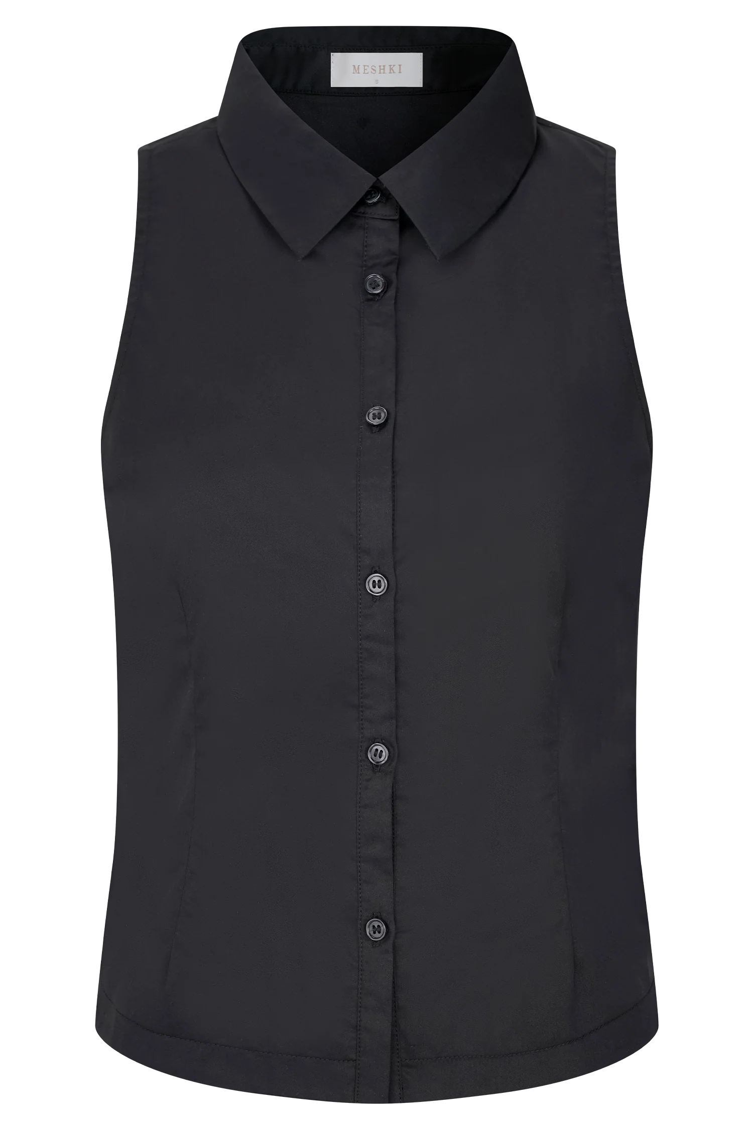 The SELENE Sleeveless Halter Shirt is a fresh update to classic shirting. Designed with a sharp collar and button front opening, this fitted silhouette features a back belt detail that cinches the waist for a flattering, feminine shape. The curved hem adds softness to its structured design, while the unlined finish keeps it lightweight and breathable. Perfect for polished days or elevated layering, this shirt is your go-to for versatile, refined styling.