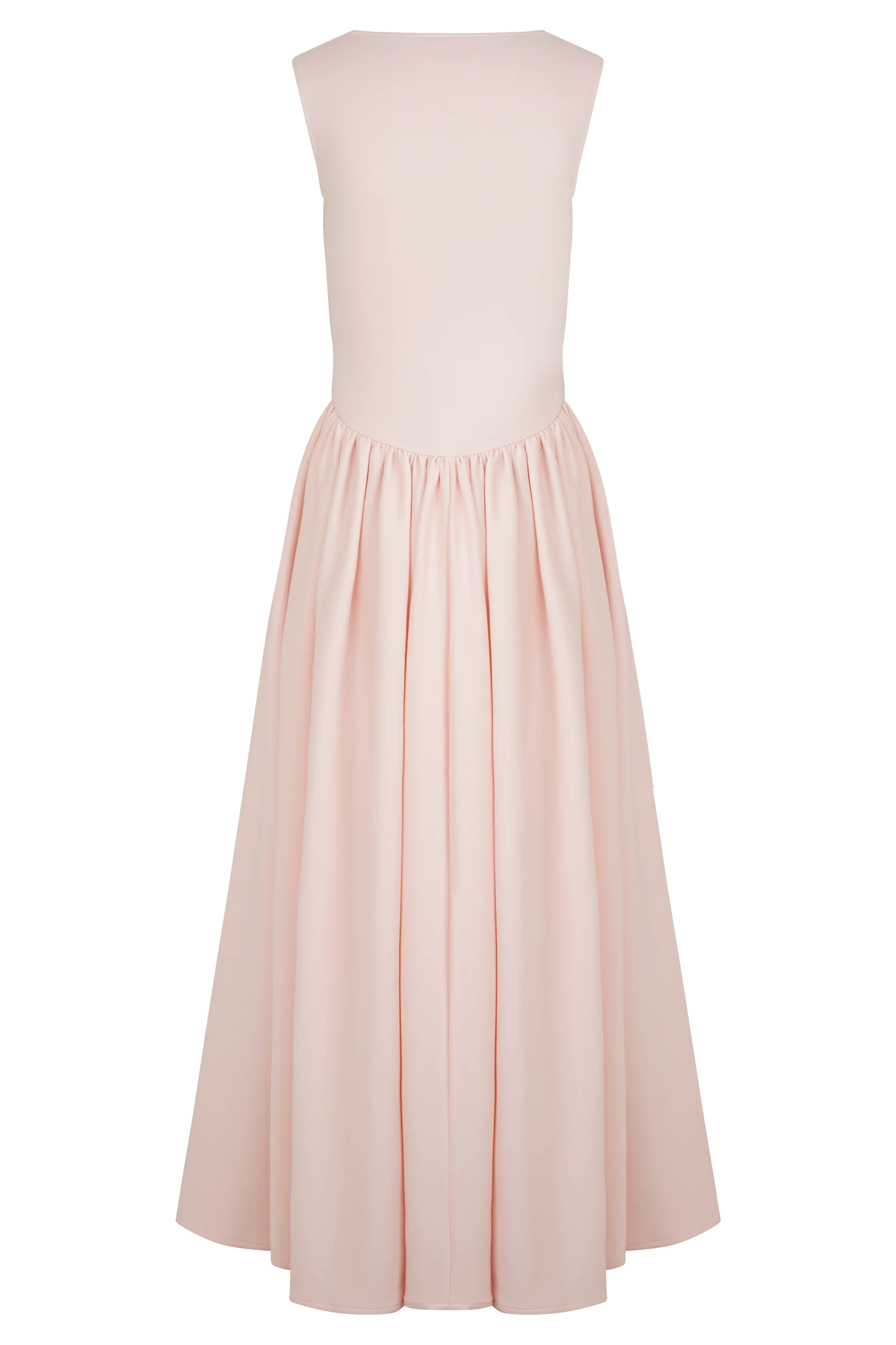 The SHARON Scuba Jersey Midi Dress combines timeless sophistication with flattering design. Featuring a square neckline and sculpted straps, it enhances your shape with gathered hips and contoured waist panels. The rounded back waist adds a soft, feminine touch, flowing into a full skirt with beautiful movement. Made from thick jersey fabric and partially lined for comfort, this midi-length dress is the perfect choice for elegant occasions or polished everyday style.