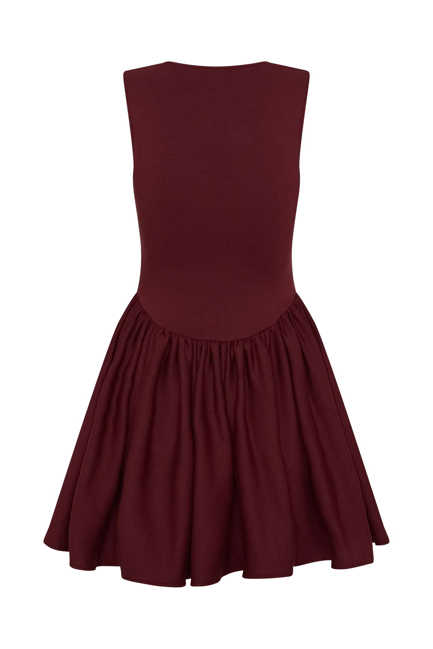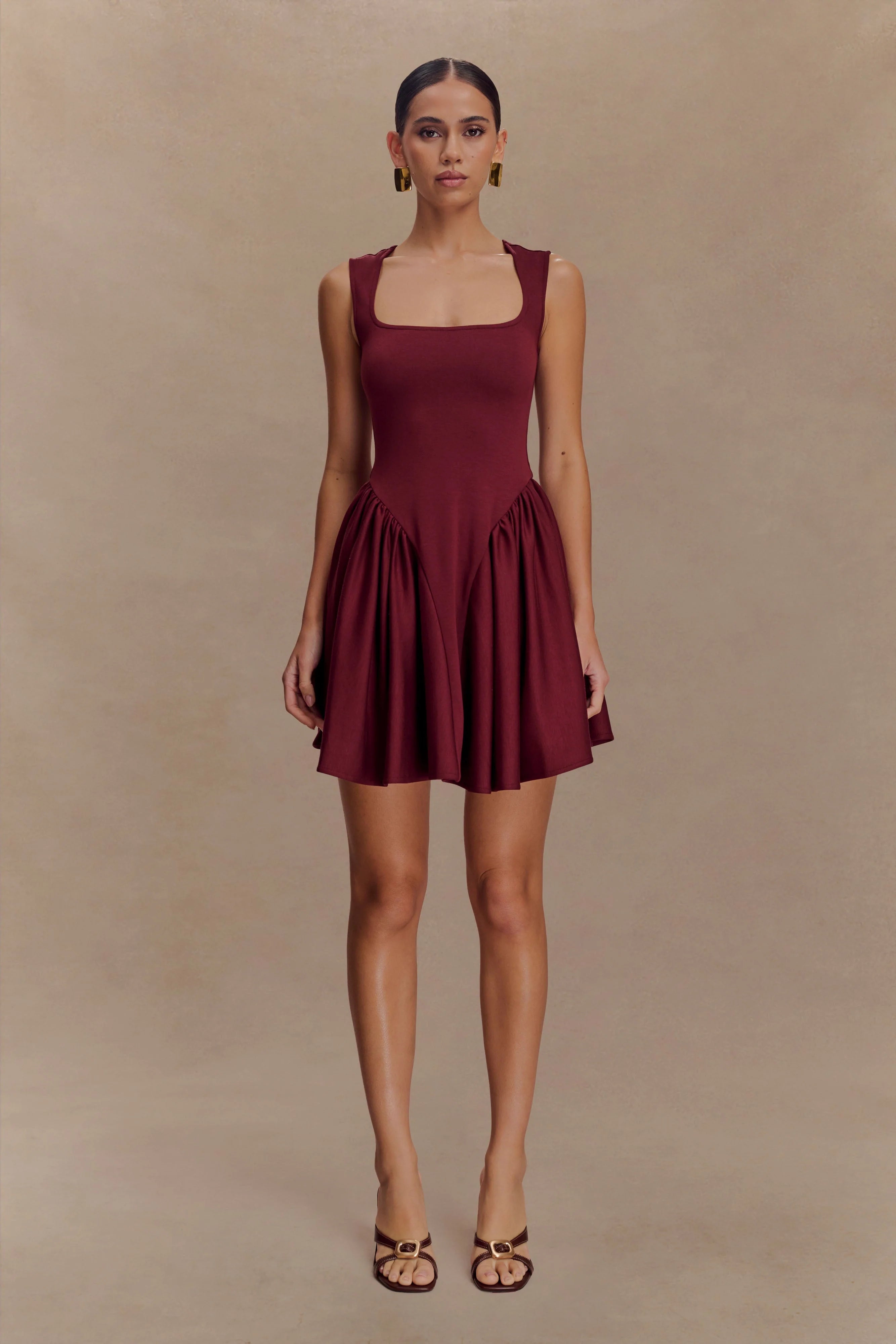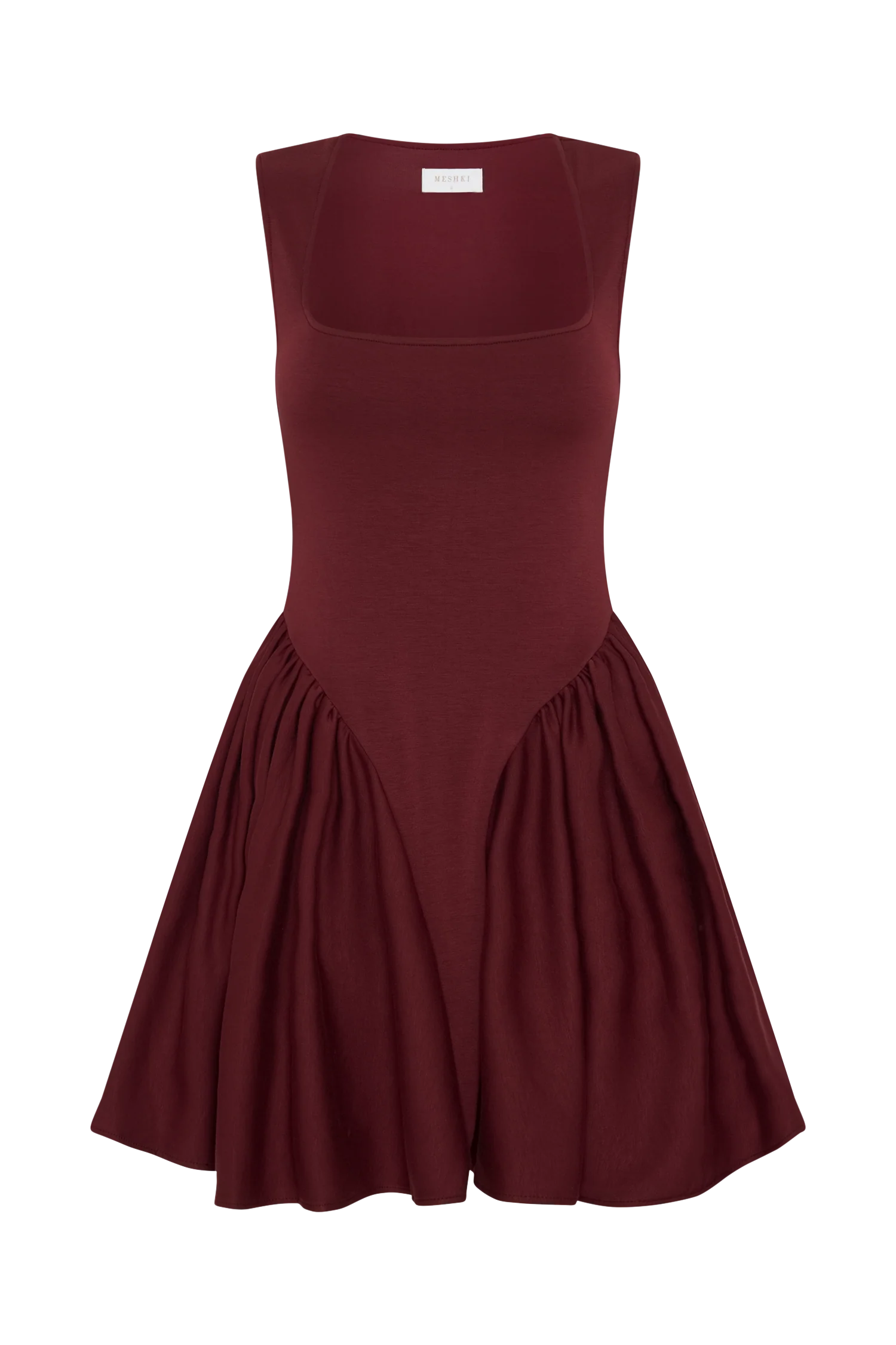 The SHARON Scuba Jersey Mini Dress is a playful, sculpted mini designed to flatter. Featuring a square neckline with shaped straps and gathered hips, this silhouette hugs through the waist with tailored shaping panels and a rounded back seam for added contour. A full skirt brings volume and movement, while the thick scuba jersey fabric offers structure with a smooth, comfortable feel. Partially lined and mini in length, Sharon is your go-to for any moment that calls for soft structure and modern femininity.