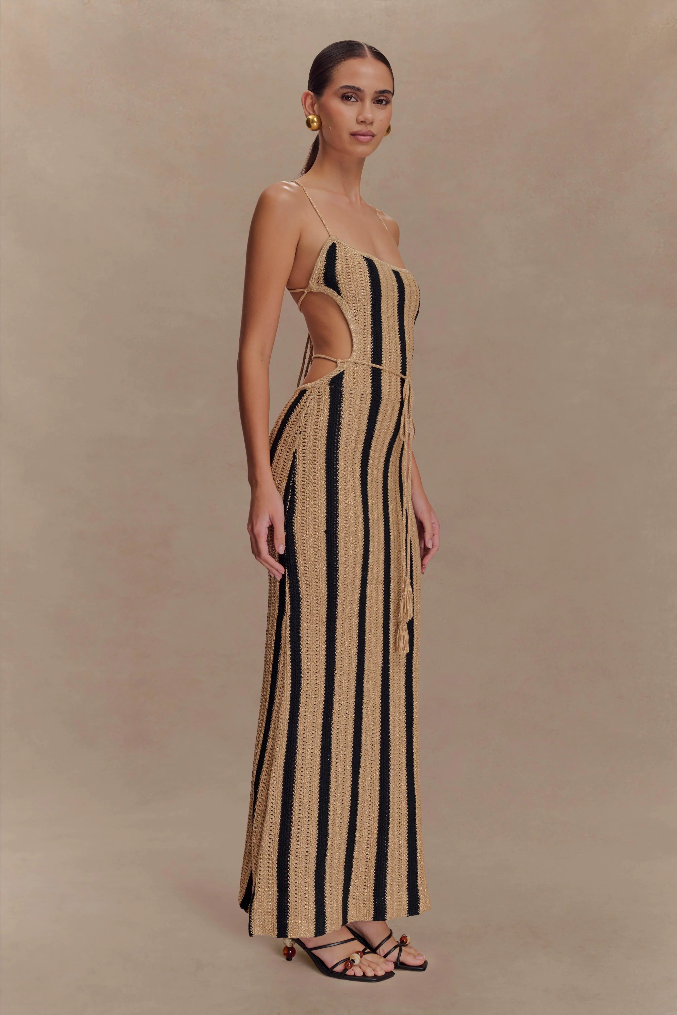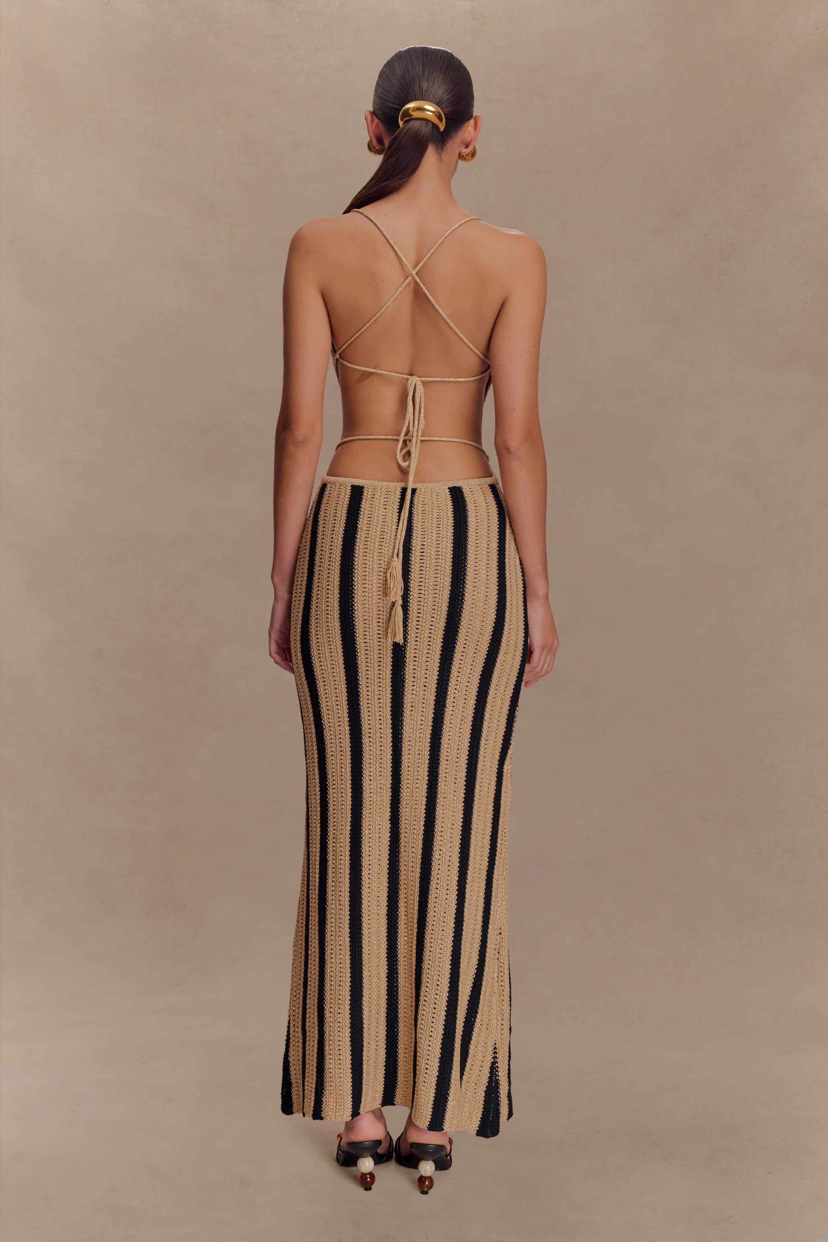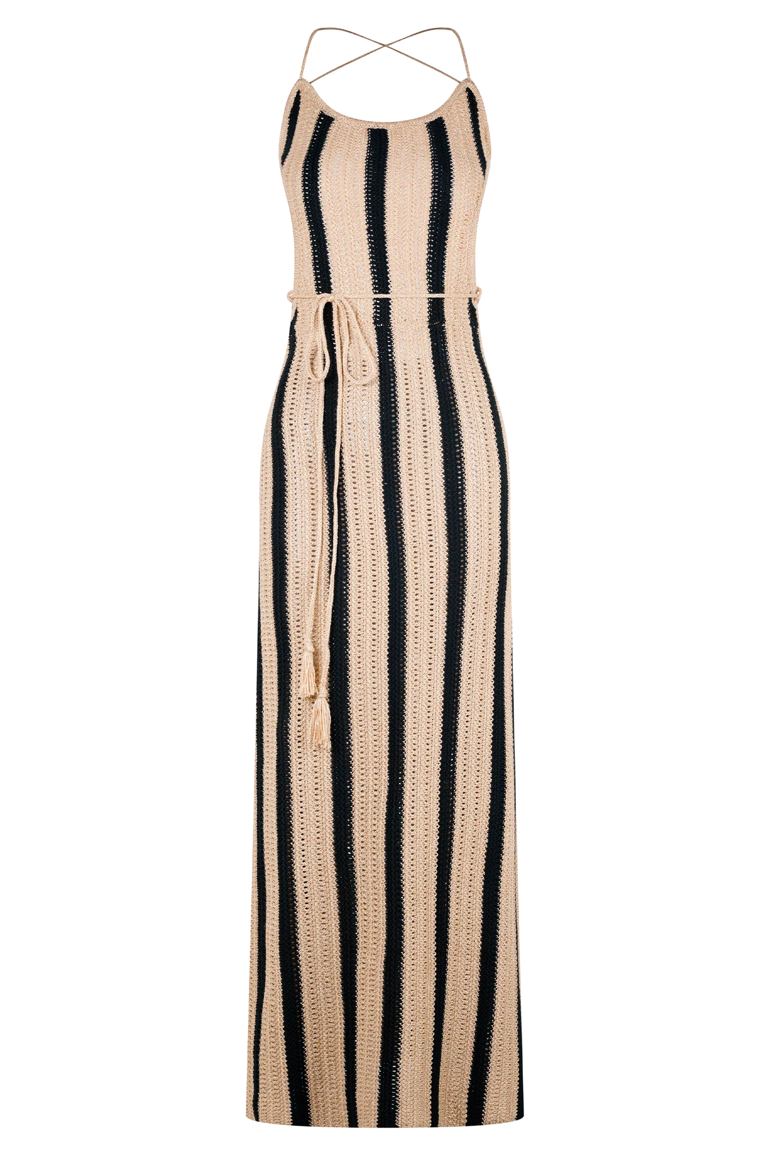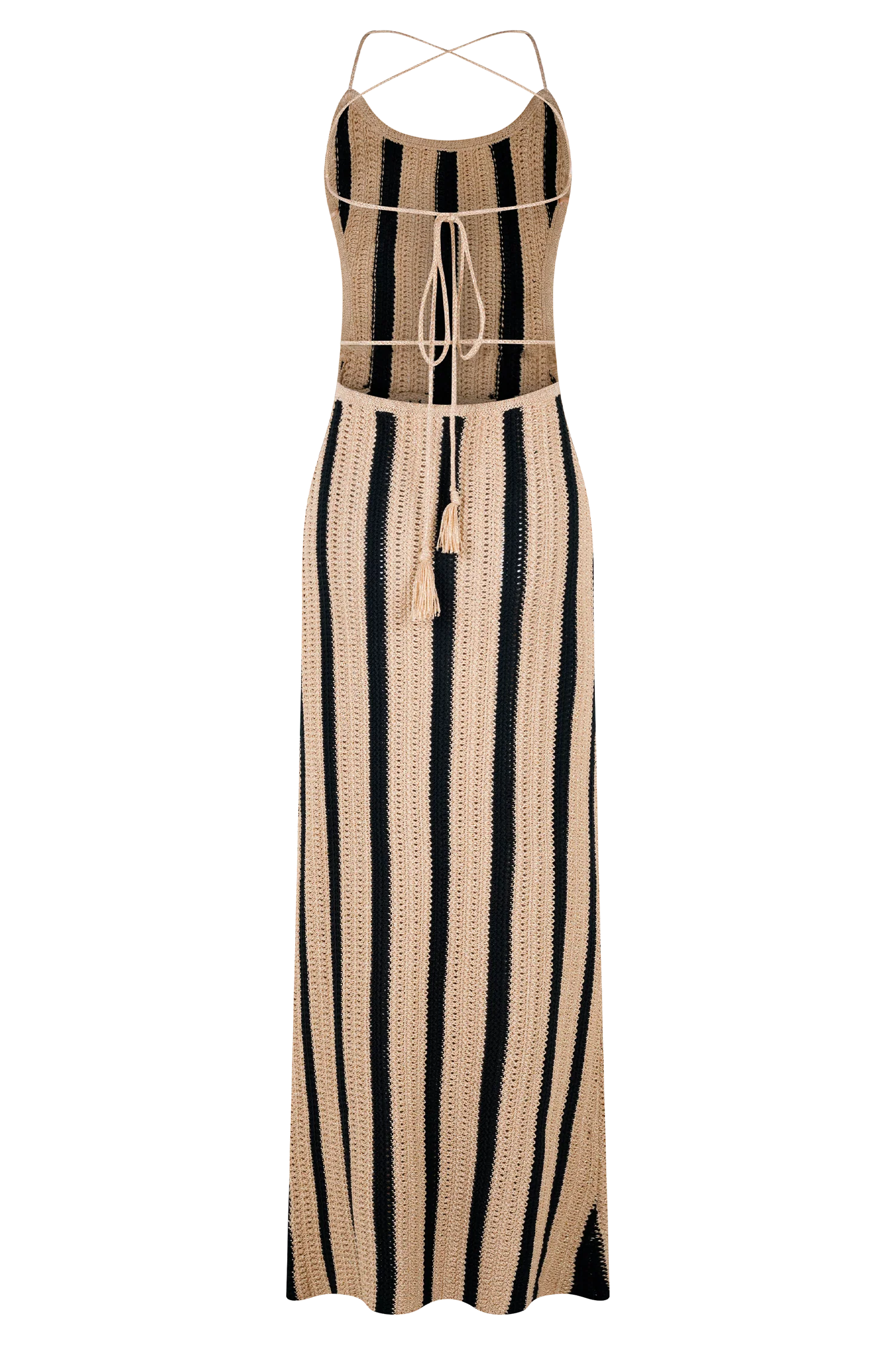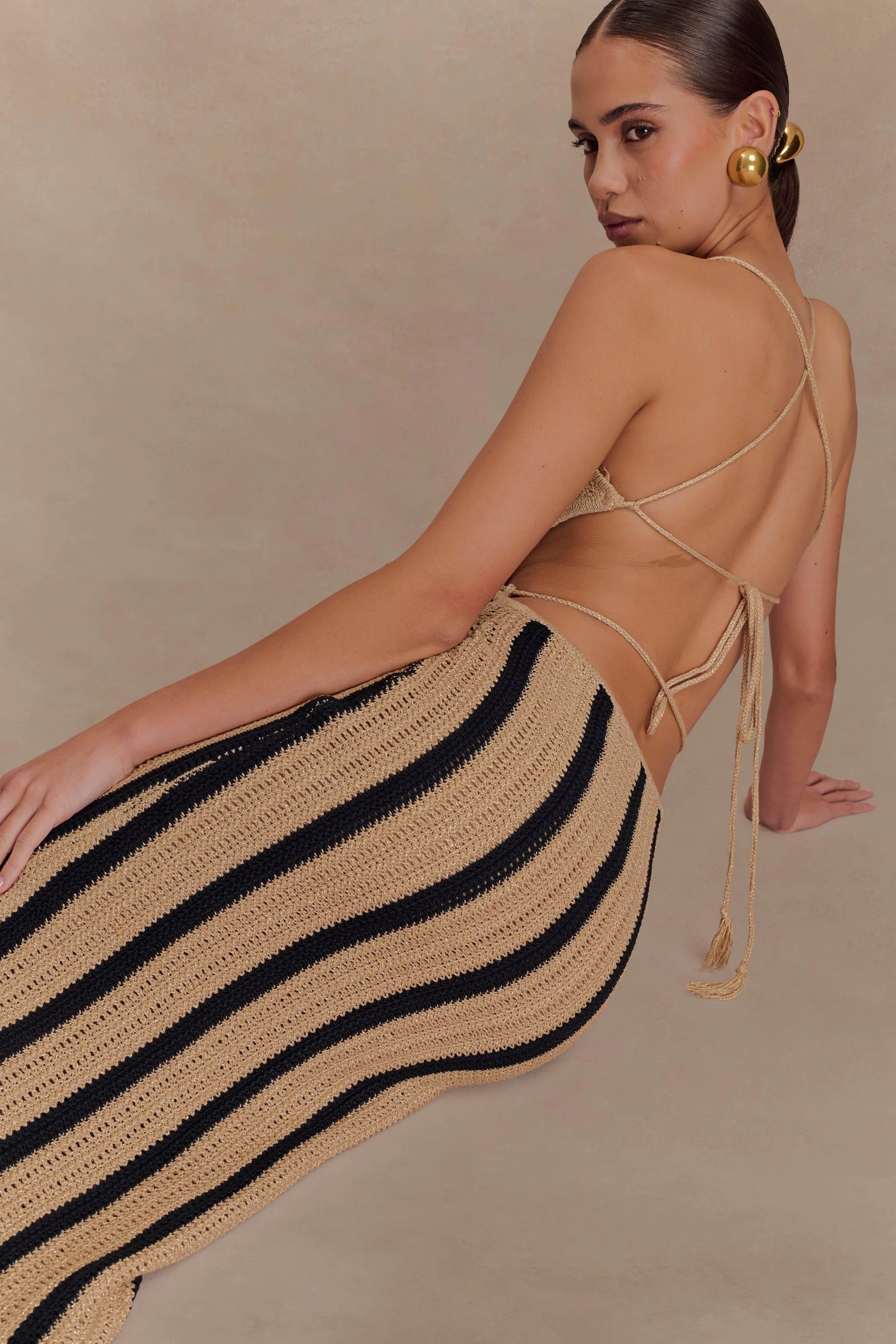 The SHEPHERD Crochet Halter Maxi Dress is your ultimate statement for sun-soaked destinations. Featuring a straight neckline and open back with adjustable lace-up detail, this unlined striped crochet dress is designed to contour and reveal in all the right places. Side waist cutouts and a fishtail hem add dimension and movement, making it perfect for beachside brunches, resort evenings, or pool-to-party transitions. Lightweight, textured, and effortlessly bold—this is crochet made to stand out.