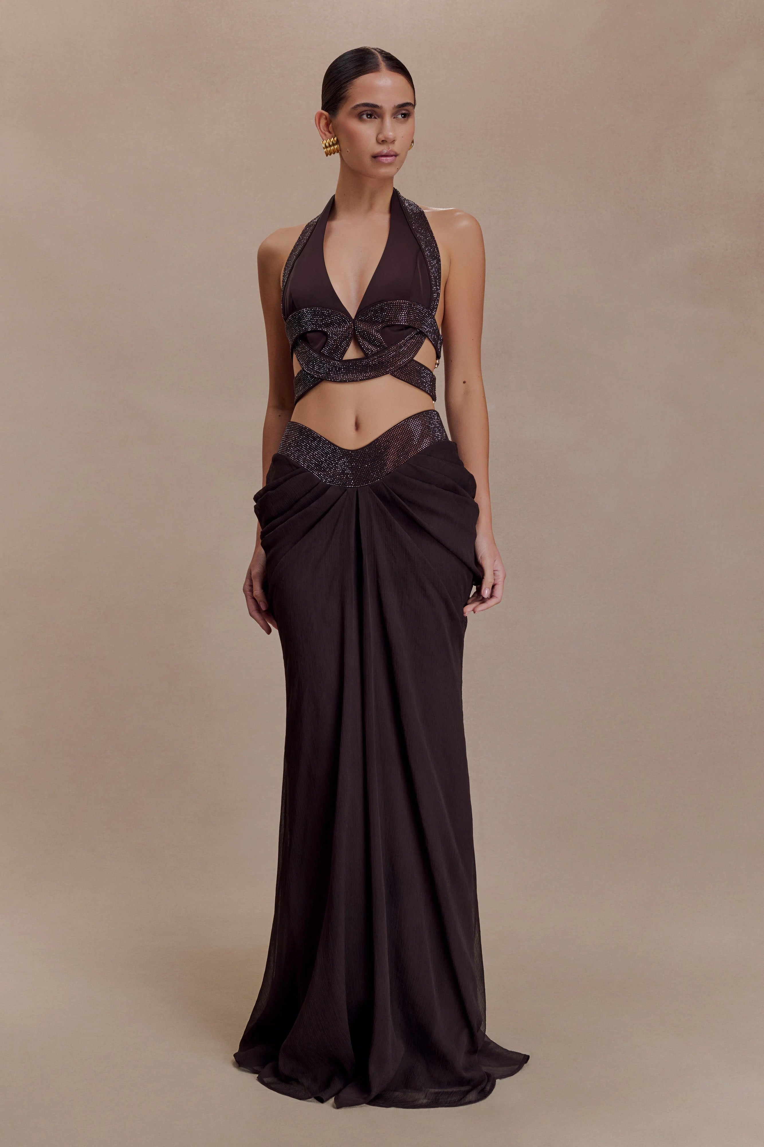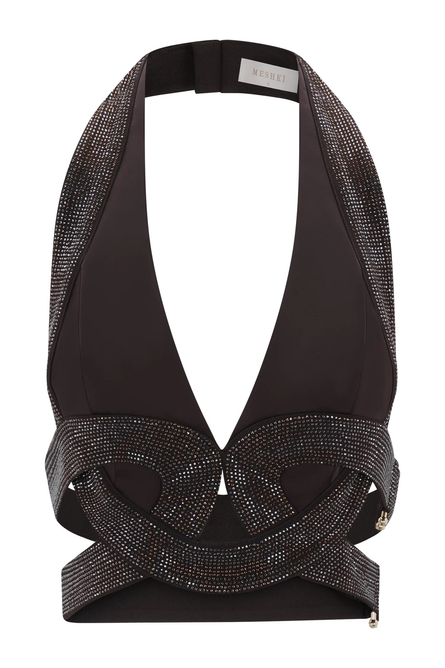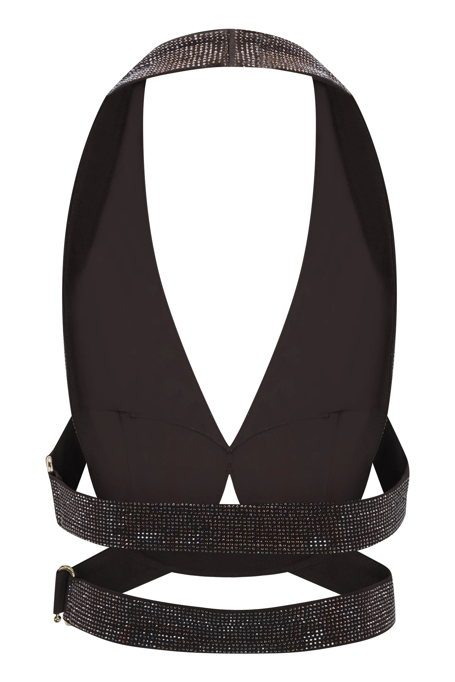 The SIREN Satin And Diamante Halter Top delivers high-shine sophistication in a sculpted silhouette. Designed with a sleek halter neckline and open back, it features adjustable back straps secured with a left-bar closure for a polished fit. Crafted from smooth satin and fully lined for comfort, this cropped-length top is finished with subtle diamante detailing that elevates every movement. Pair it with tailored separates or its matching skirt for a coordinated after-dark statement.