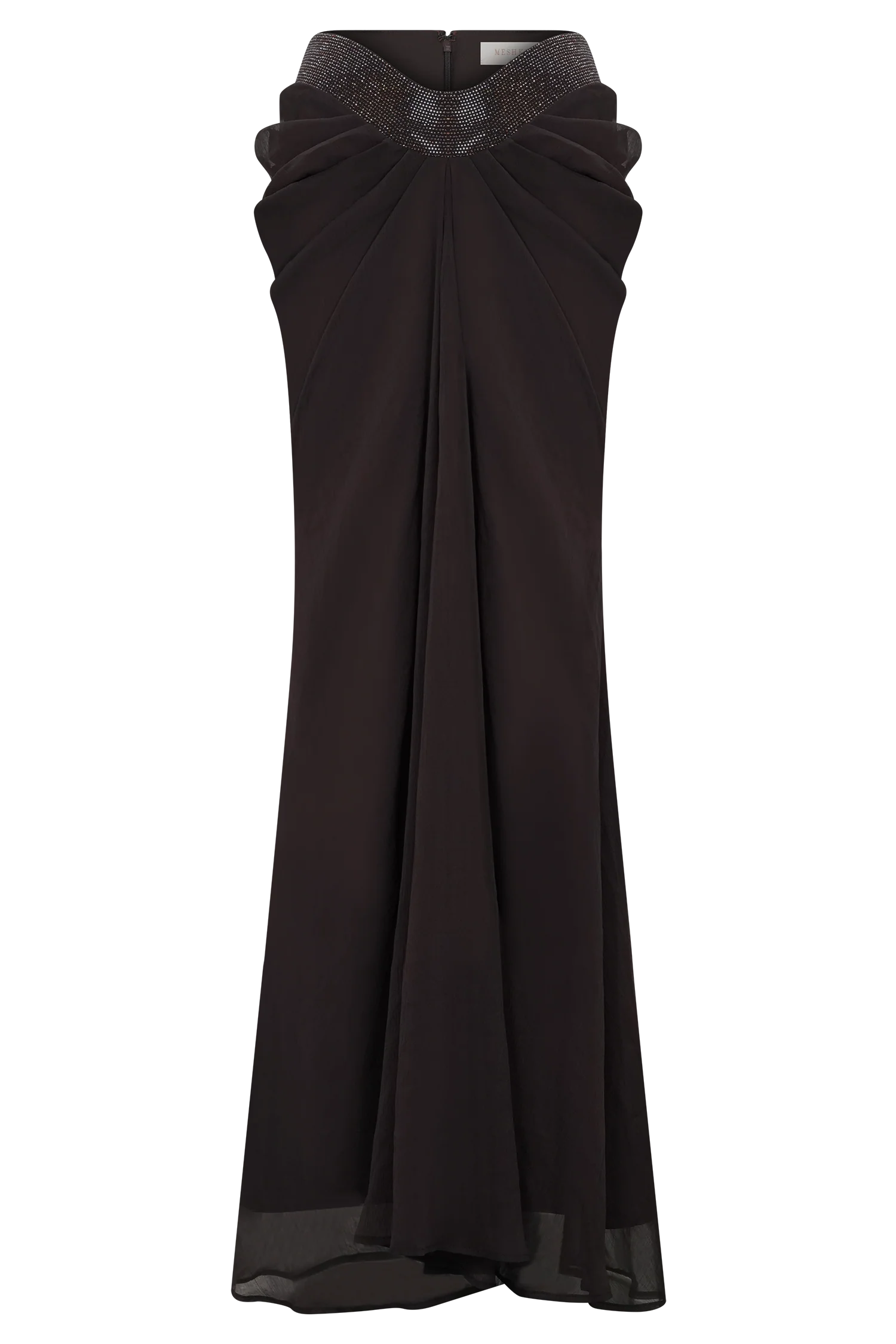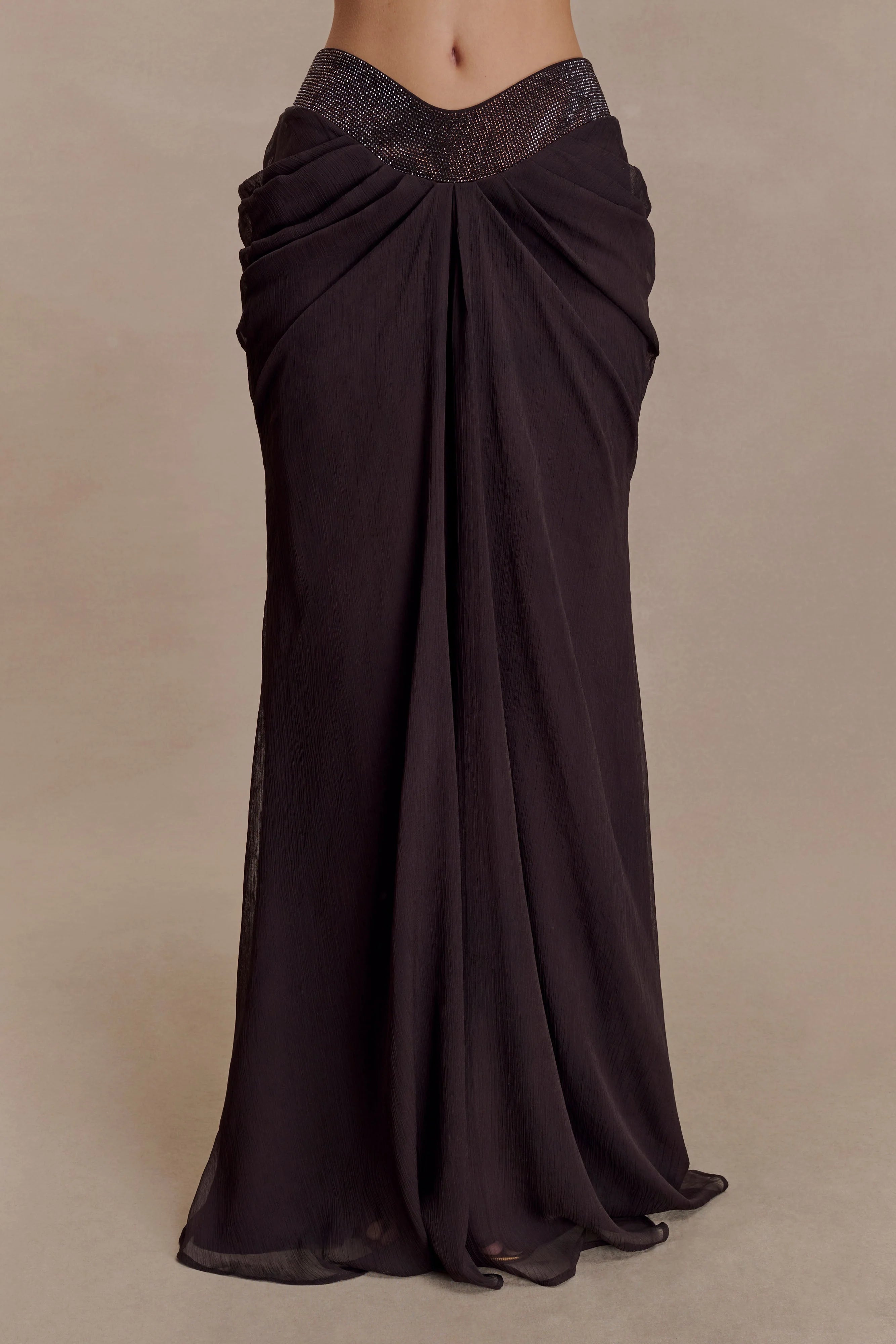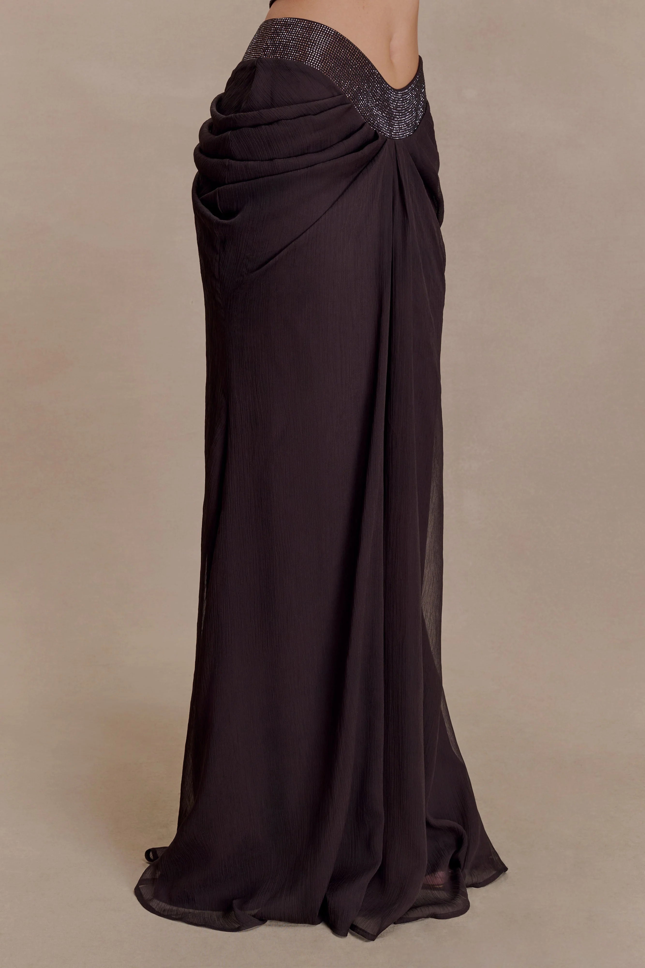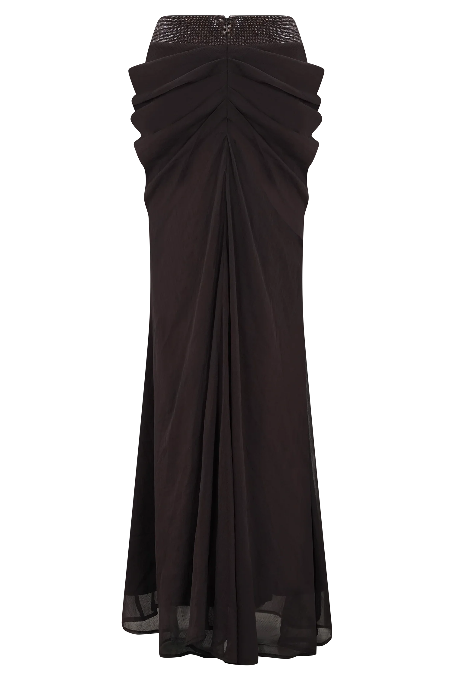 The SIREN Satin And Diamante Maxi Skirt embodies elegance through simplicity and detail. Crafted in lustrous satin, it features a curved waist seam that flatters the figure and a sleek hot fix diamanté belt for a touch of radiance. Fully lined for comfort and movement, this maxi-length skirt is finished with a centre back zip for a smooth closure. Designed to pair perfectly with its matching halter top, this skirt redefines modern evening sophistication.