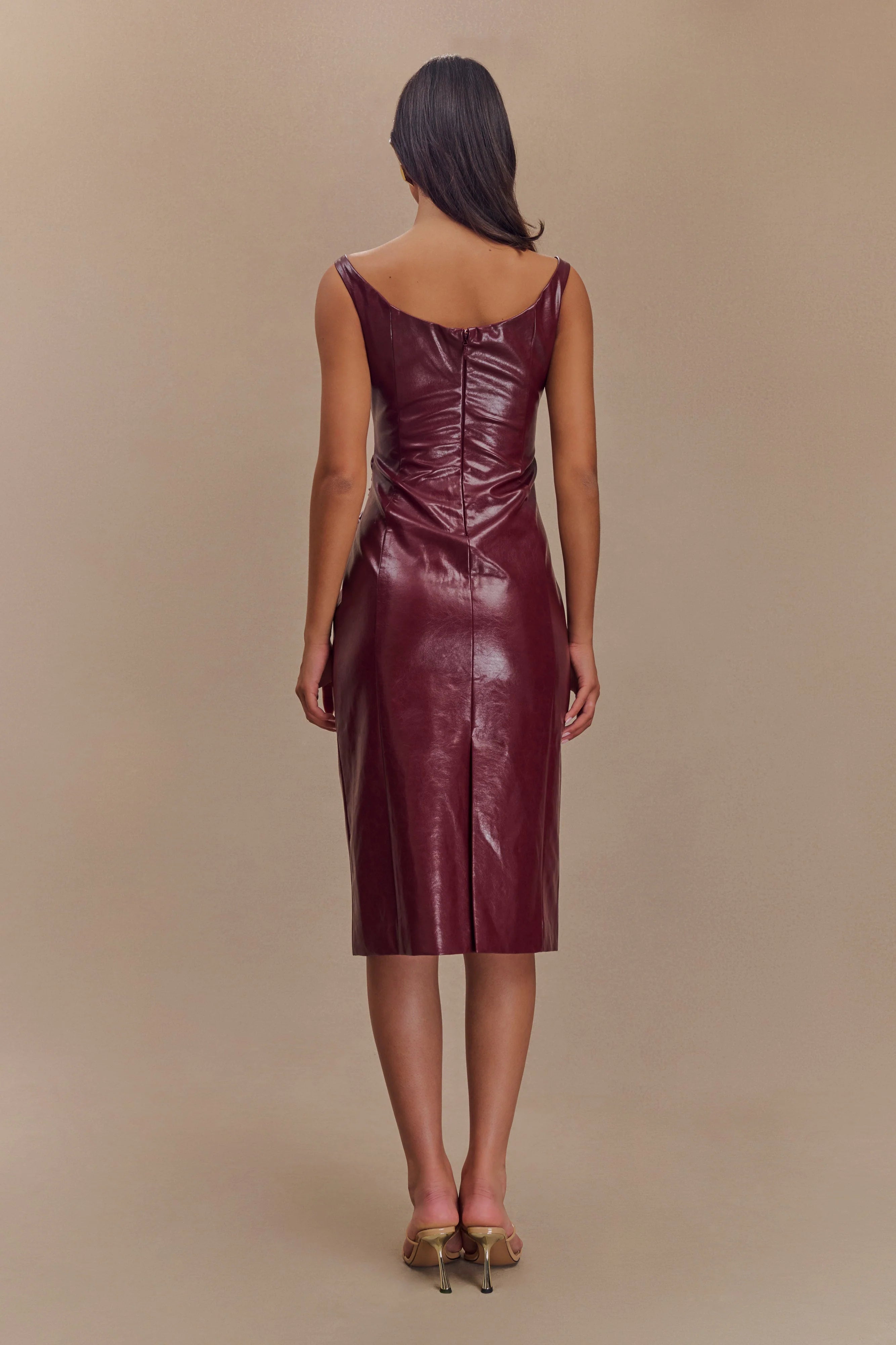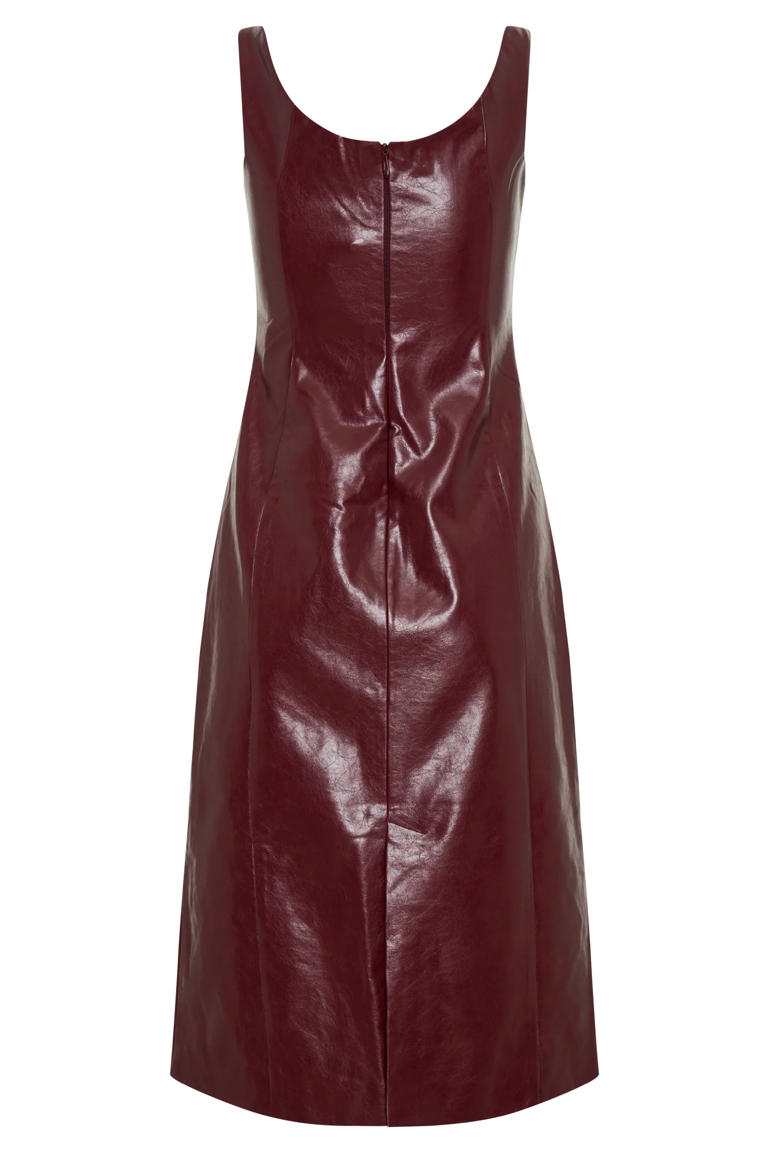 Make a striking impression with the SONIA Faux Leather Midi Dress, a chic blend of sophistication and modern design. Featuring a classic round neckline and elegant midi length, this dress is perfect for any occasion. The gathered detail at the waist flatters your figure, while the centre back vent ensures comfortable movement. Fully lined for a luxurious feel, the dress is equipped with a convenient centre back zip for effortless dressing. Whether you’re attending a dinner party or a night out, the Sonia Faux Leather Midi Dress is your go-to choice for contemporary elegance and undeniable allure.