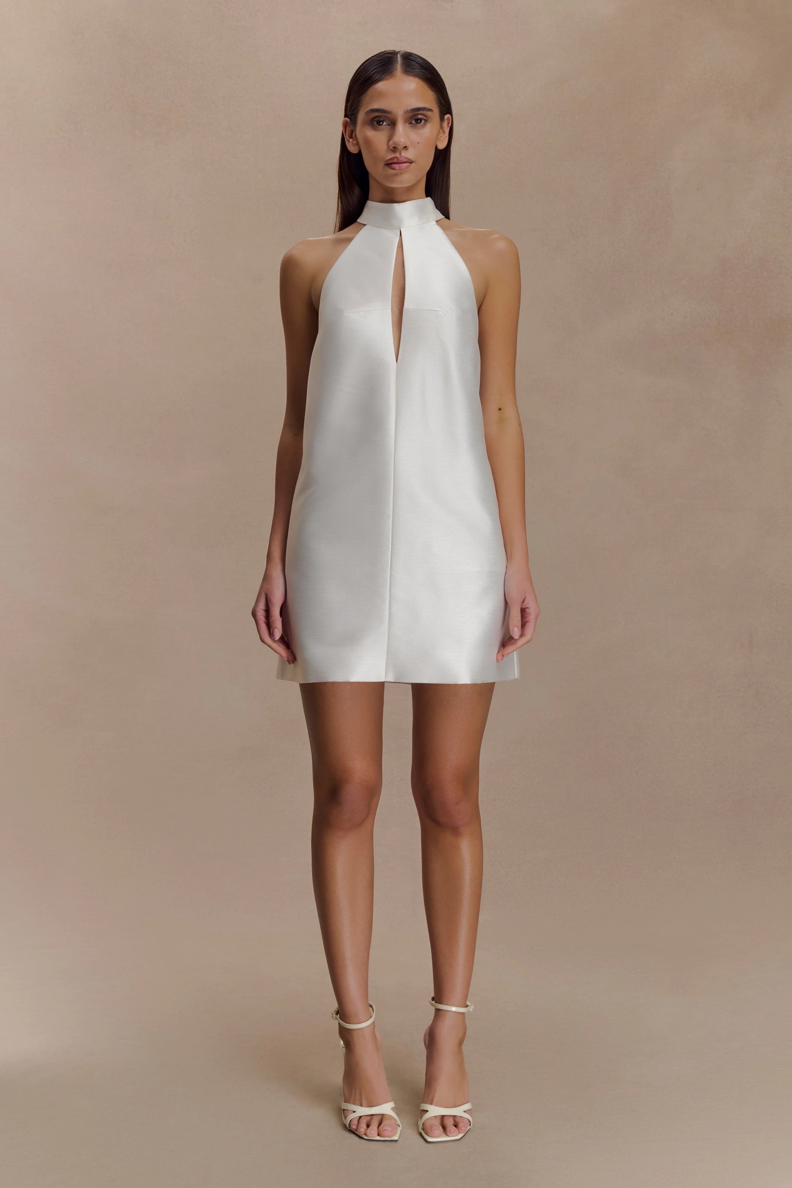 The SOPHIE Mini Dress offers a fresh take on the classic shift silhouette. Designed with a high neckline and a subtle front cut-out, it strikes the perfect balance between modern edge and timeless ease. The relaxed fit drapes effortlessly over the body, while full lining ensures a smooth, comfortable finish. Complete with a back zip closure, this dress is your go-to for understated styling that still turns heads.