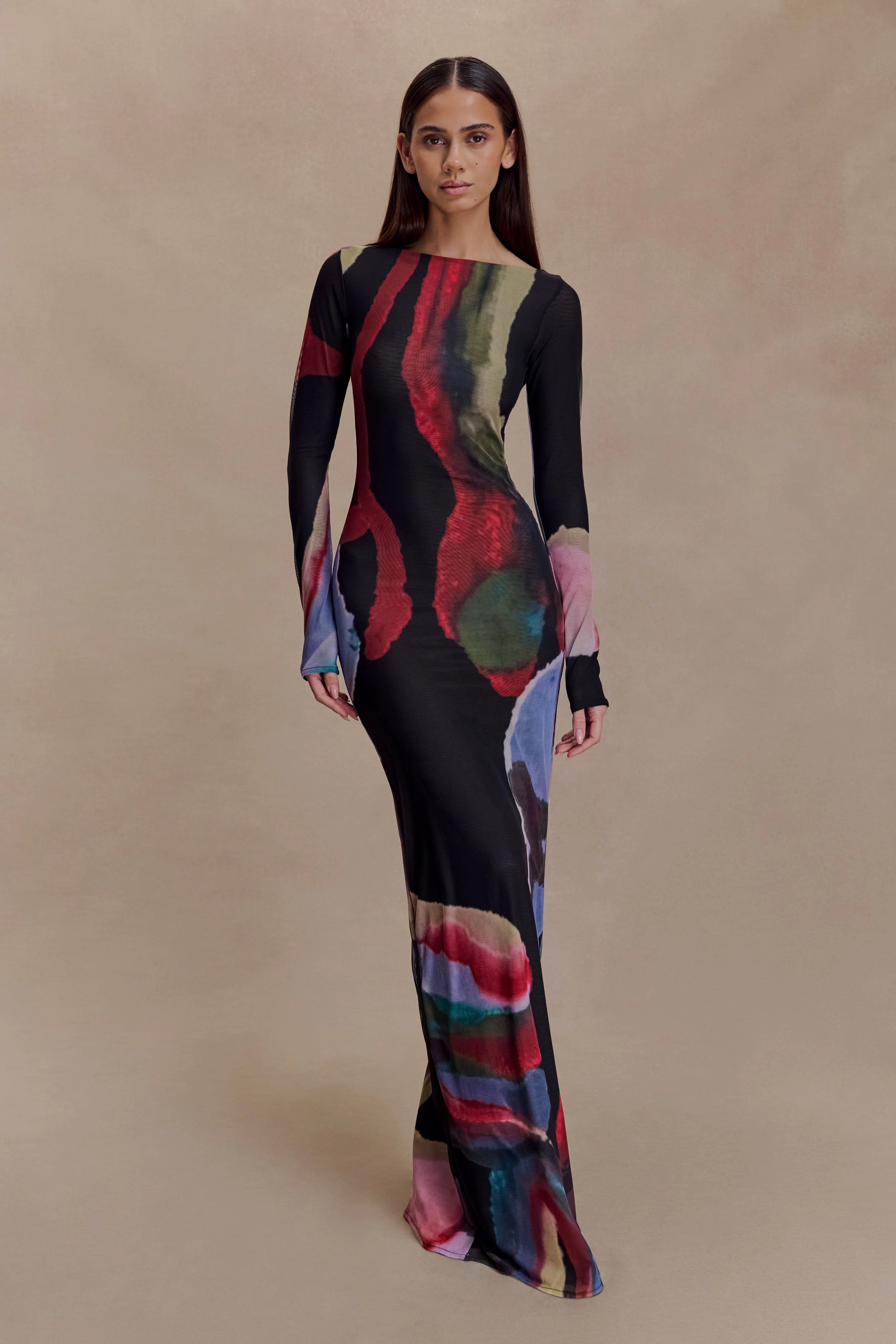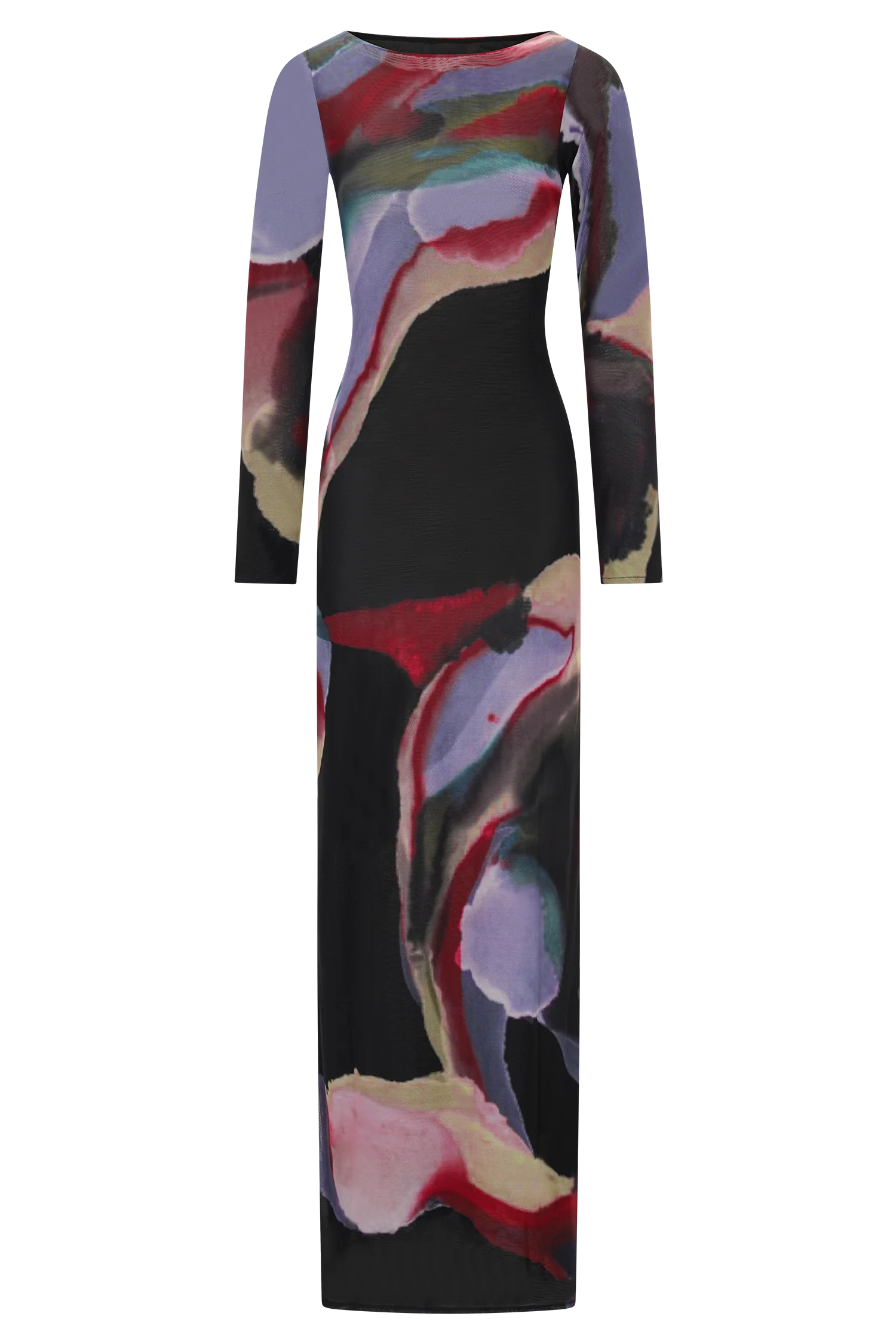 The SORAYA Long Sleeve Mesh Maxi Dress is a refined silhouette crafted in sheer mesh for a modern finish. Featuring a boat neckline and fitted bodice, it’s designed to flatter the frame with clean lines and subtle stretch. Partially lined for coverage while keeping its sheer effect, the long sleeves balance the bodycon fit, and the maxi length elongates the silhouette. This dress brings understated drama to both after-dark and elevated occasion styling.