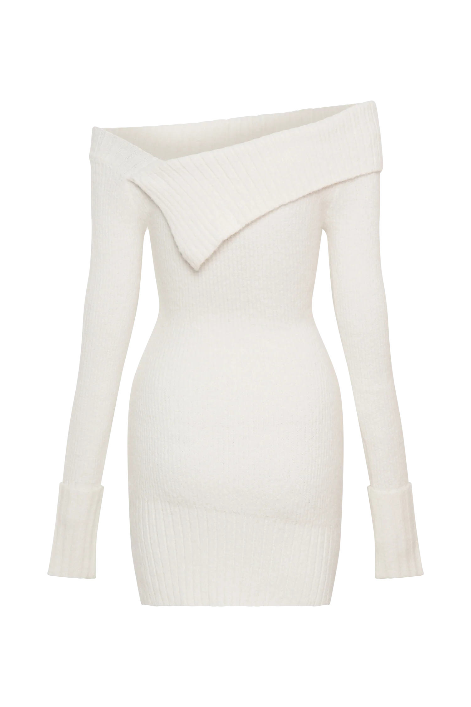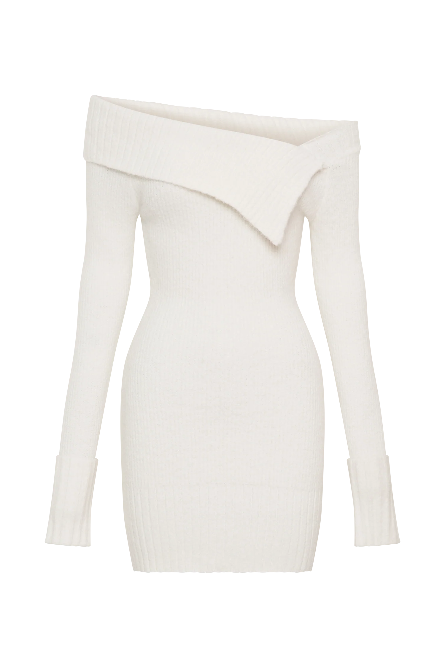 The STEPHANIE Asymmetric Knit Mini Dress offers a contemporary twist on classic design with its striking asymmetrical neckline and ribbed overlay. Featuring long sleeves and ribbed cuffs, this mini dress combines warmth with modern style. The unlined knit construction ensures a lightweight, comfortable fit that drapes beautifully. With its mini length and unique neckline detail, the Stephanie Dress is perfect for making a fashionable statement at any event, seamlessly blending comfort and edgy elegance.