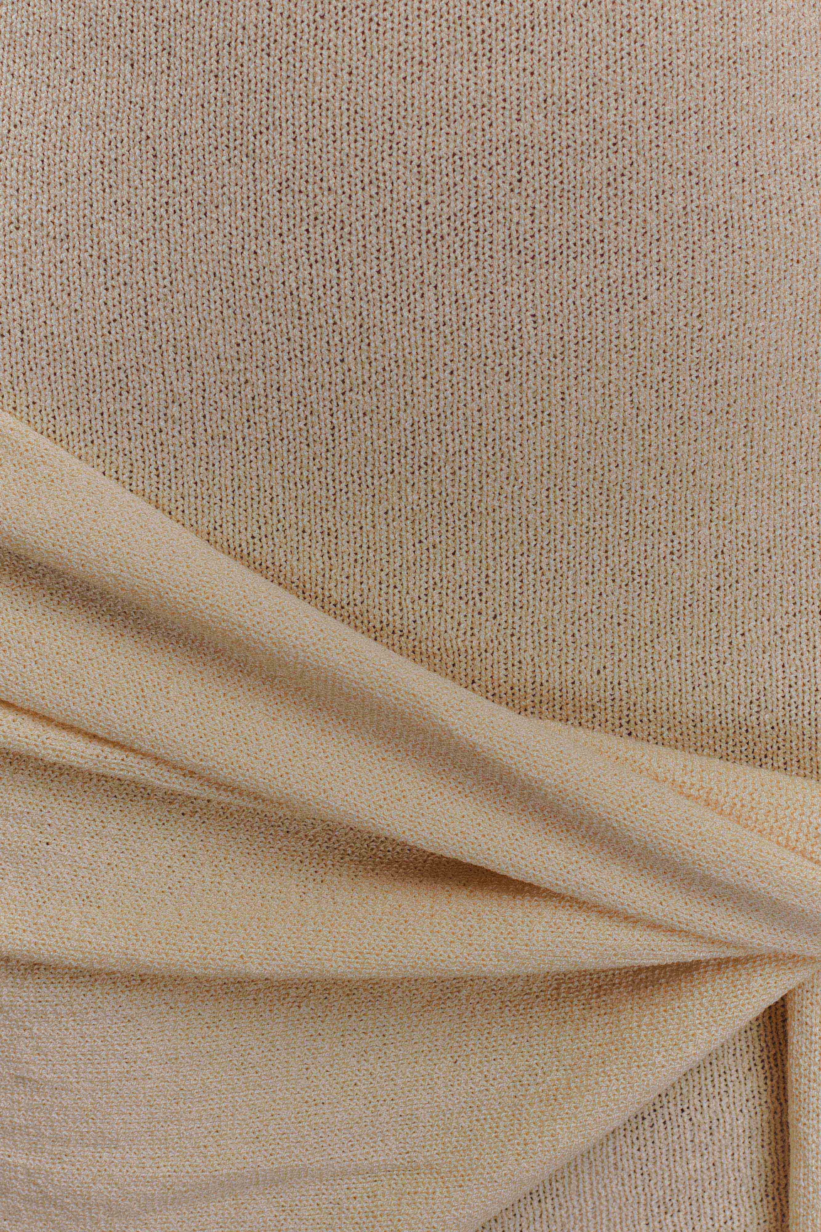 The TARON Knit Mini Dress With Scarf is a bold blend of comfort and edge. Designed with a flattering V neckline and a body-hugging fit, this mini dress features long sleeves and a hip sash overlay that adds dimension and movement. A detachable neck scarf offers styling versatility, meaning it can be tied, draped, or removed for a cleaner look. Unlined for a lightweight feel, this dress is your go-to for effortless cool with a fashion-forward twist.