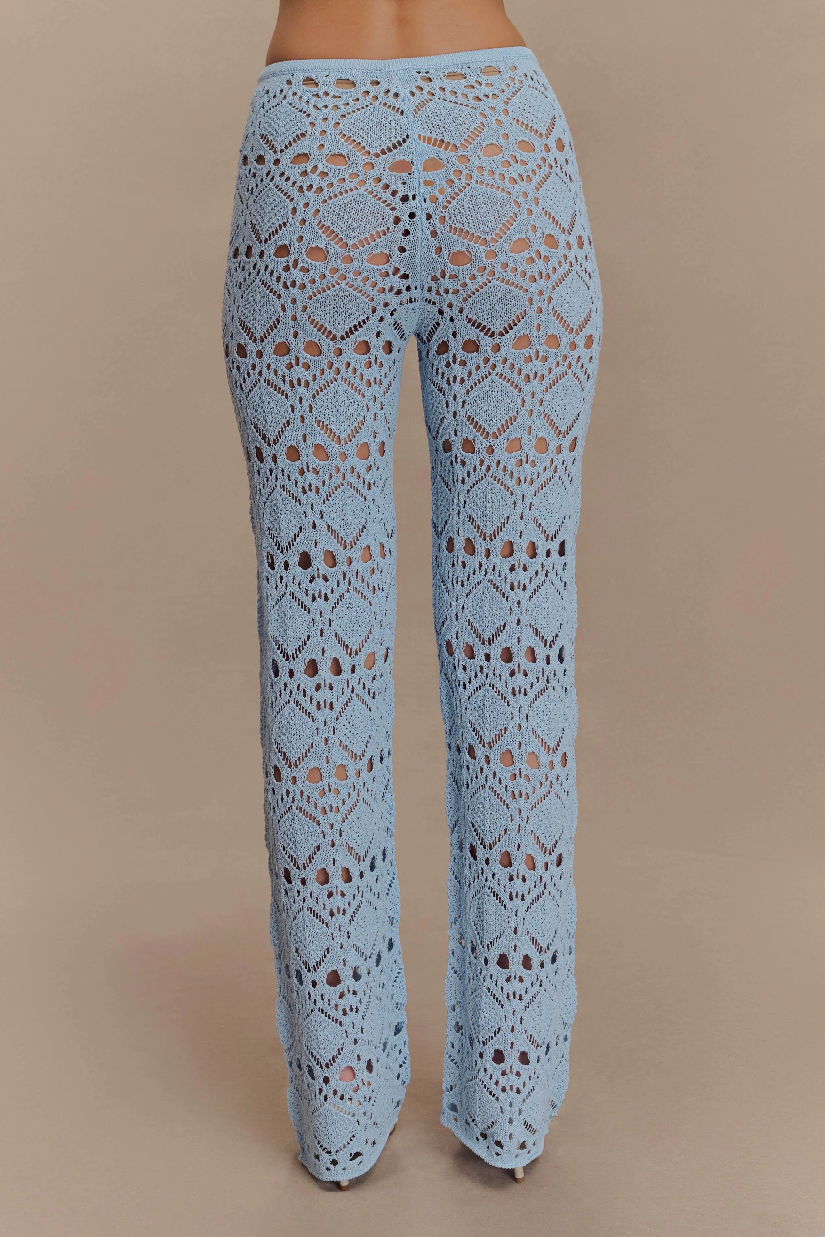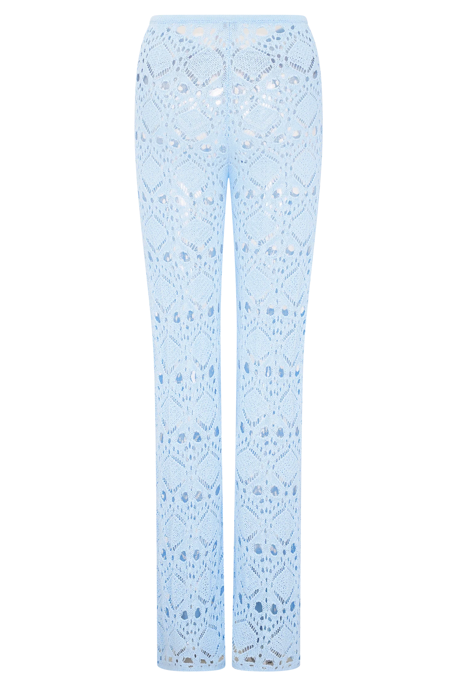 The TRENA Crochet Knit Pants blend laid-back charm with elevated texture. Crafted in a soft crochet knit, this straight-leg silhouette sits mid-rise with an elastic waistband for all-day comfort. Unlined for a breezy, lightweight feel, these pants are perfect for layering over swim or pairing with matching crochet pieces for a sun-kissed resort look.