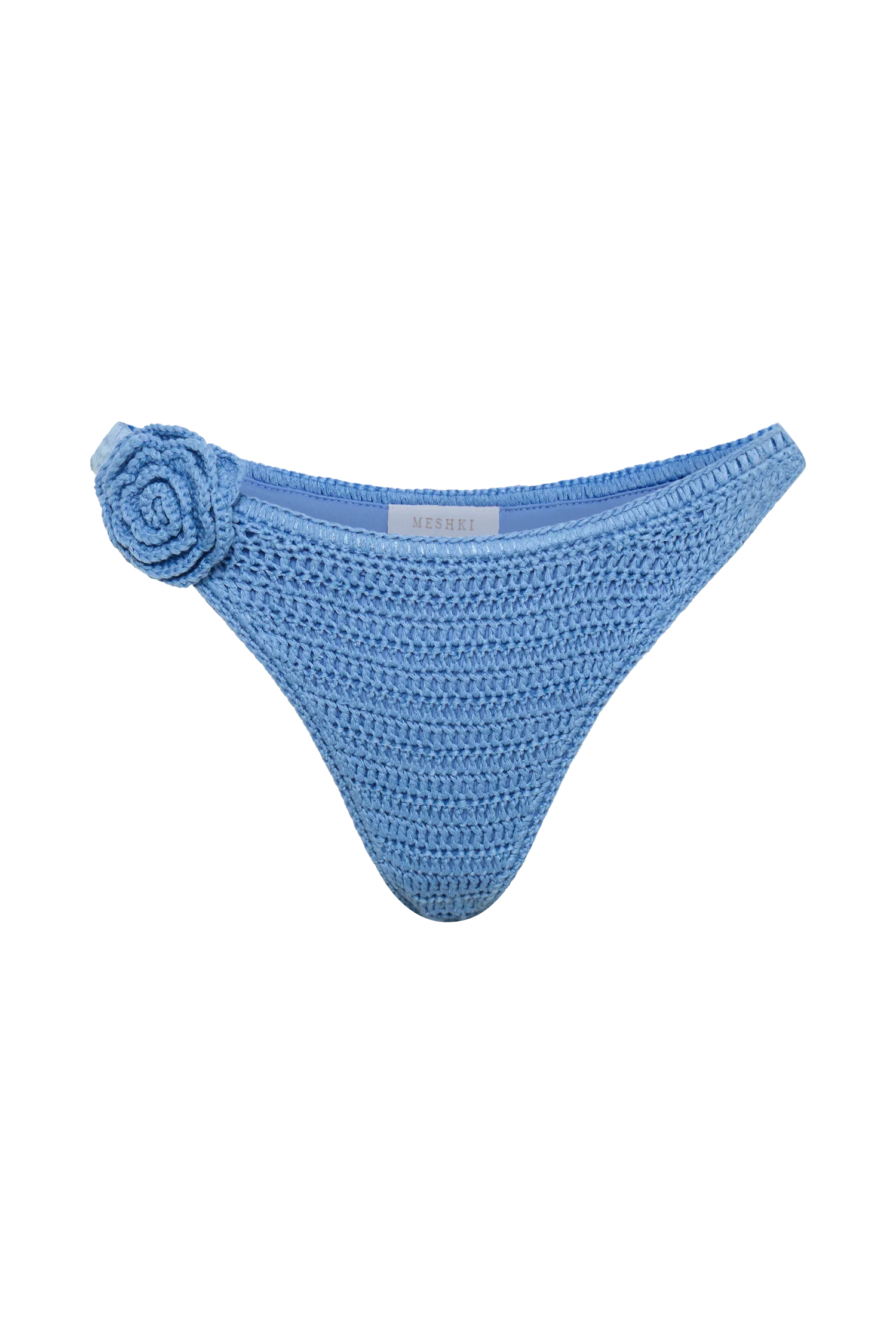 The VALENCIA is a low-rise bikini bottom with a rose flower applique and high-leg cut. Its custom crochet fabrication is stretchy and lined for comfortable all-day wear. It offers modest coverage while hugging curves to further flatter your silhouette. The rose flower applique at the right-hand side adds a fresh twist on the classic bikini bottom cut. Pair with the for a complete look.