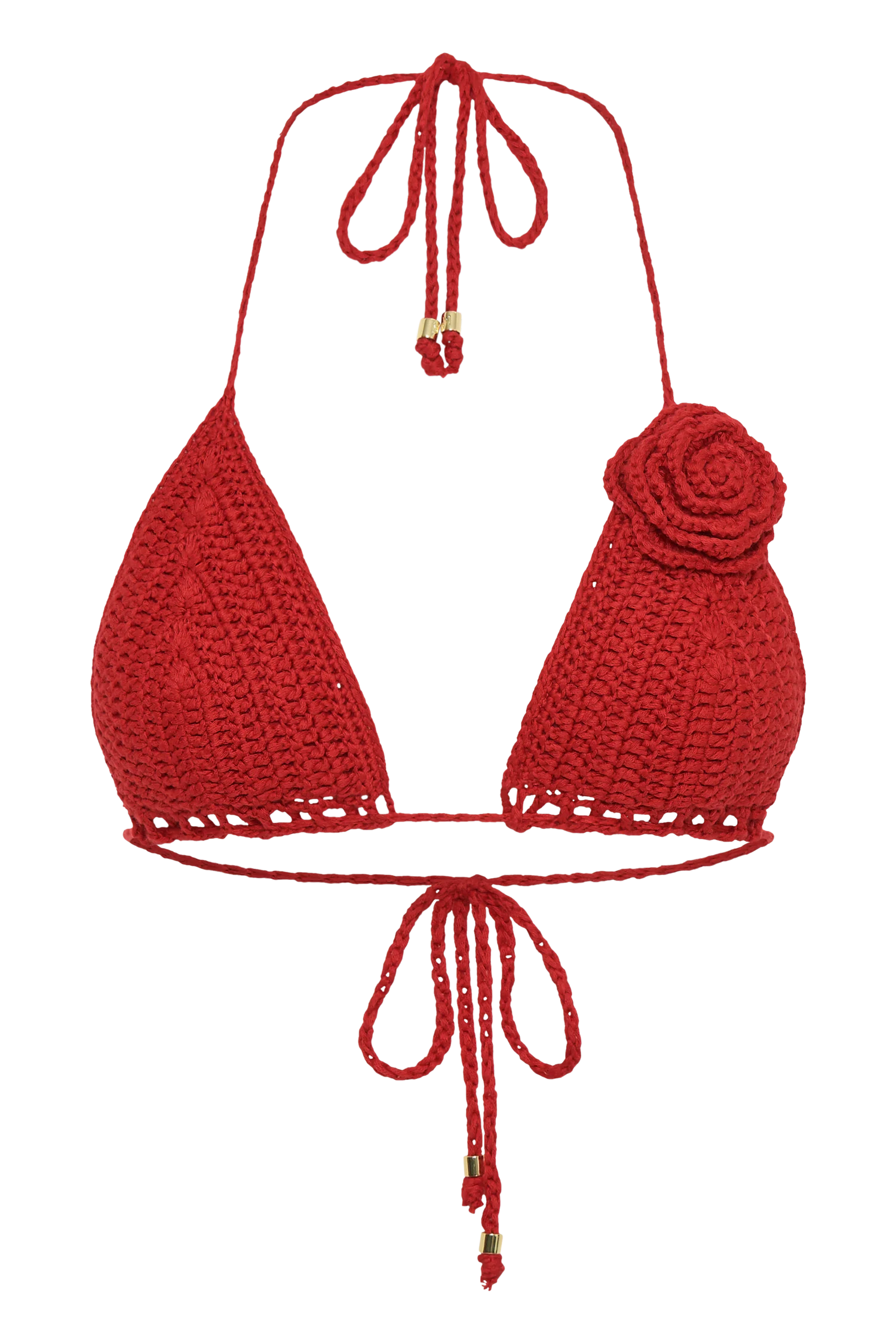 The VERALI is a classic bikini top with spaghetti straps and a delicate rose detail at the top left bust. Its custom crochet fabric is lined for maximum comfort while the functional, self-tie fabric straps at the neck and back allow for a custom, supportive fit. We’ve designed this with a clean and contemporary feel with a halter neckline and solid colour story. Match with the to complete the set.