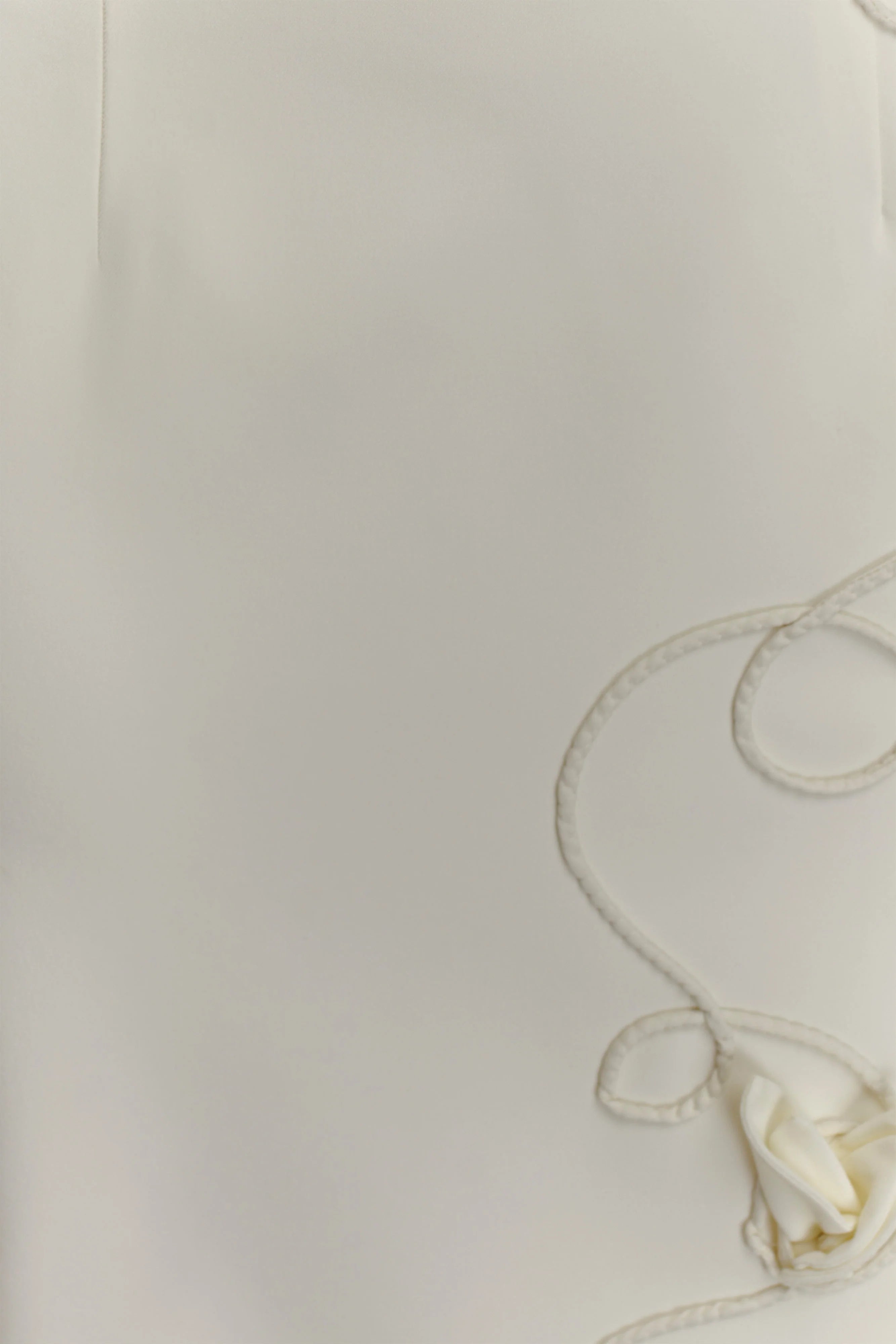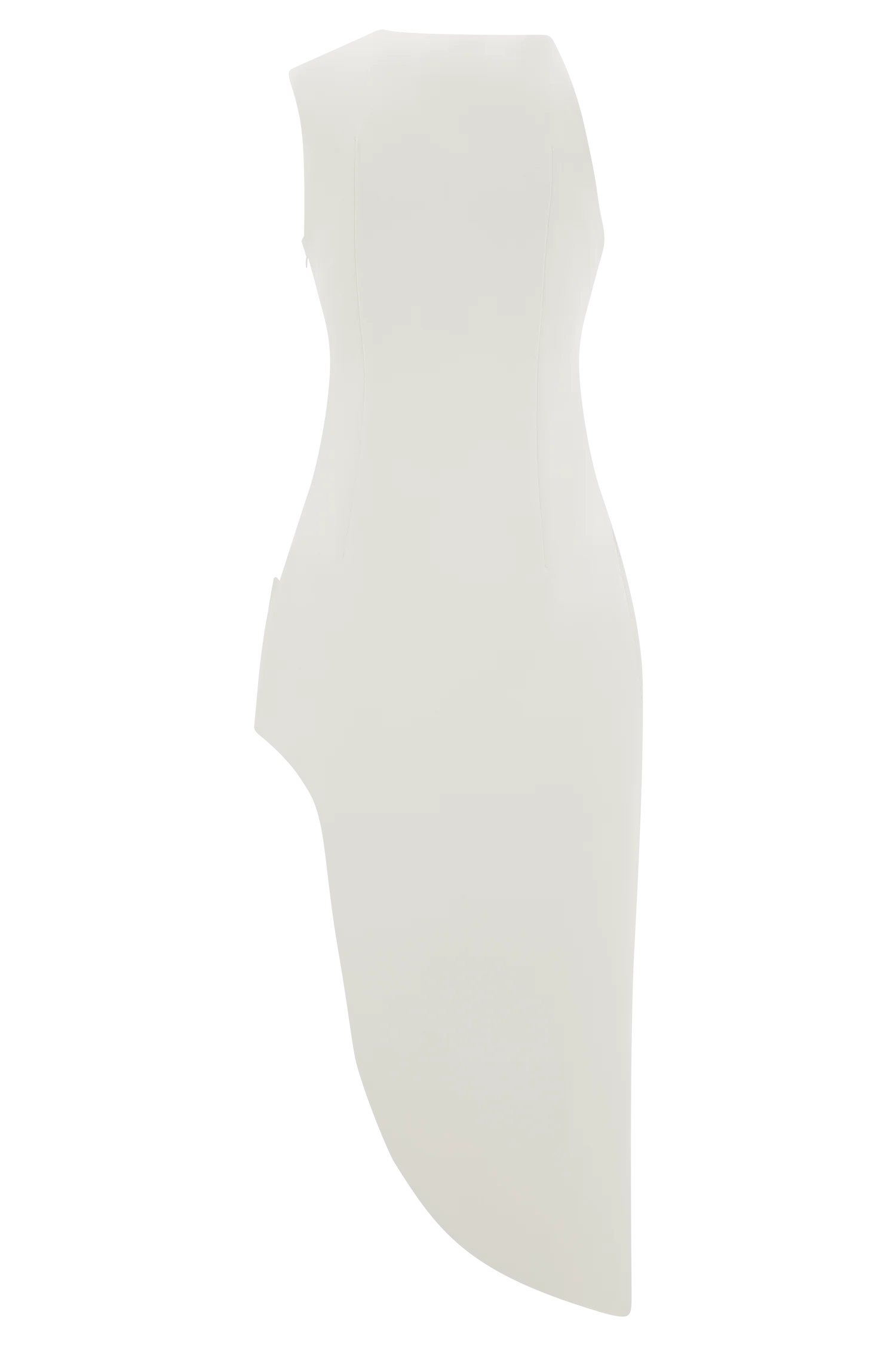 The VIRGINIA Suiting Embroidered Midi Dress blends strong structure with soft detailing for an effortlessly refined statement. Designed with an asymmetric neckline and hemline, this tailored silhouette features an intricate corded floral design that adds dimension and elegance. The midi length offers timeless appeal, while the invisible zip ensures a sleek finish. Fully lined for comfort, this dress is ideal for moments that call for modern sophistication with a romantic edge.