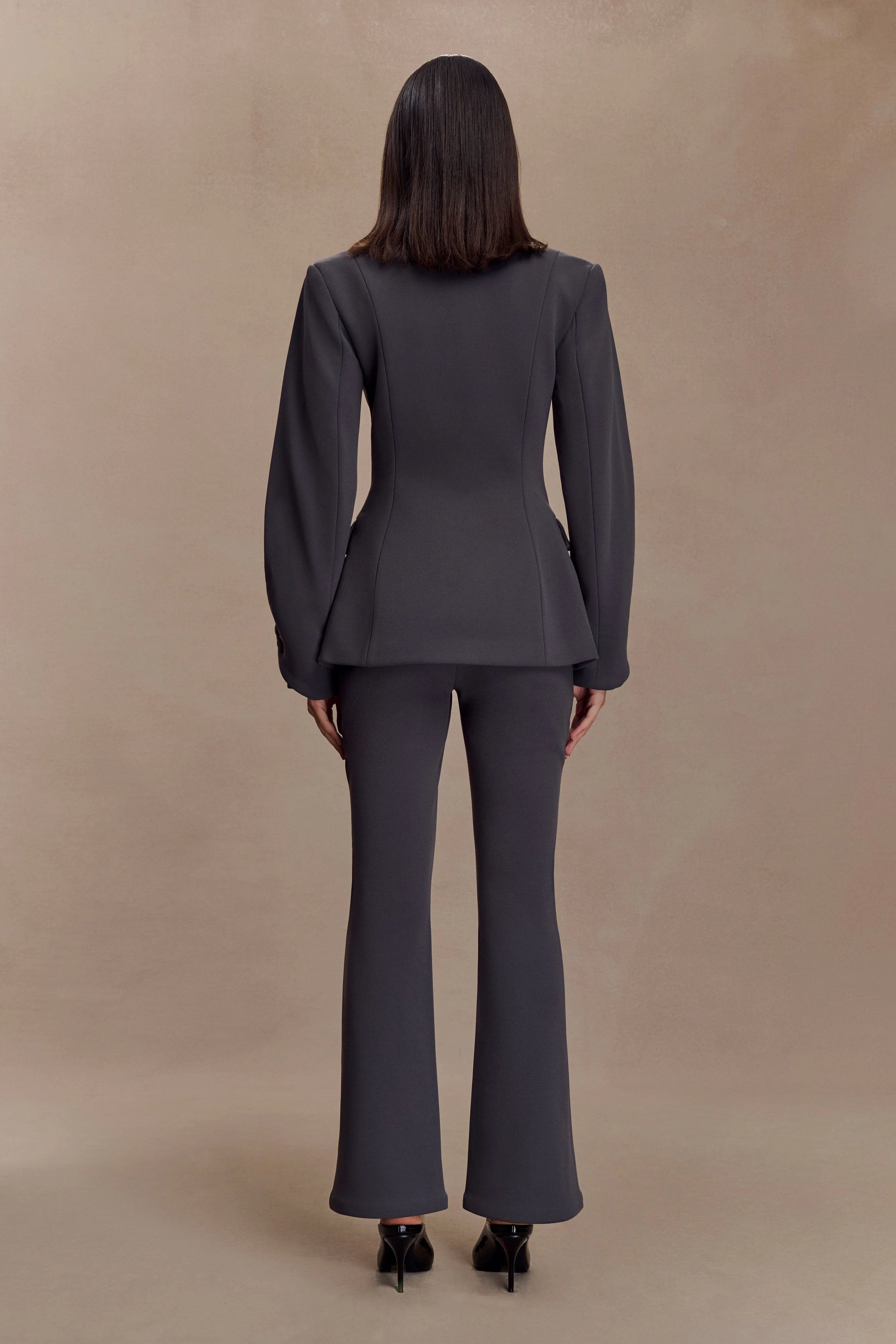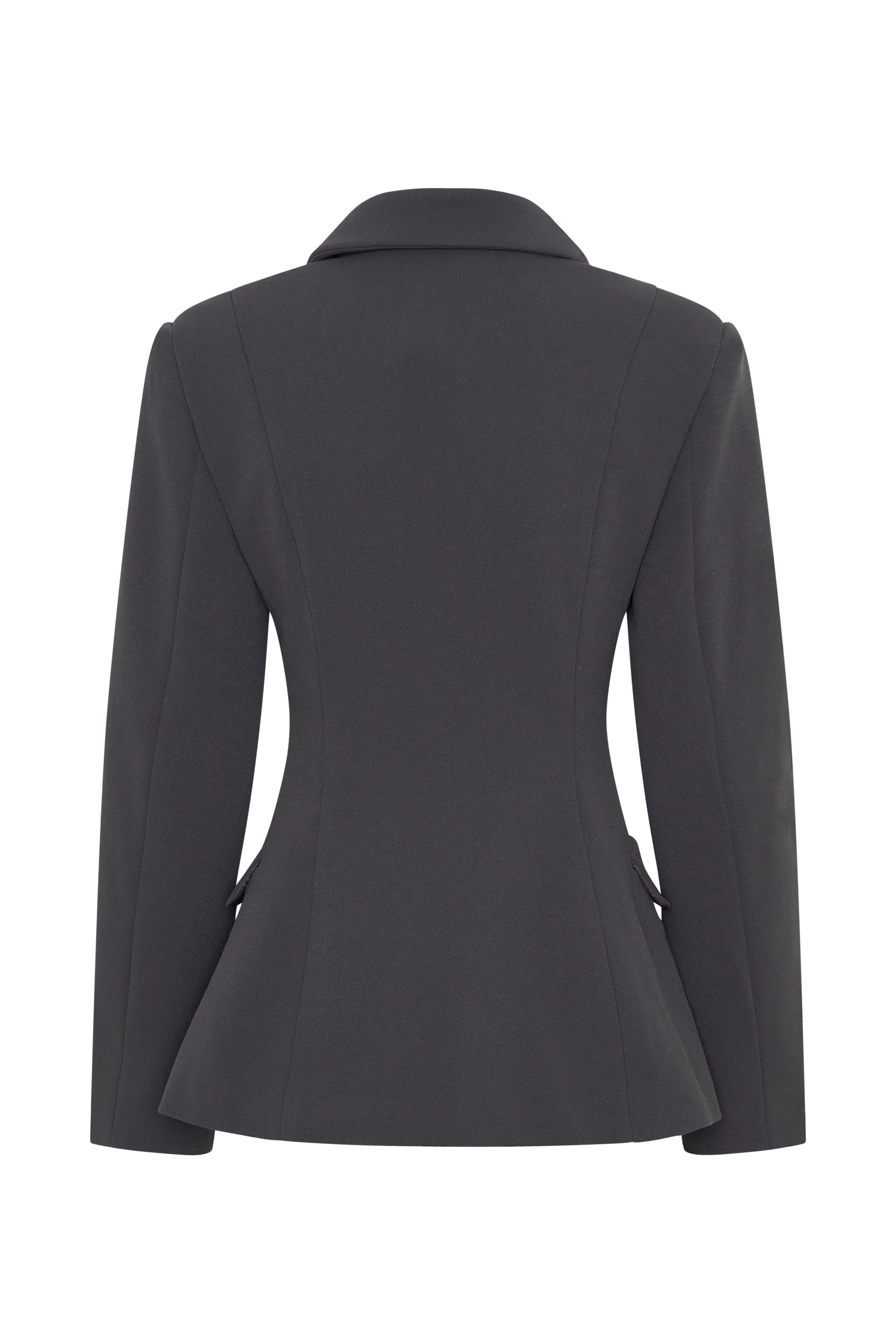 The WESLEY Structured Blazer is a sharp, longline silhouette designed to command attention. Featuring a double-peaked wide collar and a double-breasted button opening, it’s framed with structured shoulder pads and a fitted waist for a defined shape. Functional flap pockets bring utility, while the drop shoulder and pleated crossover cuffs add a contemporary twist—wear them buttoned for polish or unbuttoned for a wider sleeve effect. Fully lined and cut to a longline length, this blazer balances classic tailoring with directional detail.
