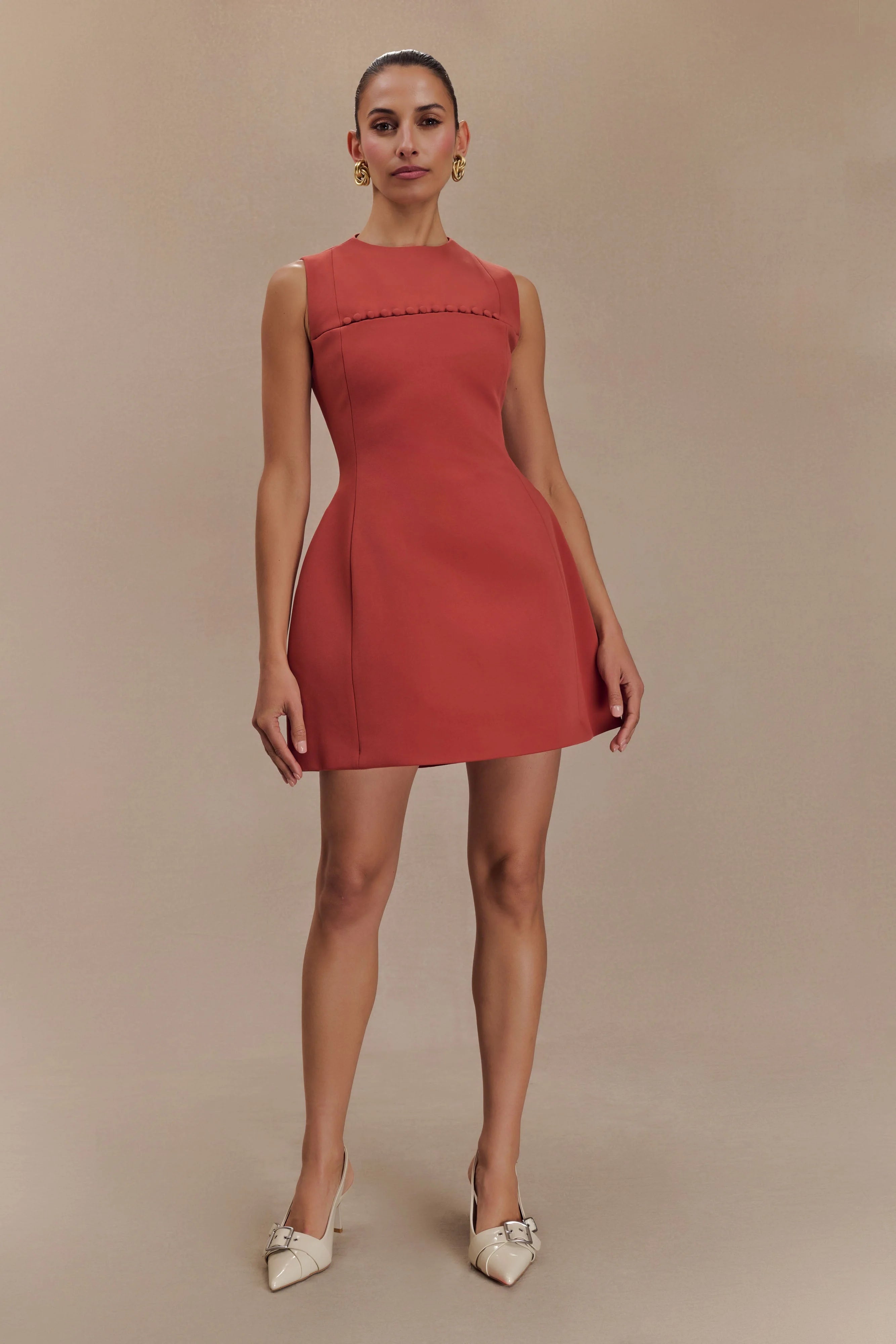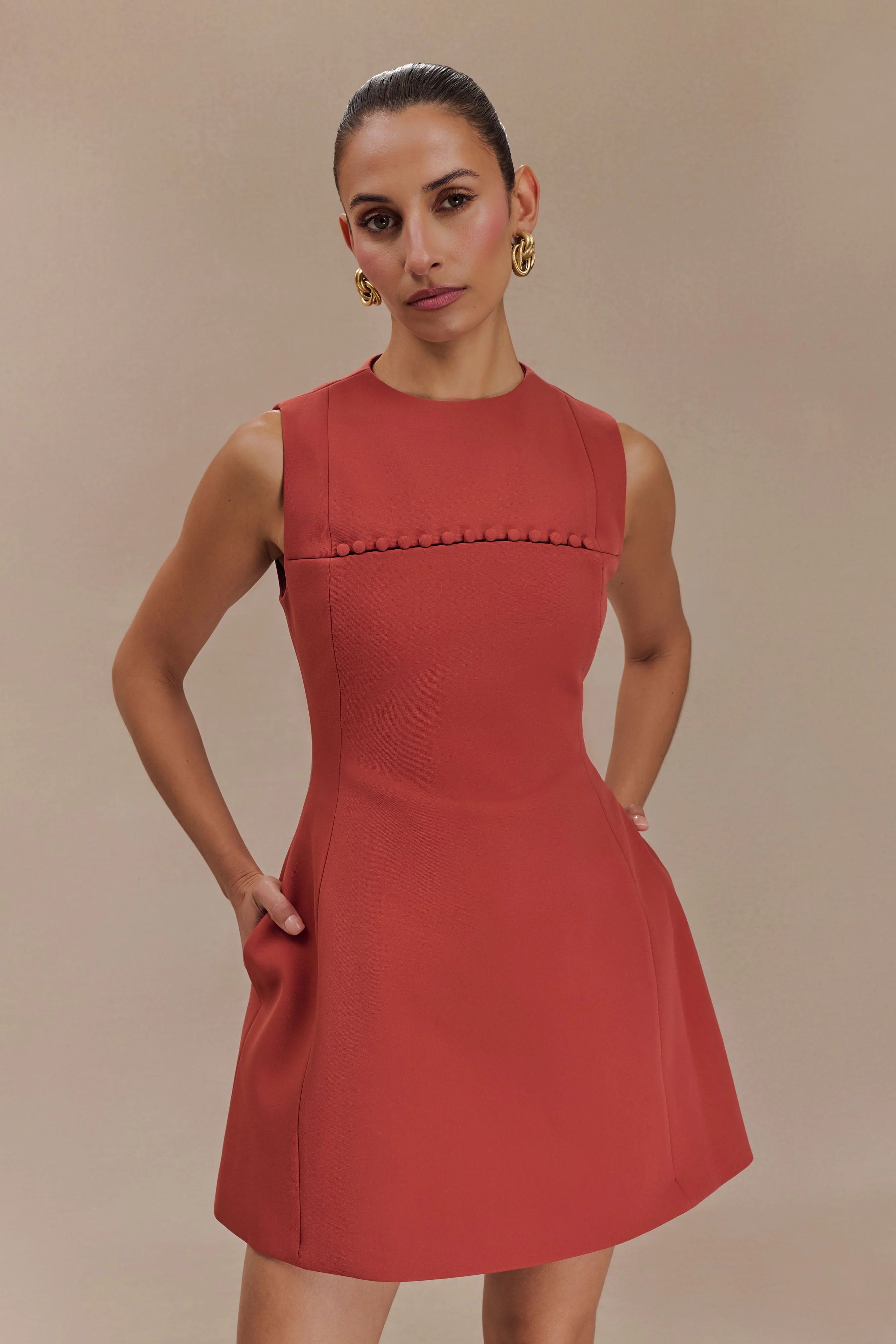 The WINONA Suiting Mini Dress with Cut Out is a chic and playful addition to your wardrobe, designed for those who appreciate modern elegance. Featuring a sophisticated high neck and sleeveless silhouette, this dress exudes confidence and style. The unique button opening detail at the bust adds a touch of intrigue, while the structured shape flatters your figure and creates a polished look. The bubble skirt shape introduces a fun and flirty element, making it perfect for any occasion. With its mini length, this dress is ideal for showcasing your favourite heels.